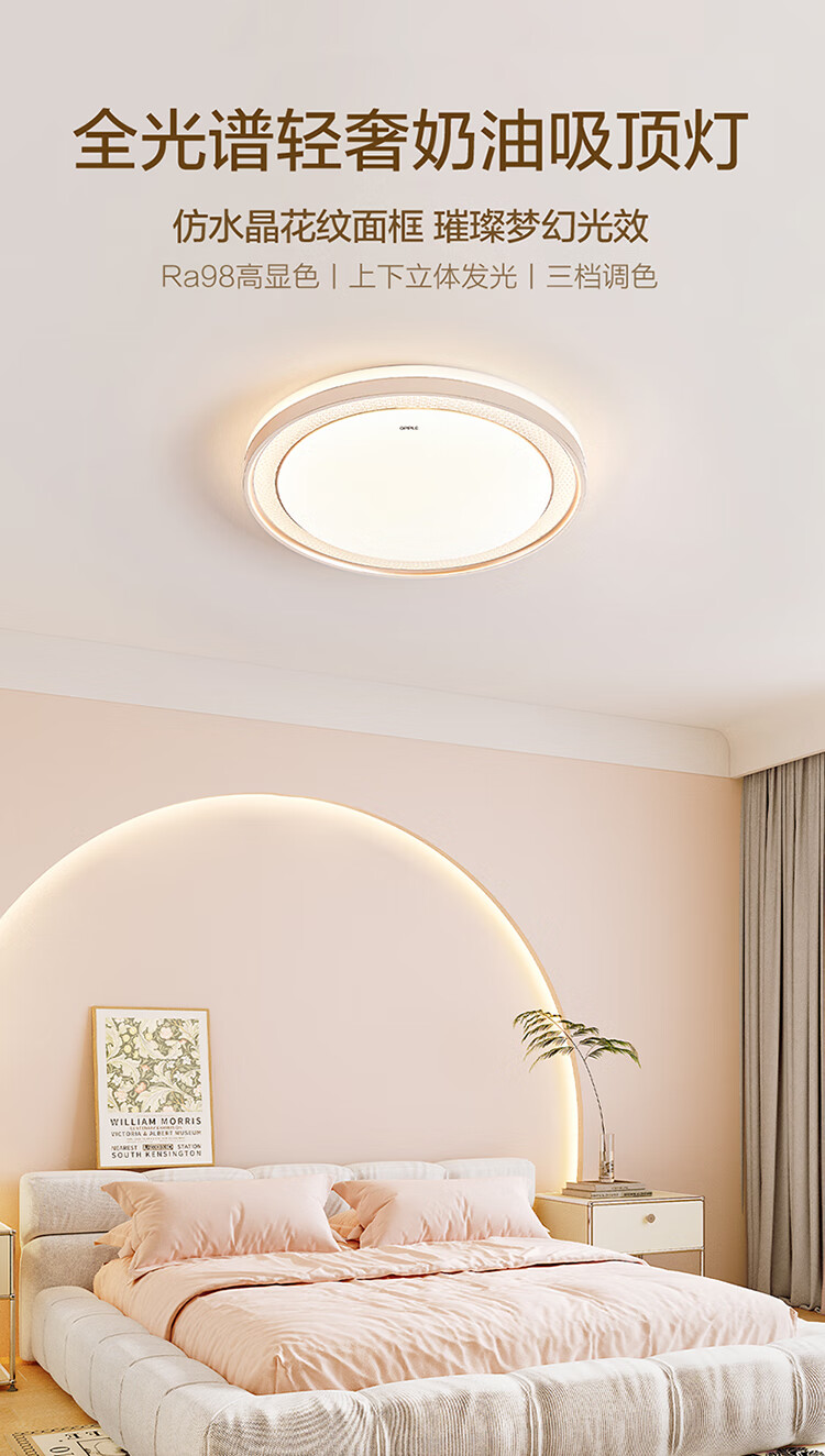 欧普照明(OPPLE)全光谱护眼吸顶灯卧室灯调光LED照明灯具轻奢现代大气晶灿 包安装