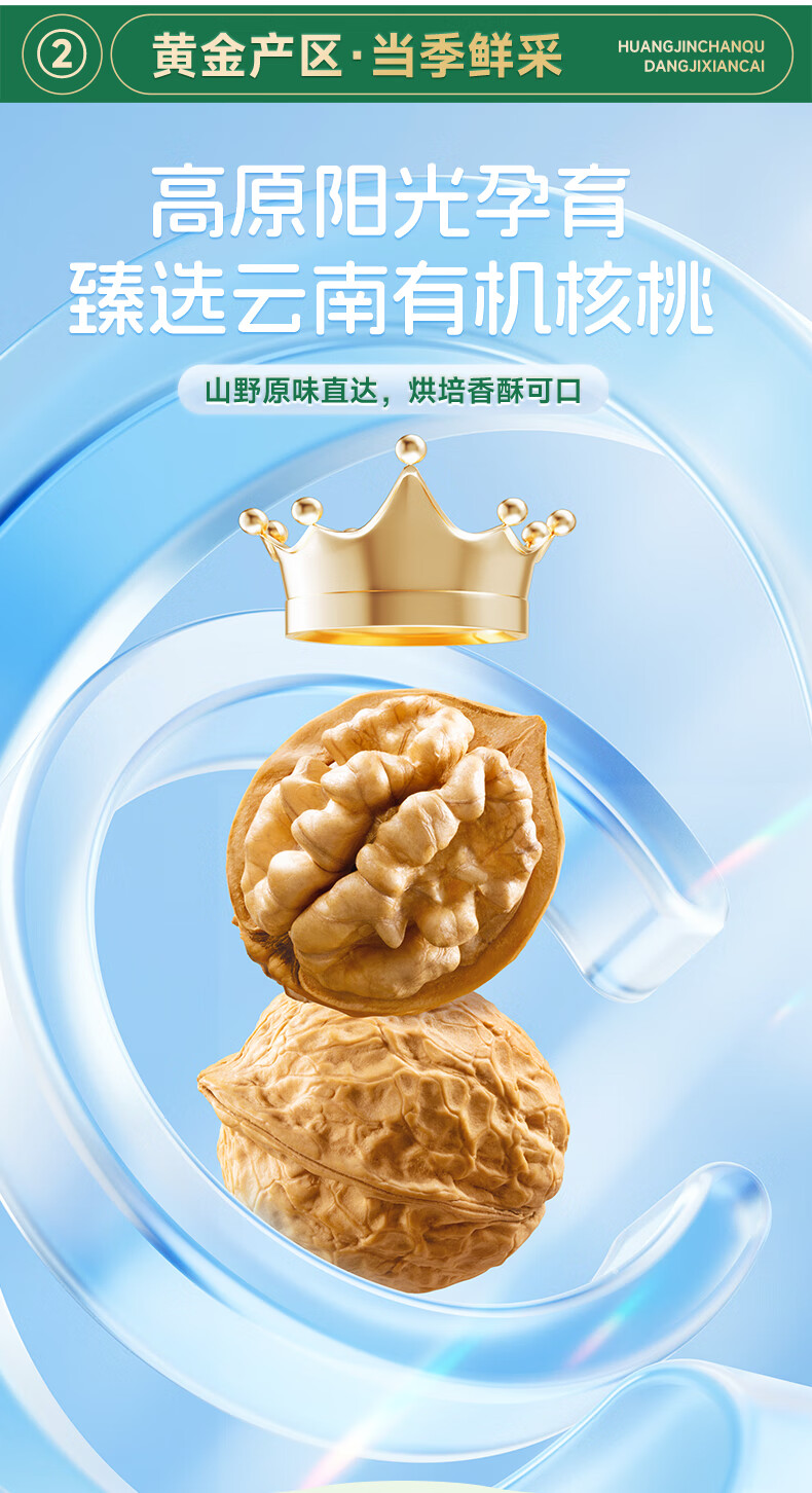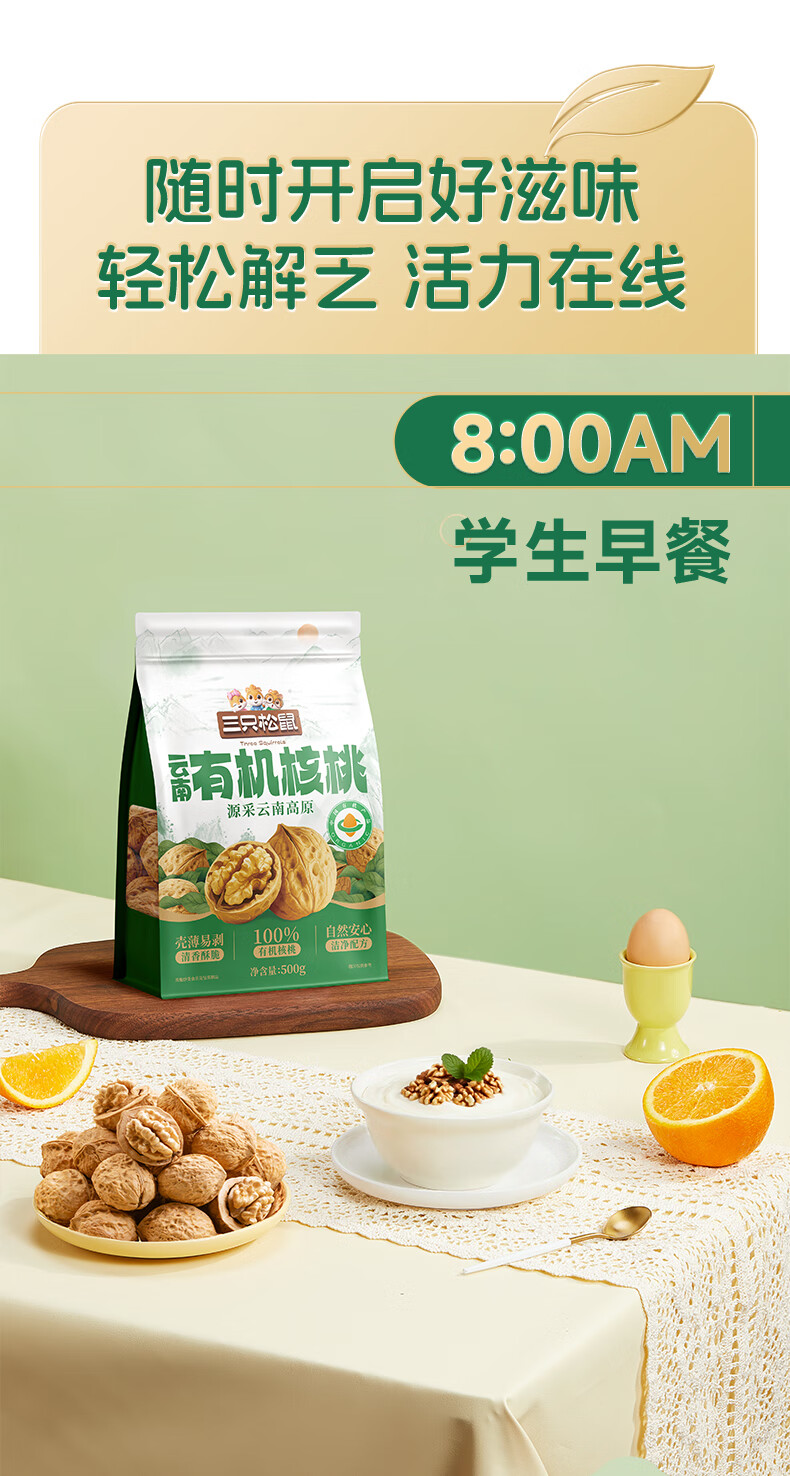 三只松鼠云南有机核桃500g/袋 坚果炒货干果仁特产休闲零食送礼