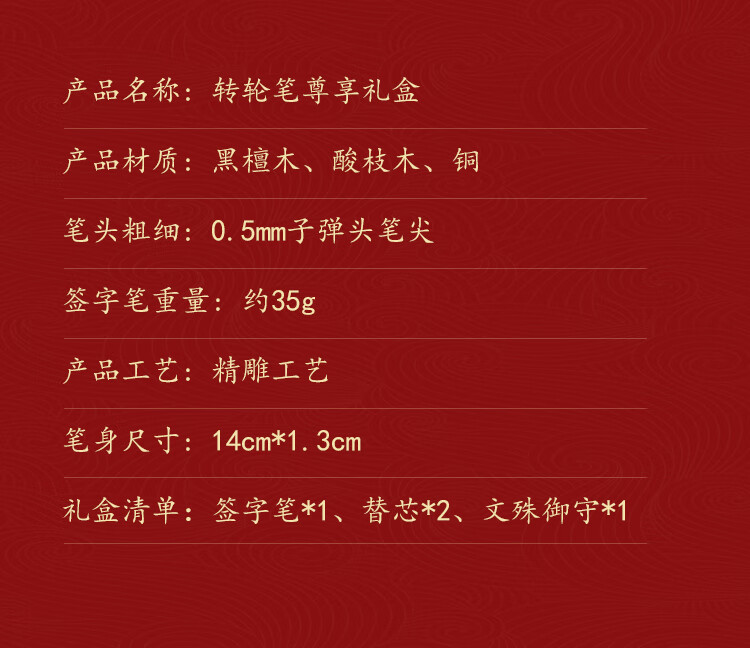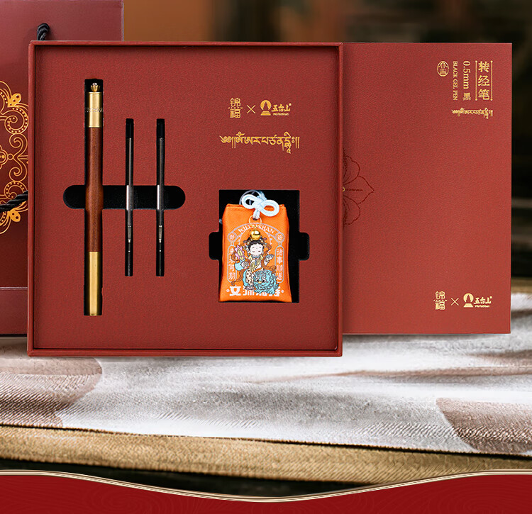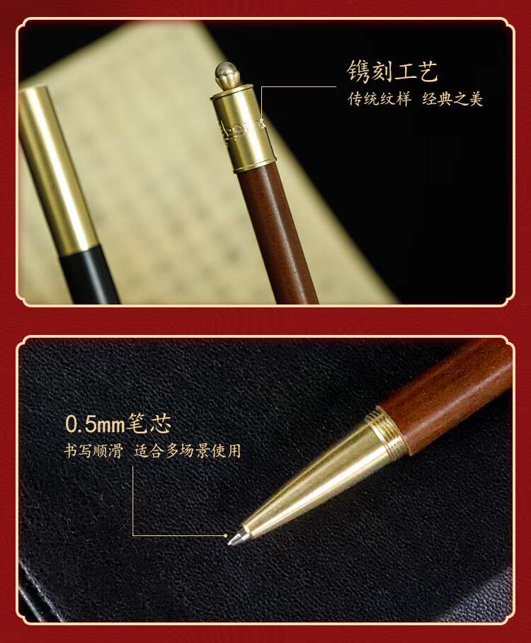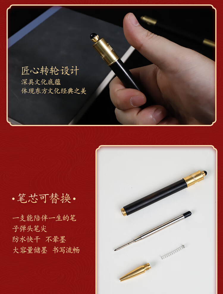 锦福五台山联名签字笔宝珠笔高端礼品礼物教师节生日礼 酸枝木五台山转经笔-礼盒装