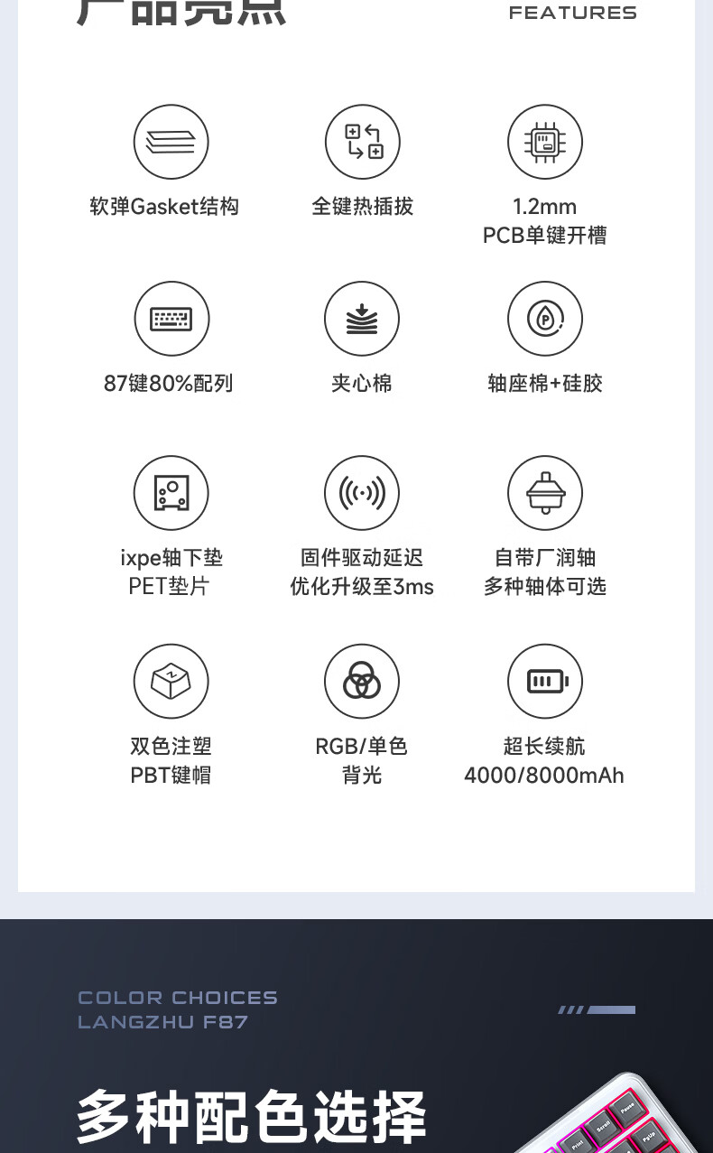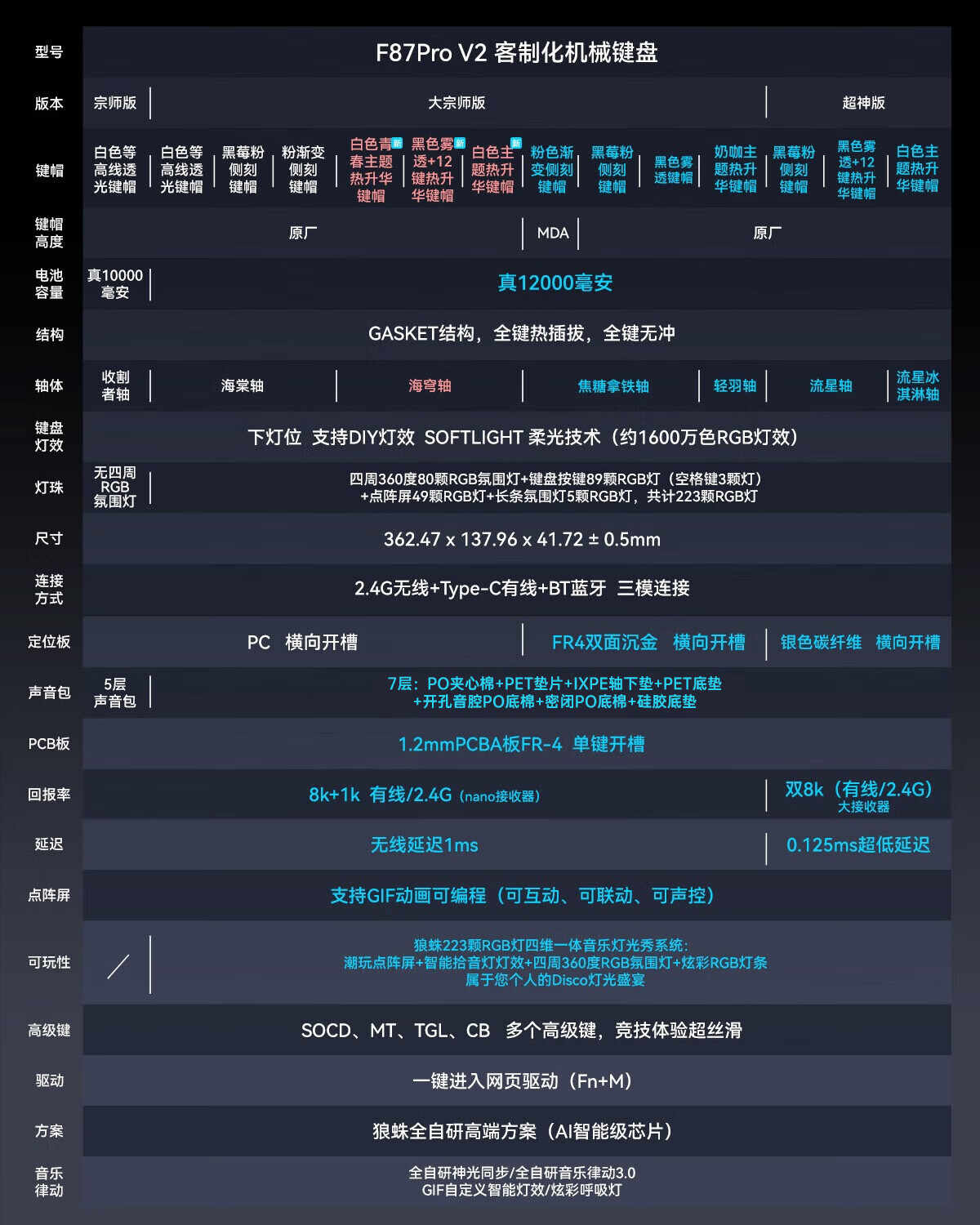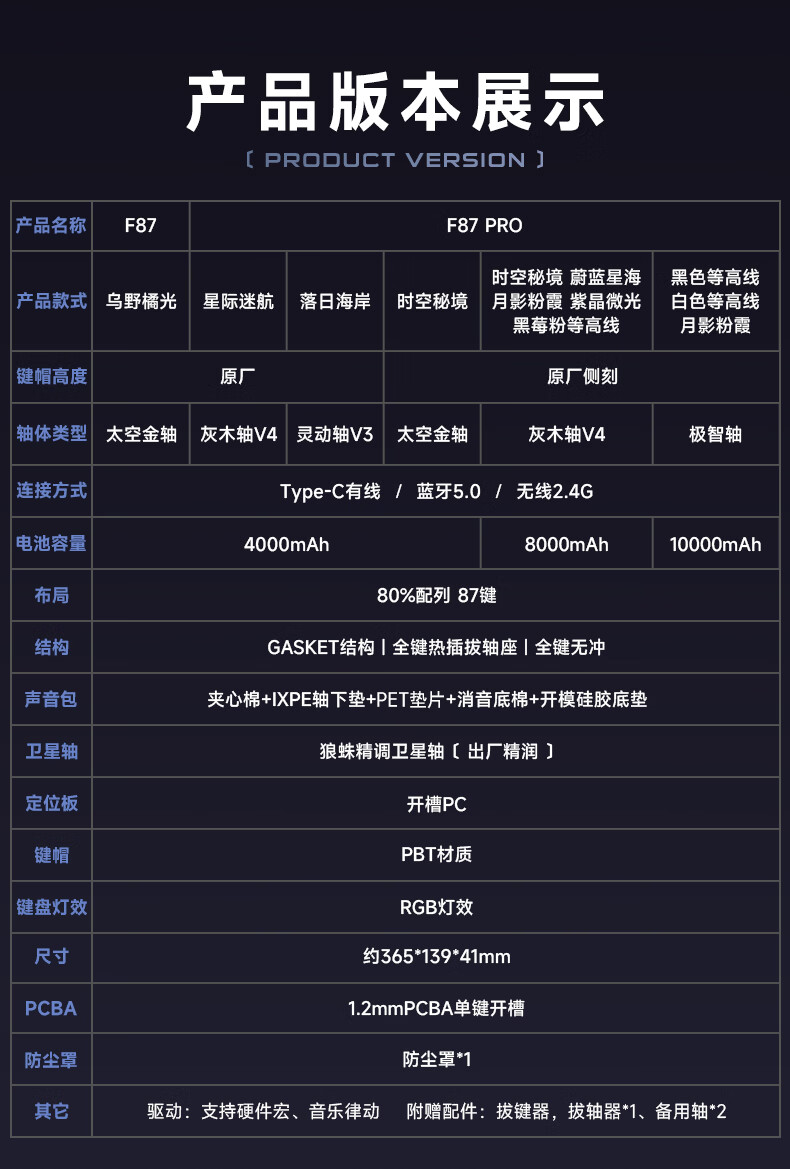 狼蛛(AULA)F87ProV2客制化无线机械键盘电竞游戏专用 蓝牙/2.4G/有线三模连接全键热插拔gasket结构办公键盘 F87ProV2大宗师版【海棠轴】黑莓粉侧刻
