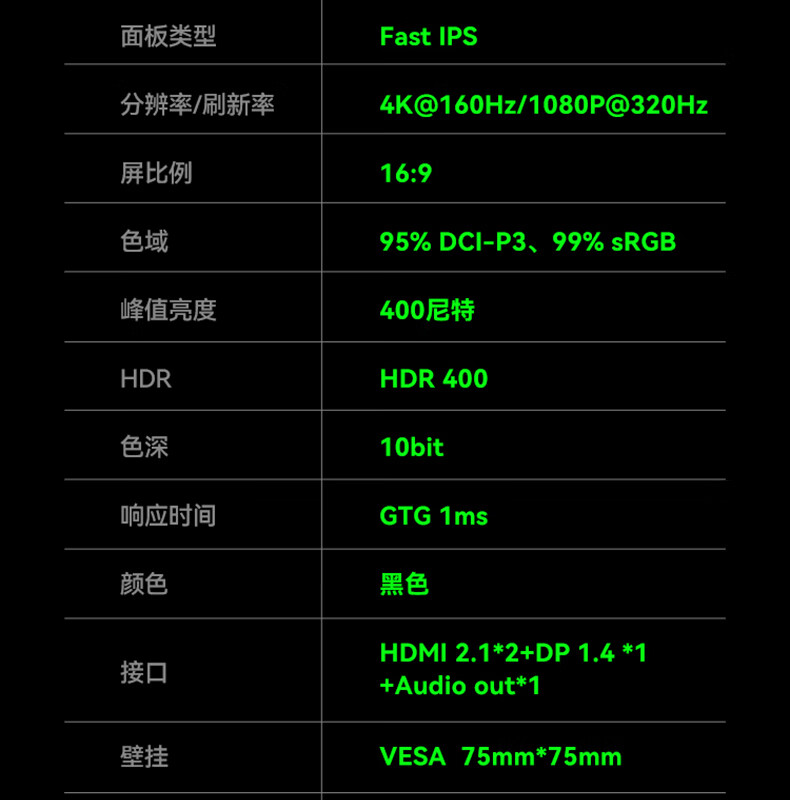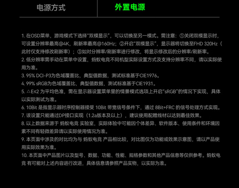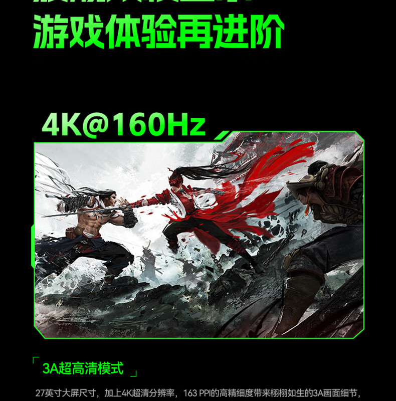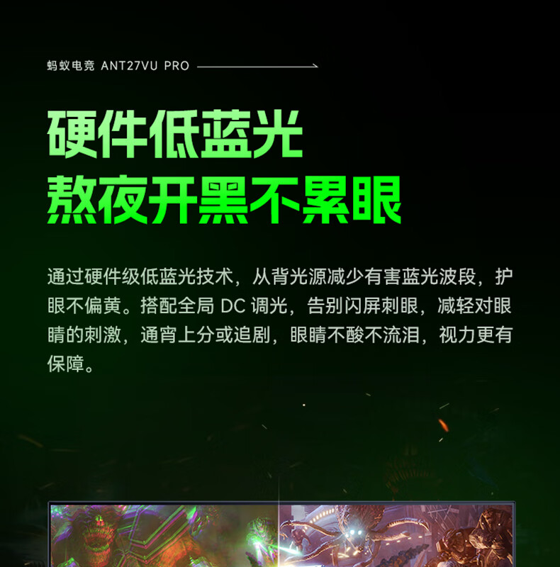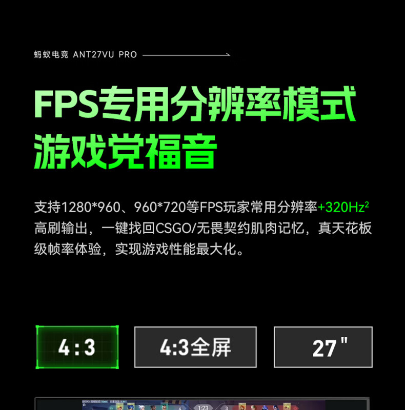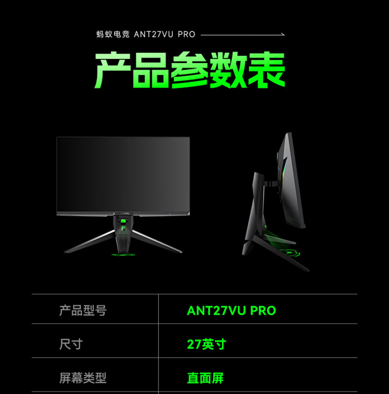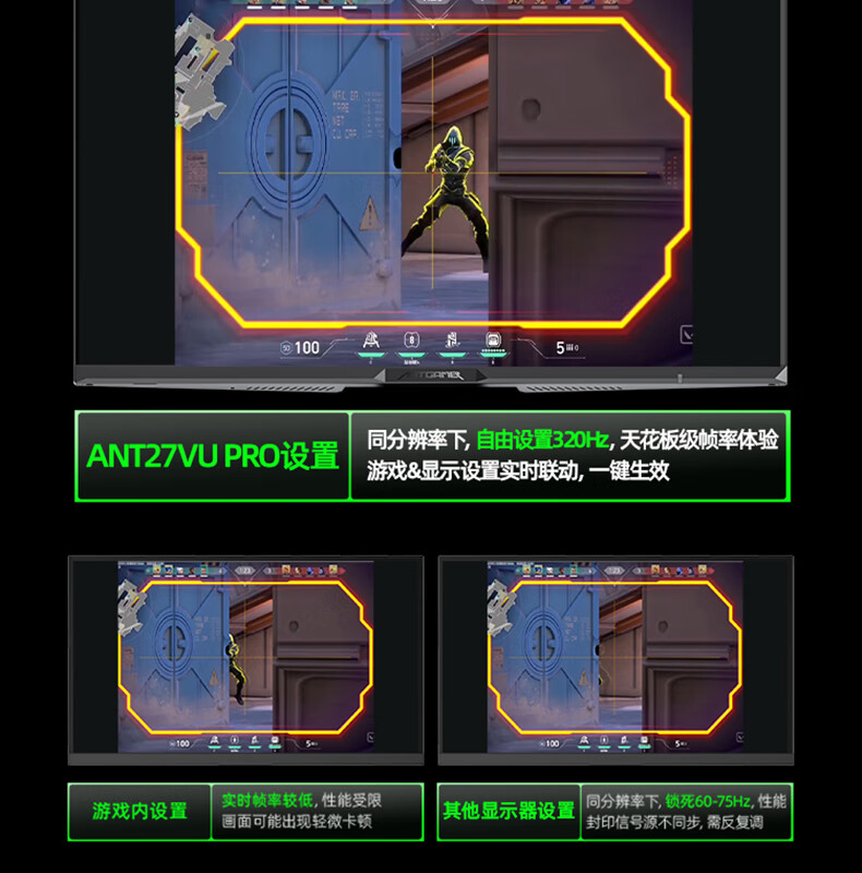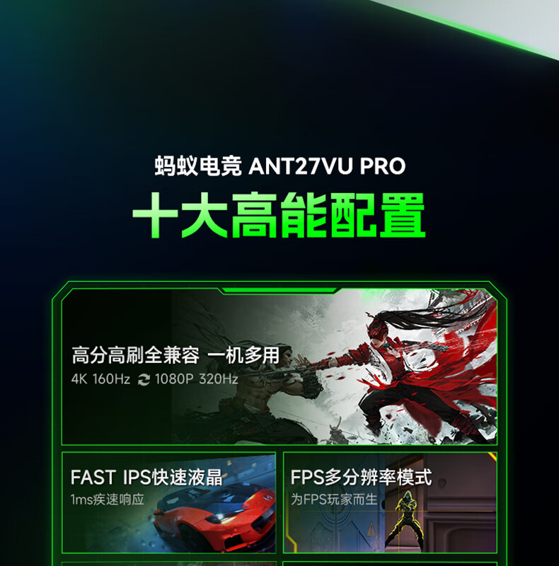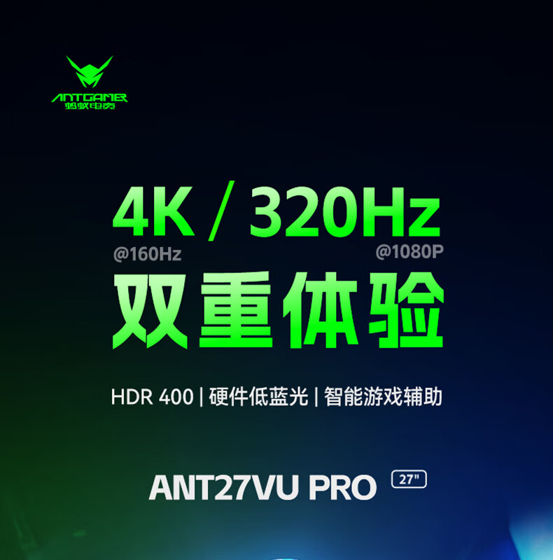 ANTGAMER蚂蚁电竞27英寸4K160Hz双模320Hz HDR400 DIC运动模糊消除硬件低蓝光显示器ANT27VU Pro