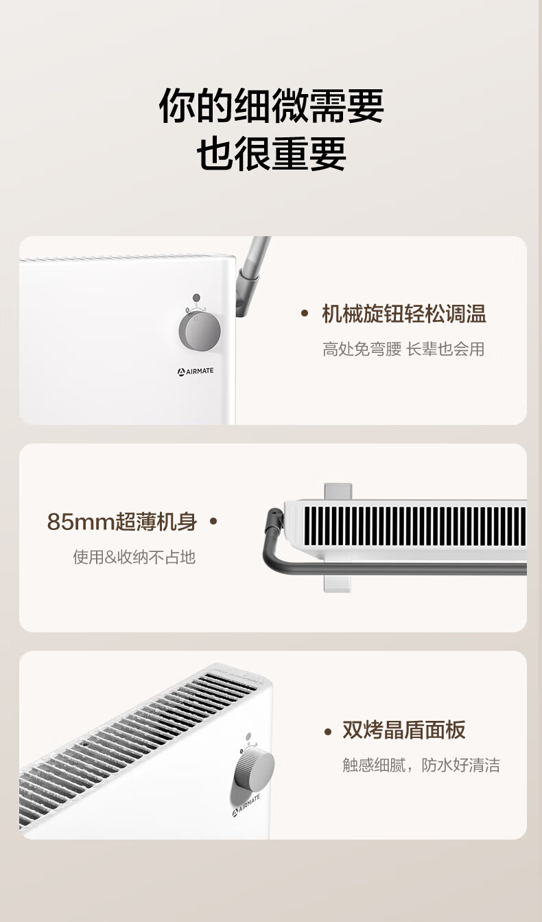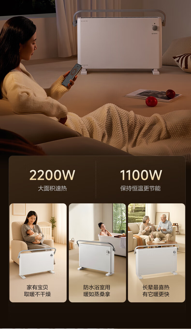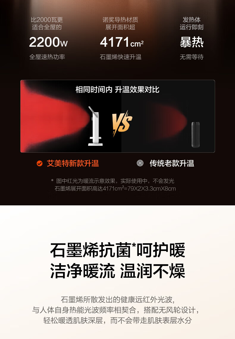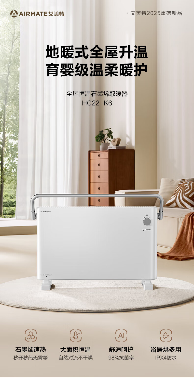 艾美特(AIRMATE)艾美特石墨烯欧式快热炉速热取暖器电暖器气片航空铝抑菌浴室电暖器家用暖风机 遥控款石墨烯欧快 白色