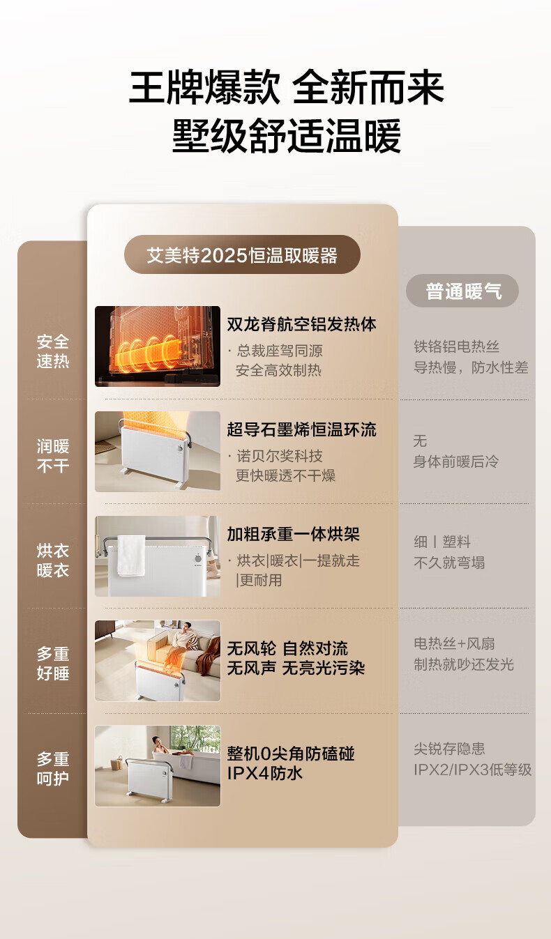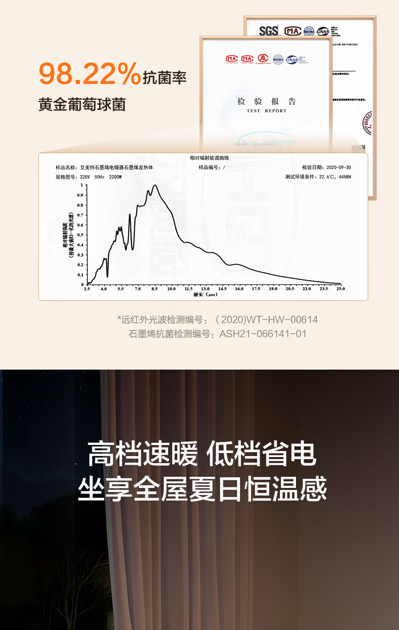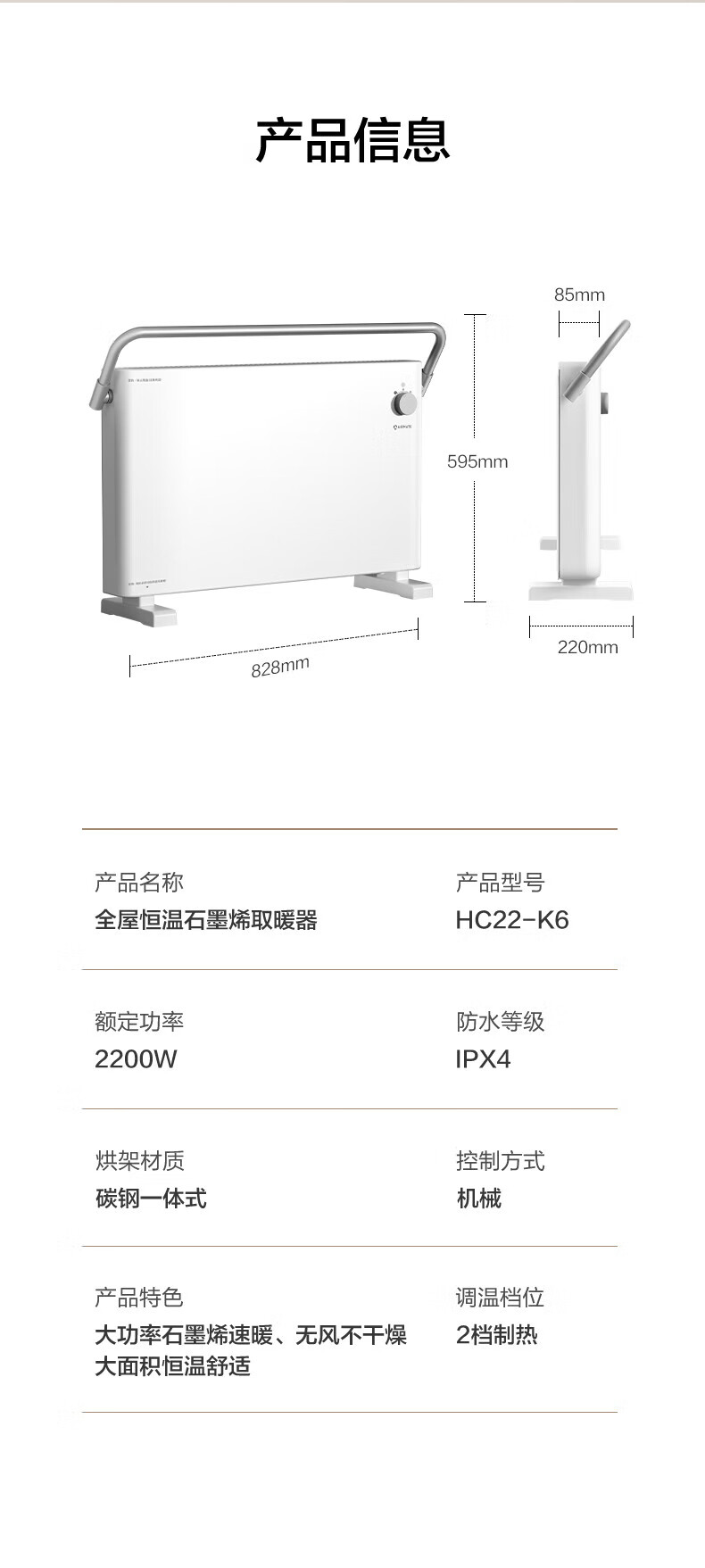 艾美特(AIRMATE)艾美特石墨烯欧式快热炉速热取暖器电暖器气片航空铝抑菌浴室电暖器家用暖风机 遥控款石墨烯欧快 白色