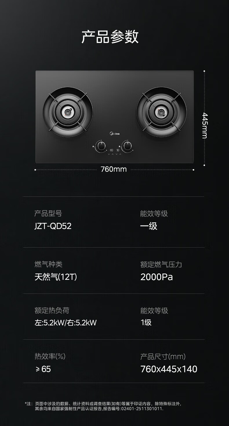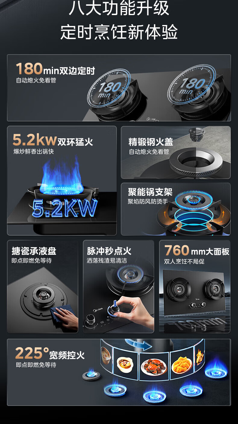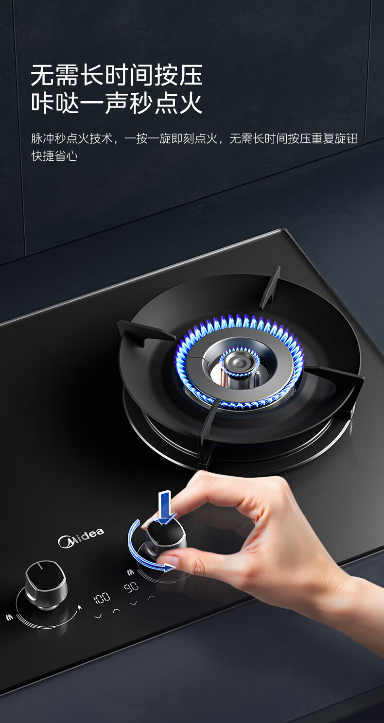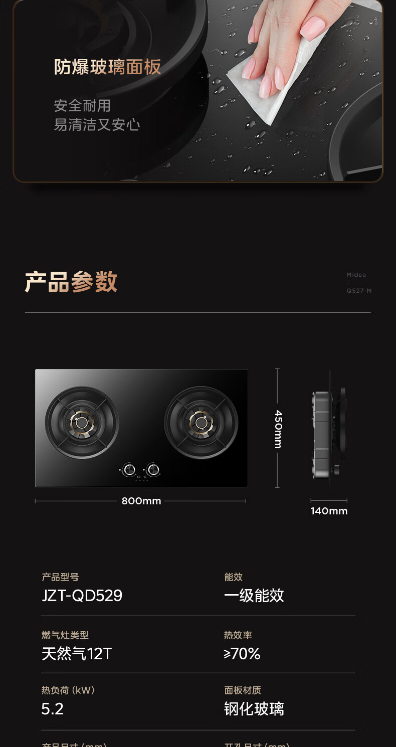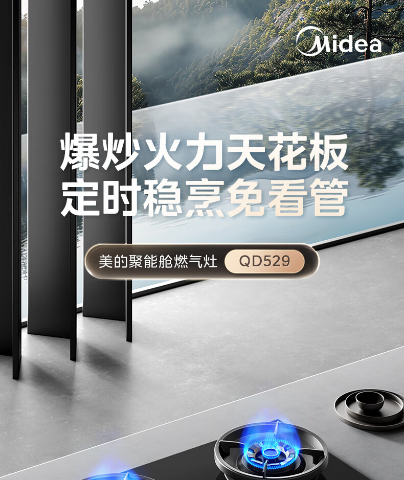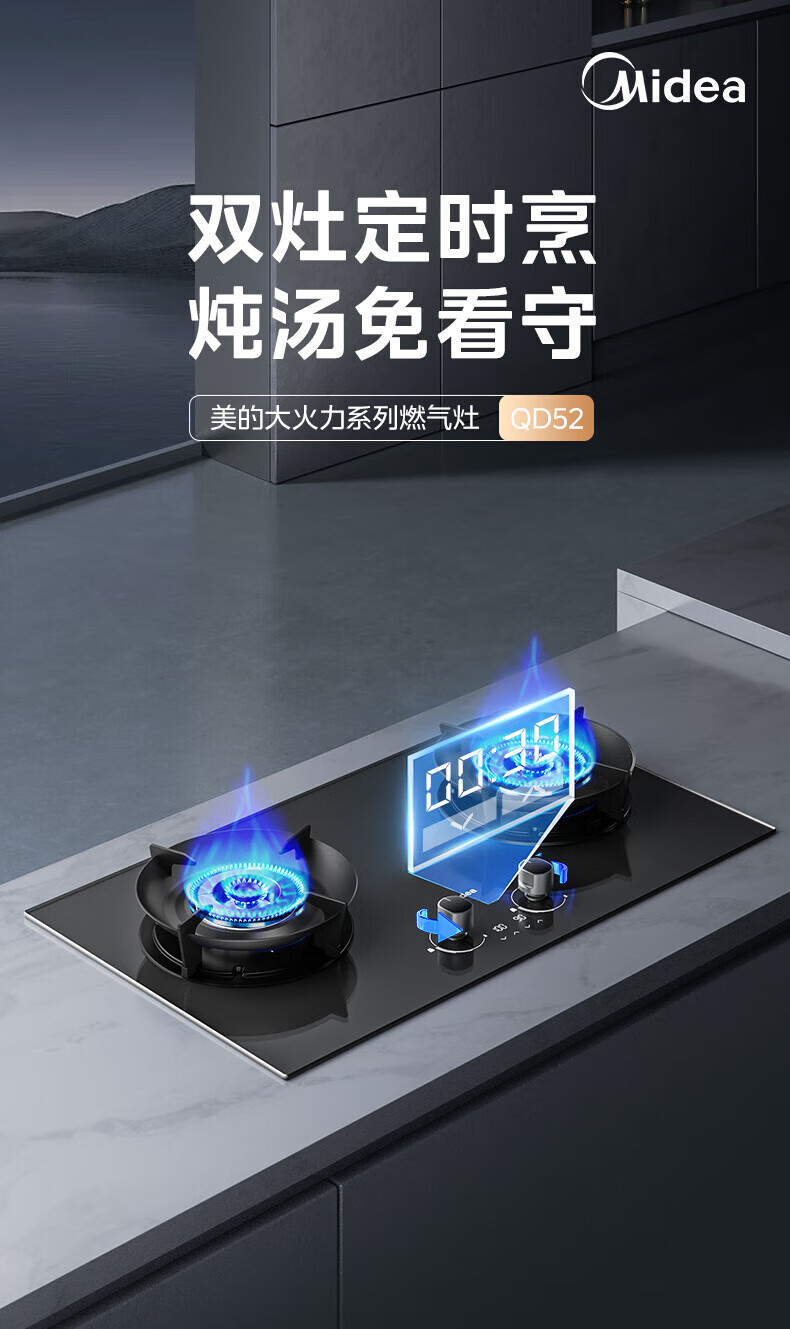 美的(Midea)搭配AK5/AK7pro燃气灶天然气双眼灶 5.2KW大火力 猛火聚能灶台煤气灶 节能灶具 天然气【双边定时灶70%热效率QD529】 家电
