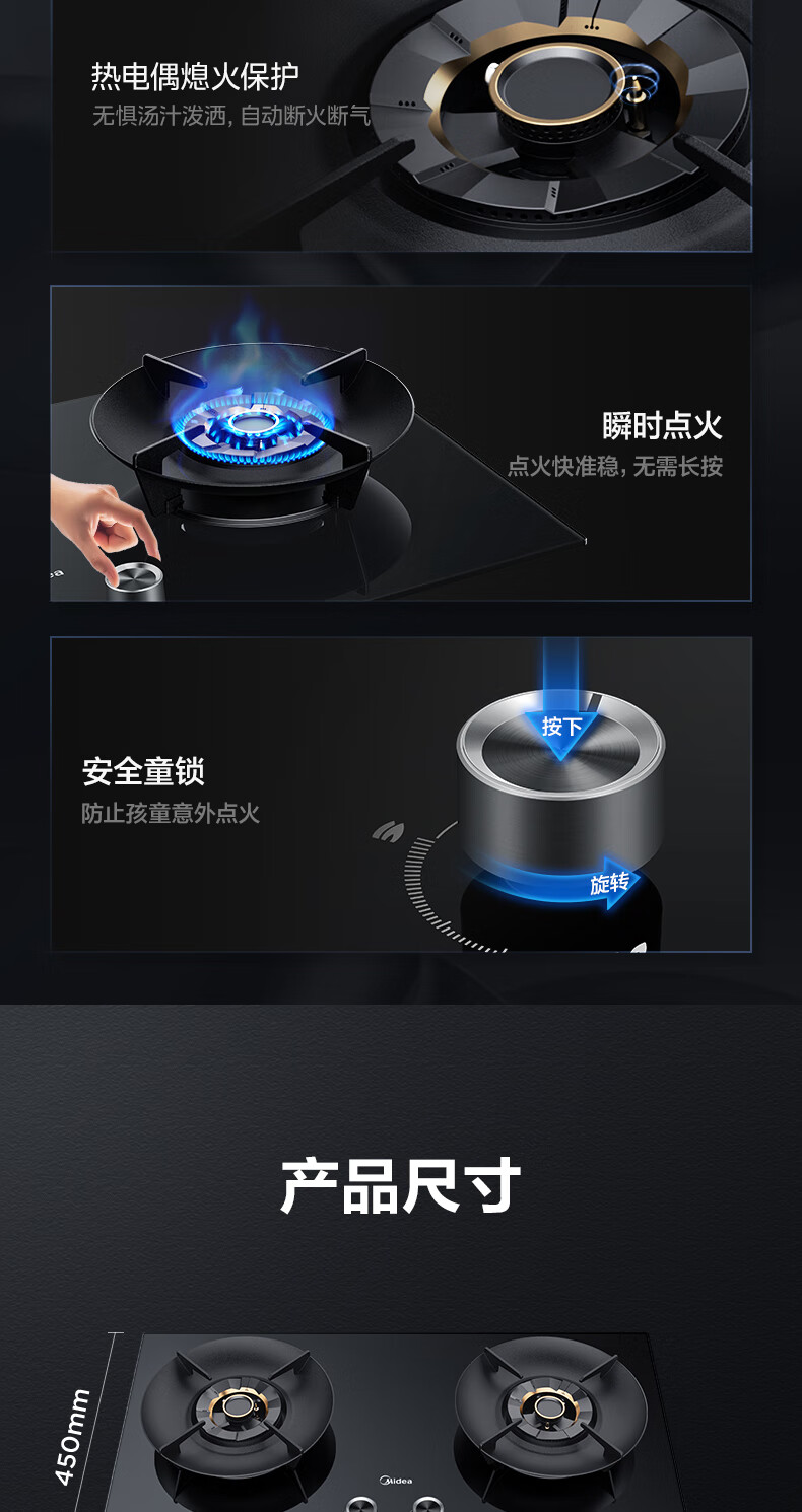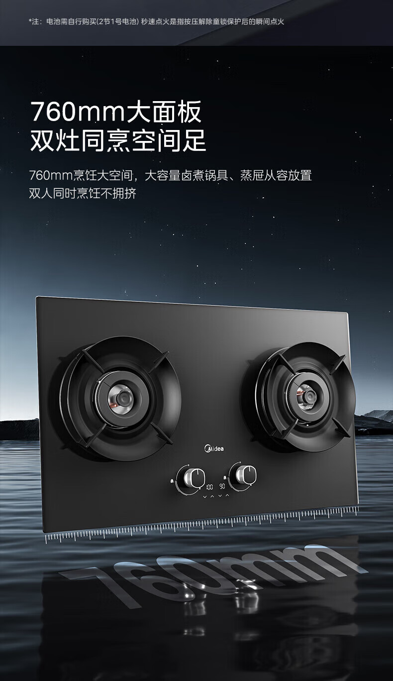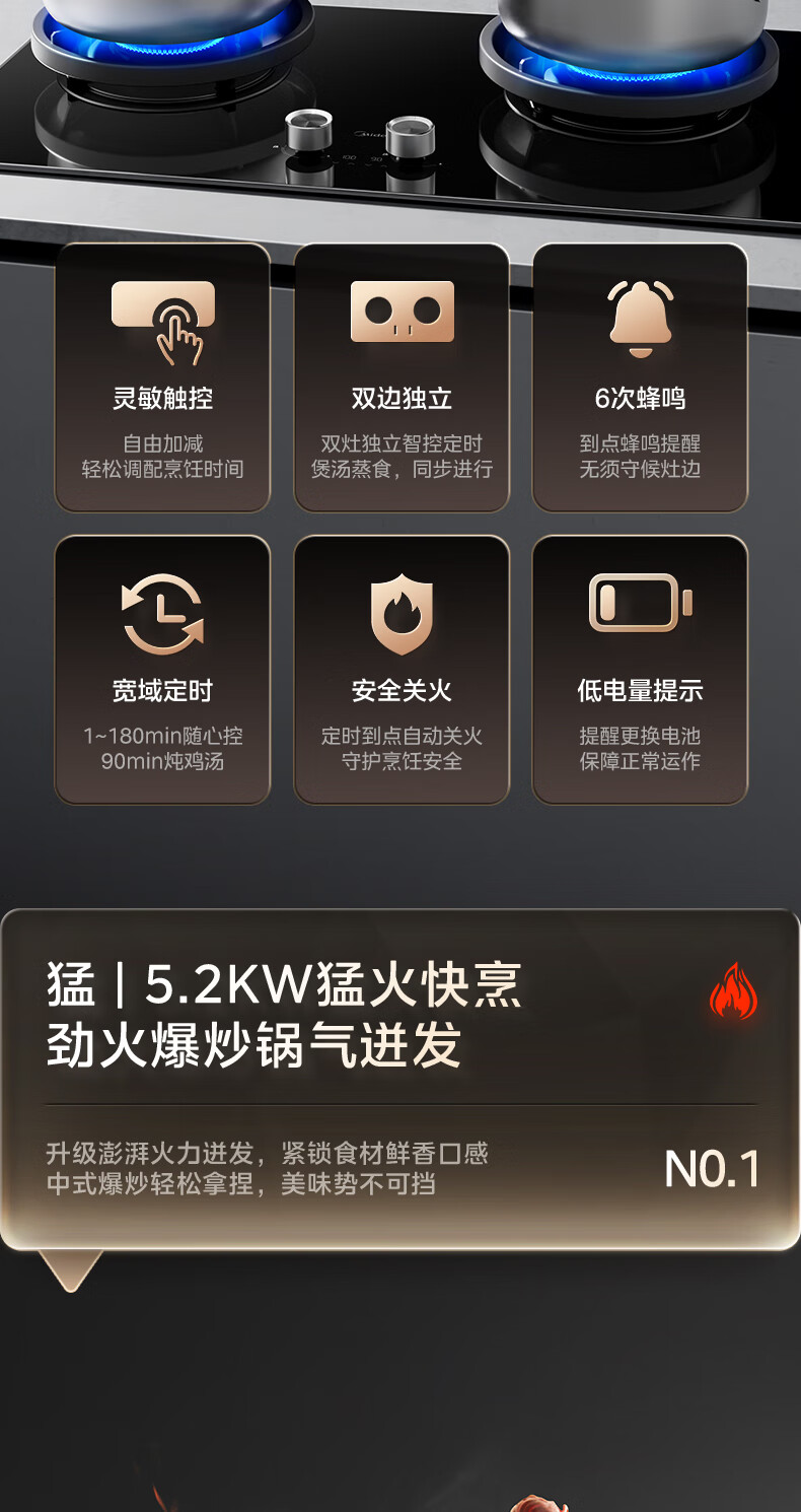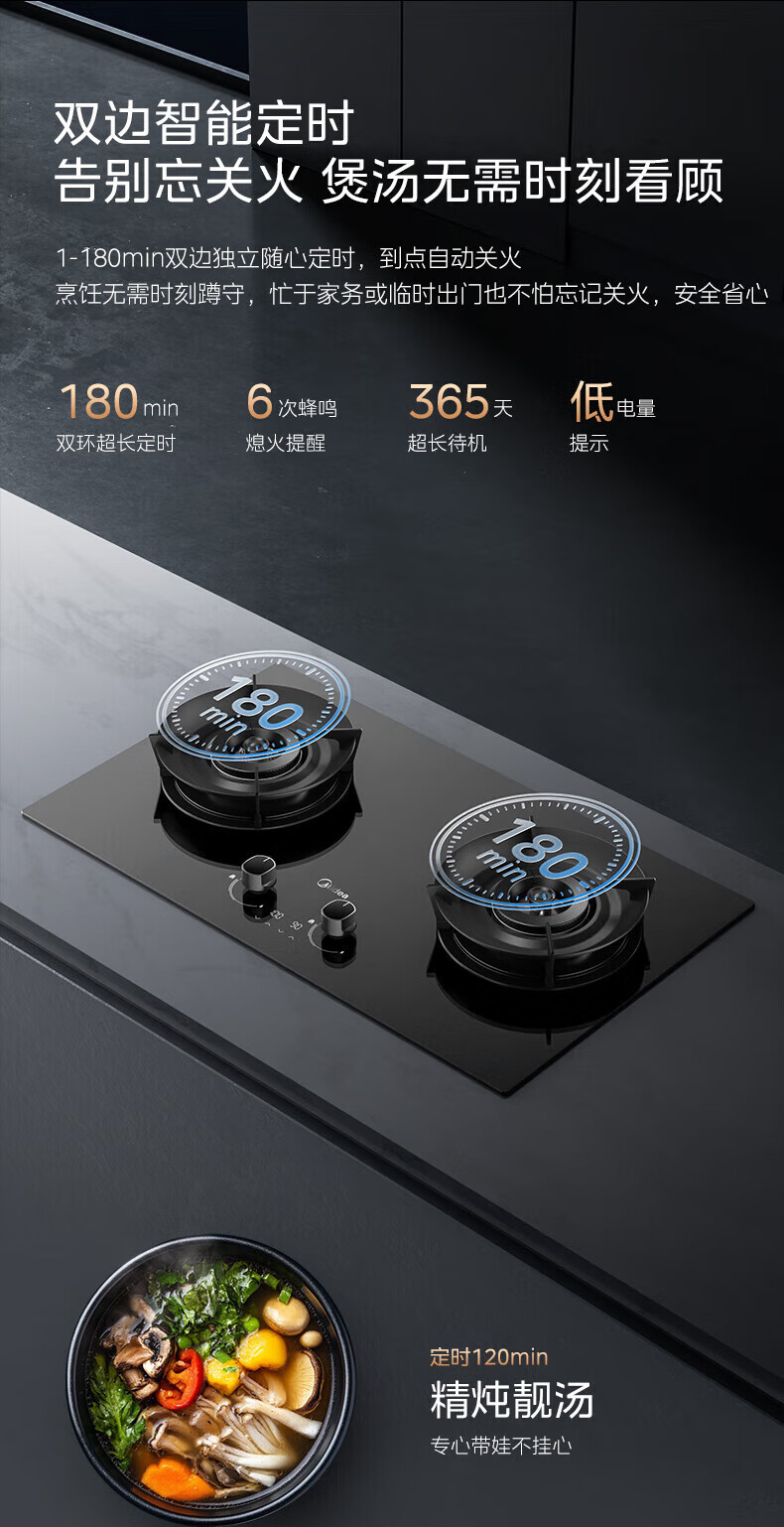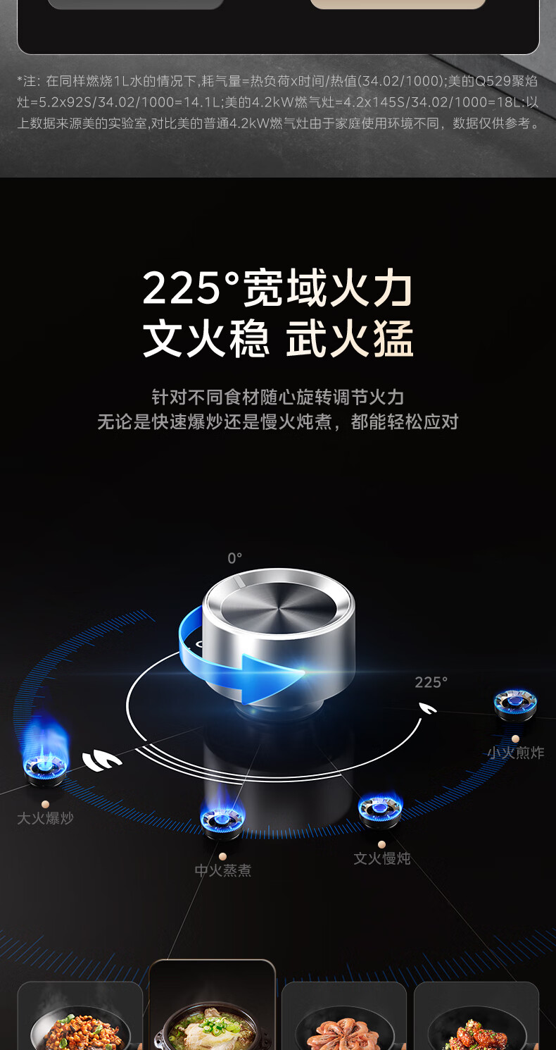 美的(Midea)搭配AK5/AK7pro燃气灶天然气双眼灶 5.2KW大火力 猛火聚能灶台煤气灶 节能灶具 天然气【双边定时灶70%热效率QD529】 家电