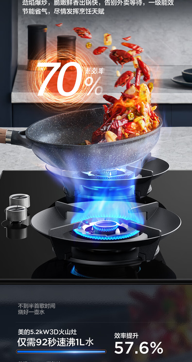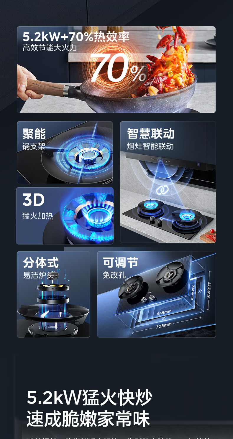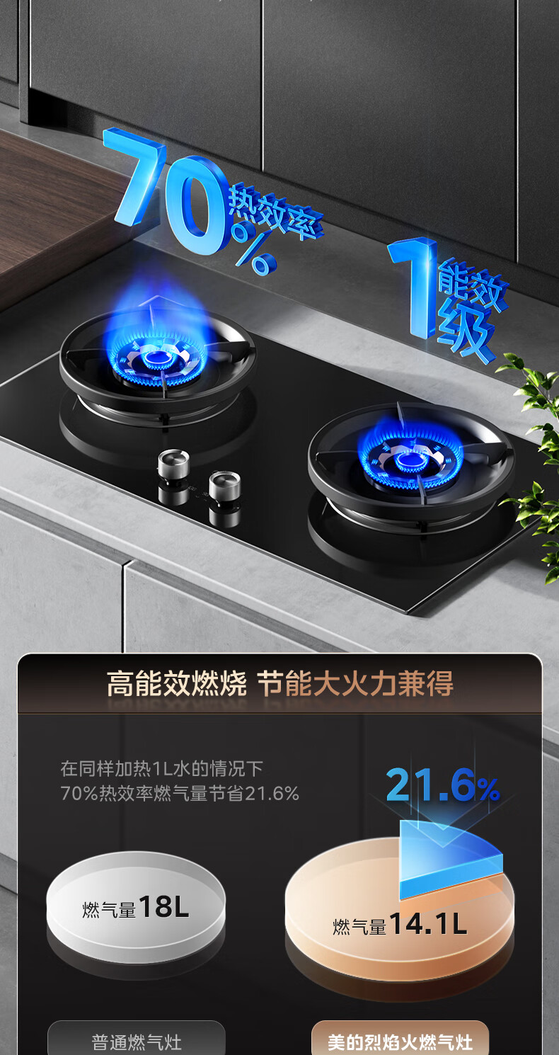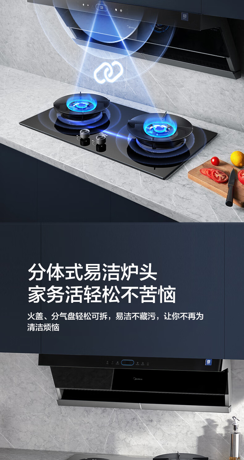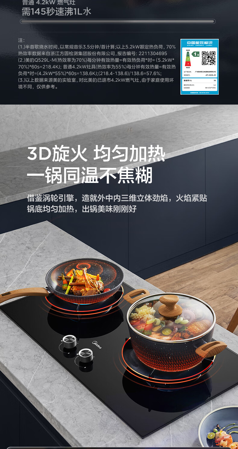 美的(Midea)搭配AK5/AK7pro燃气灶天然气双眼灶 5.2KW大火力 猛火聚能灶台煤气灶 节能灶具 天然气【双边定时灶70%热效率QD529】 家电