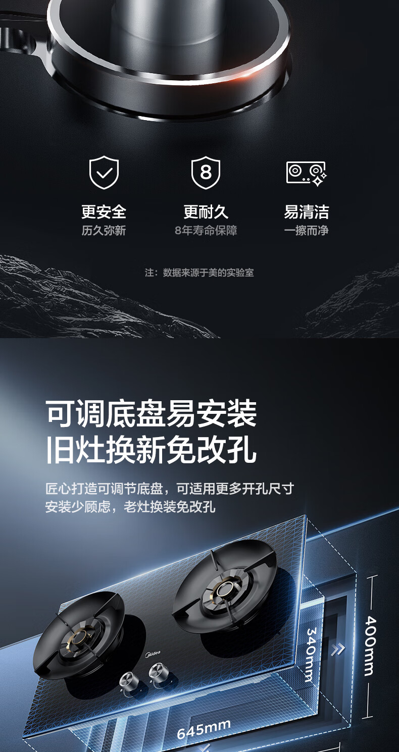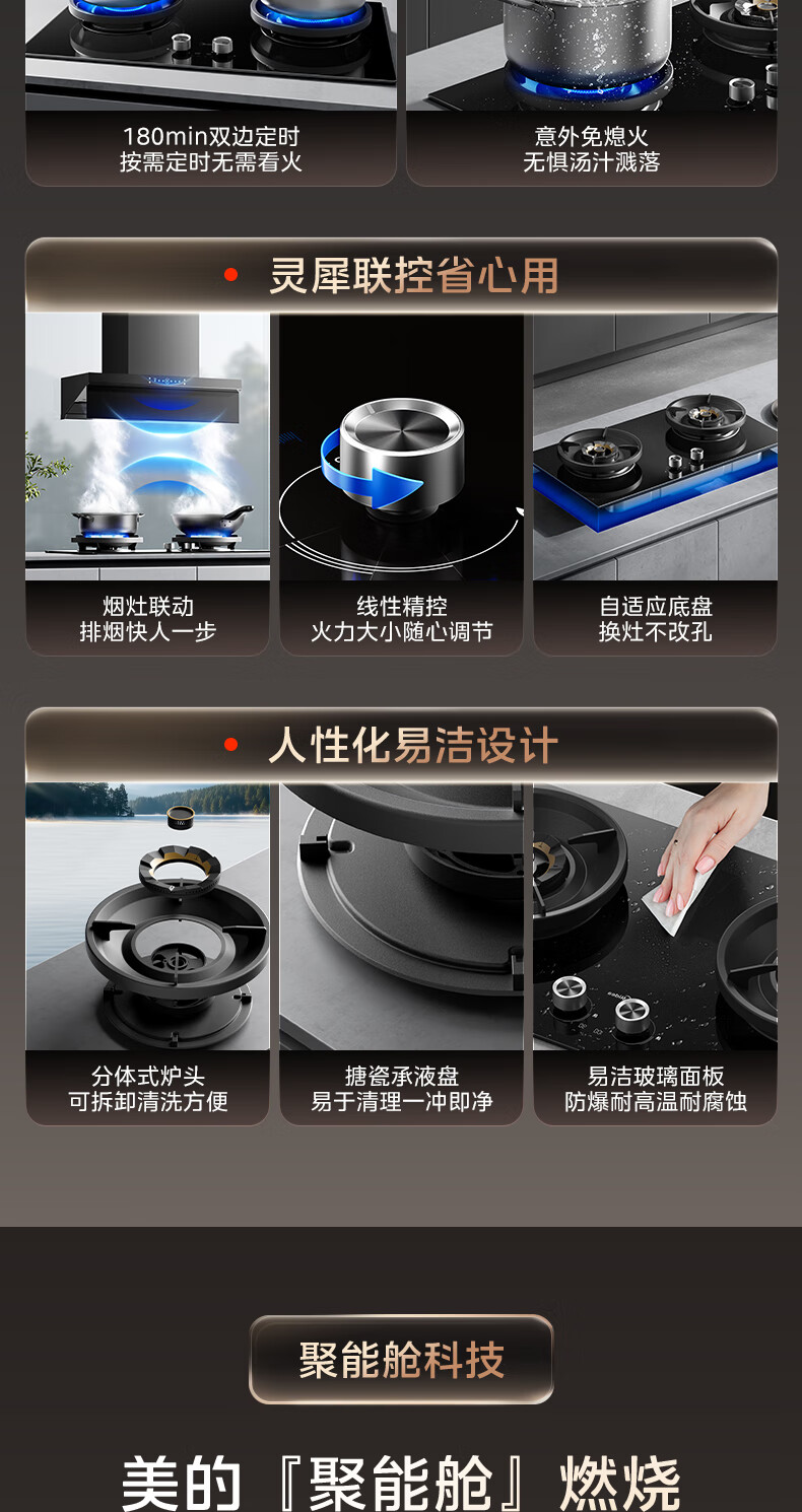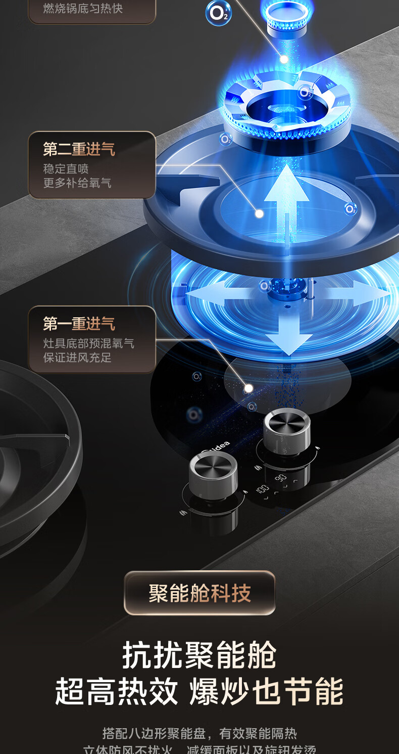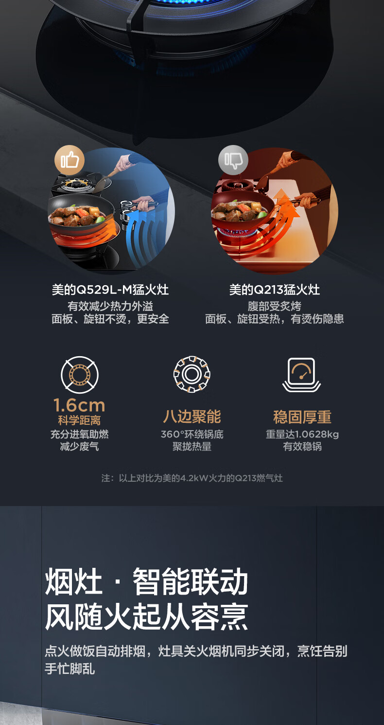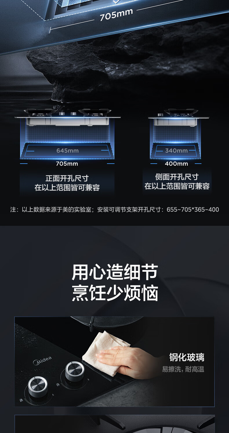 美的(Midea)搭配AK5/AK7pro燃气灶天然气双眼灶 5.2KW大火力 猛火聚能灶台煤气灶 节能灶具 天然气【双边定时灶70%热效率QD529】 家电