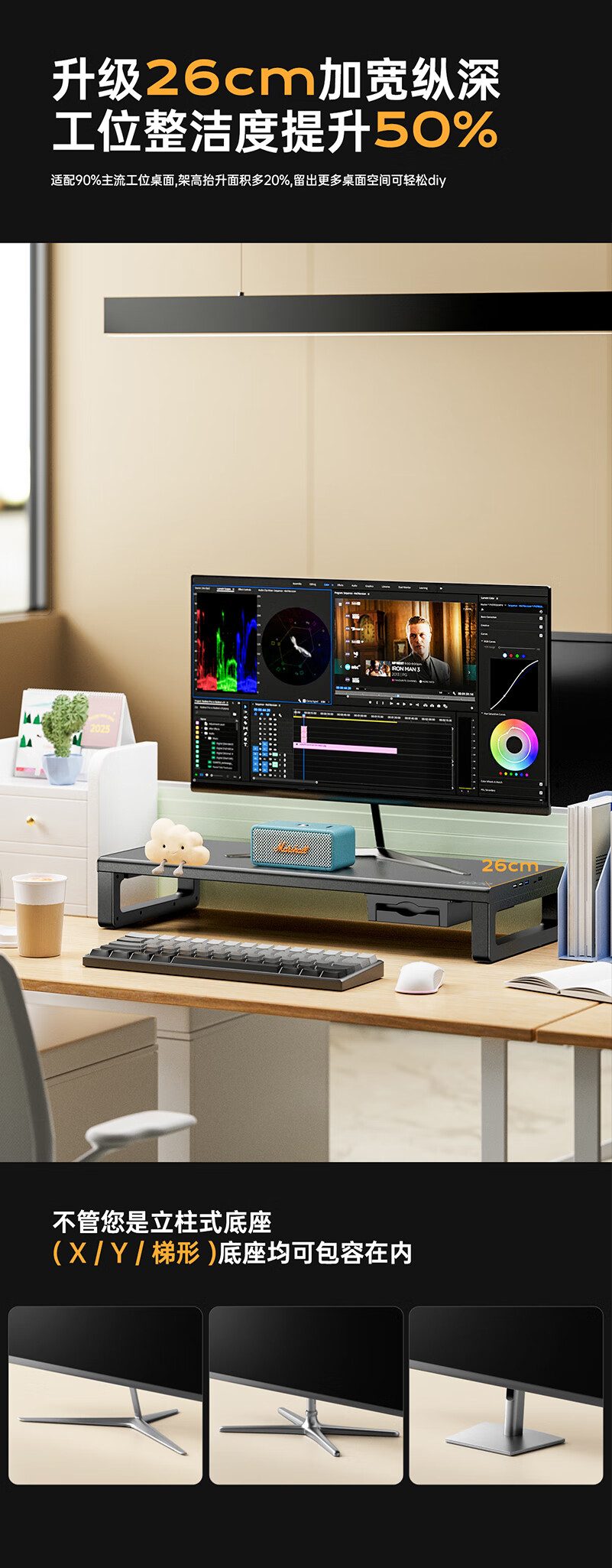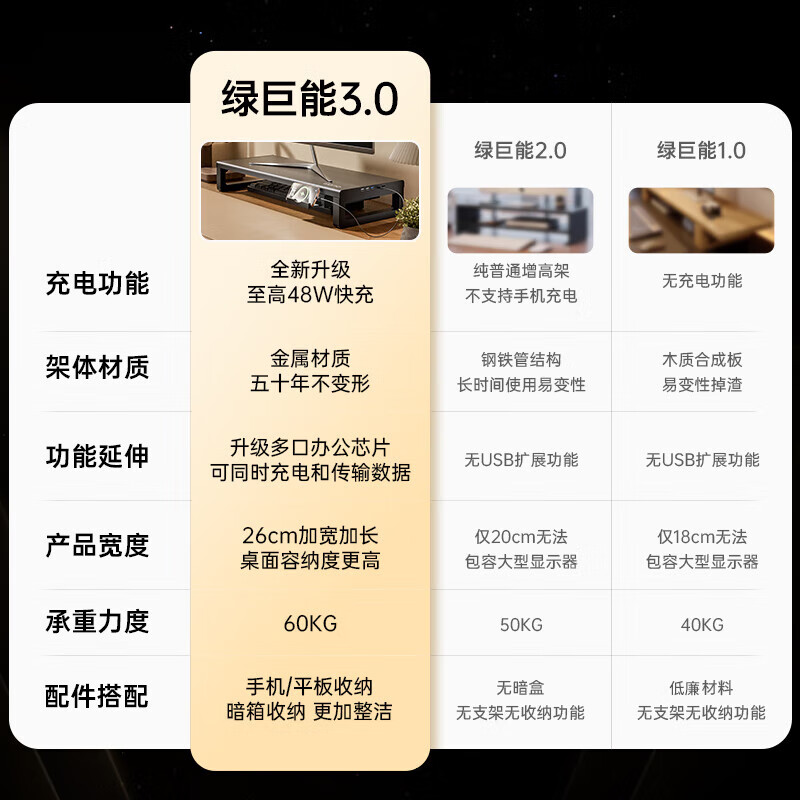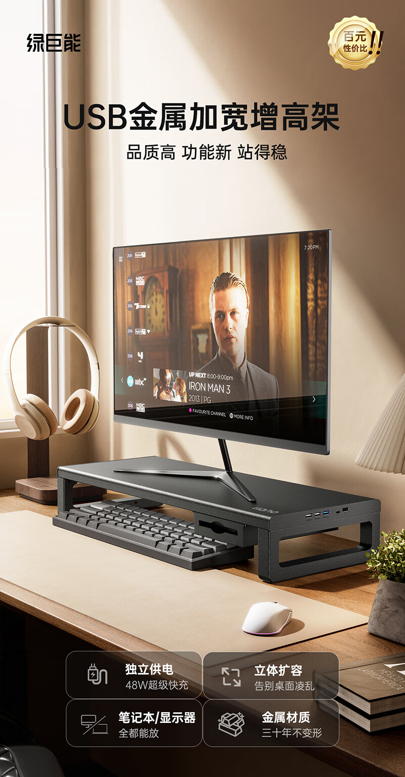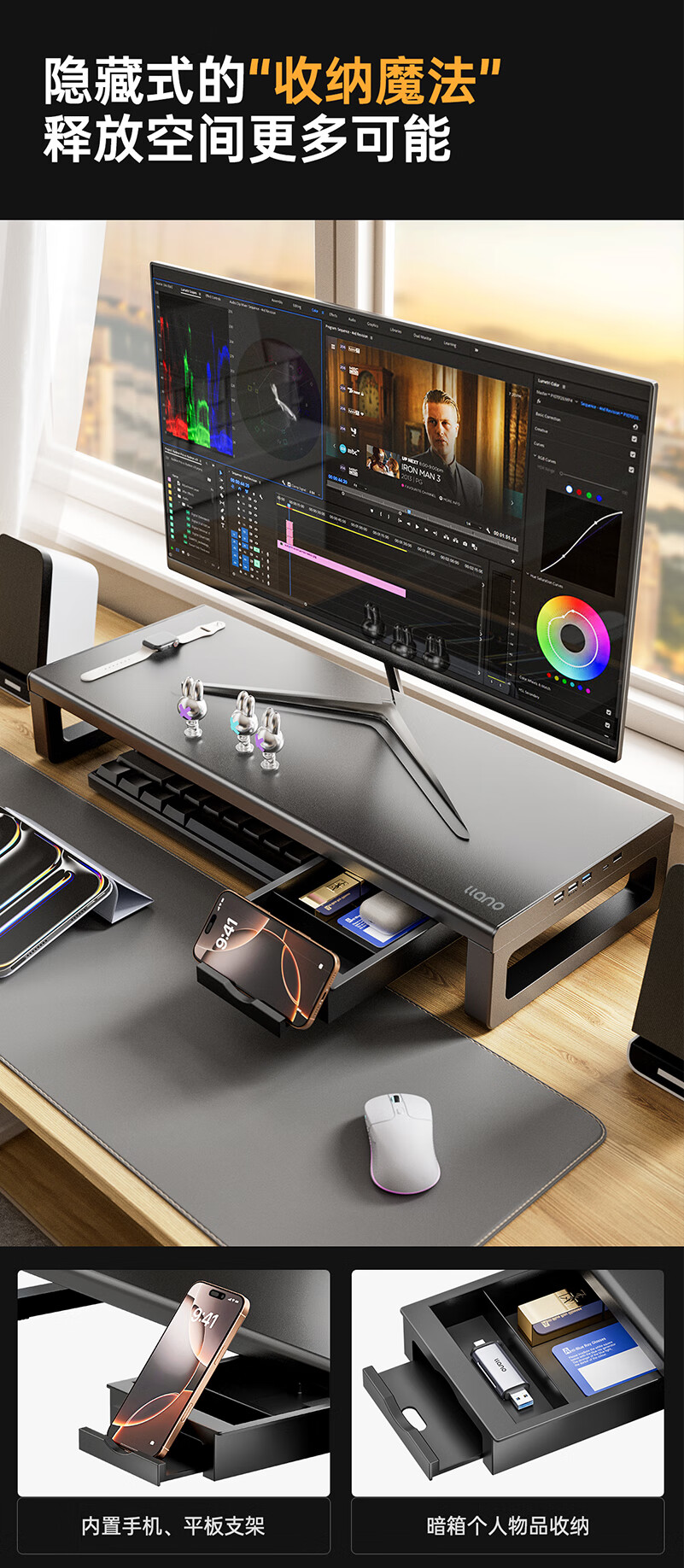 绿巨能(llano)显示器增高架多功能桌面手机支架电脑增高架电脑桌支架屏幕增高架台式笔记本支架显示器增高置物架