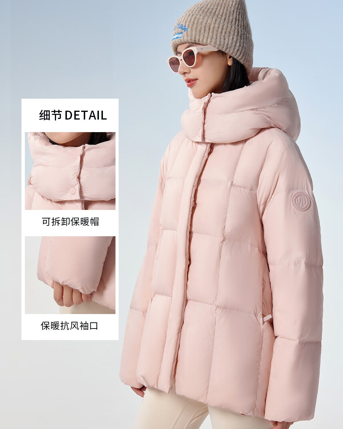 古迪企鹅【时尚简约】可拆卸帽短款保暖羽绒服百搭甄选高品质鸭绒通勤日常 樱花粉 S (155)