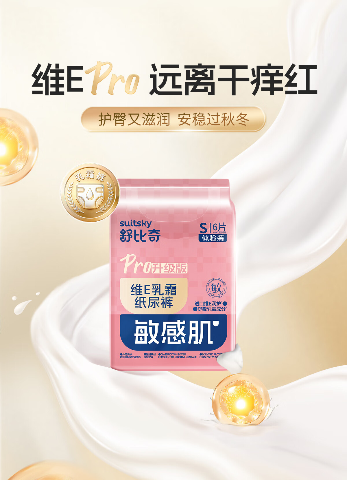 舒比奇(Suitsky)敏感肌维EPro乳霜纸尿裤体验装S码6片