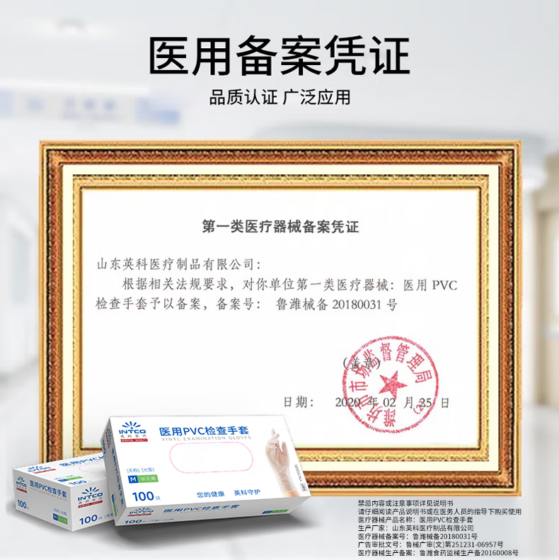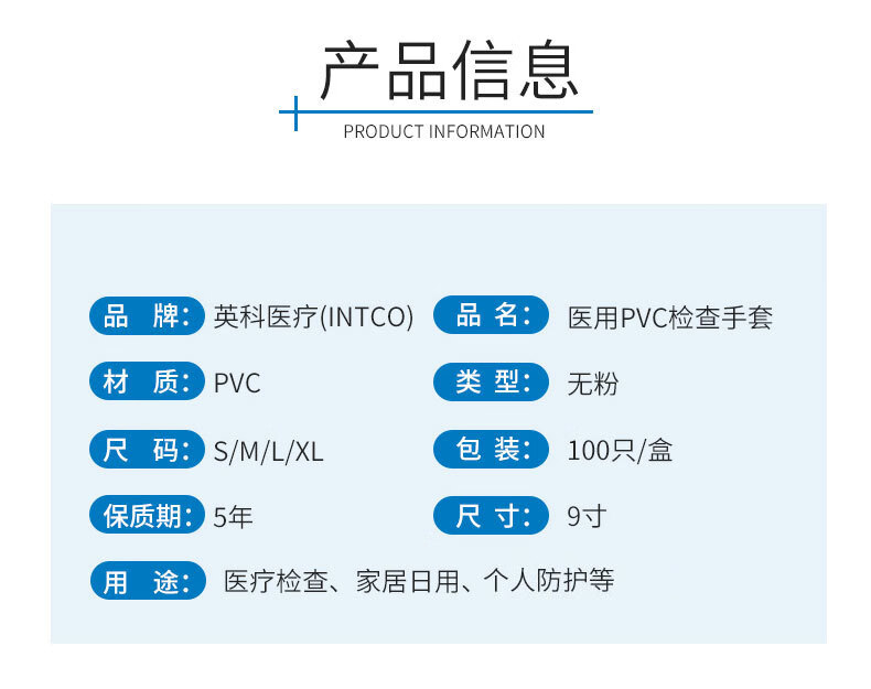 英科医疗一次性医用手套PVC防护手套 清洁洗碗家务食品级手套 大号L码
