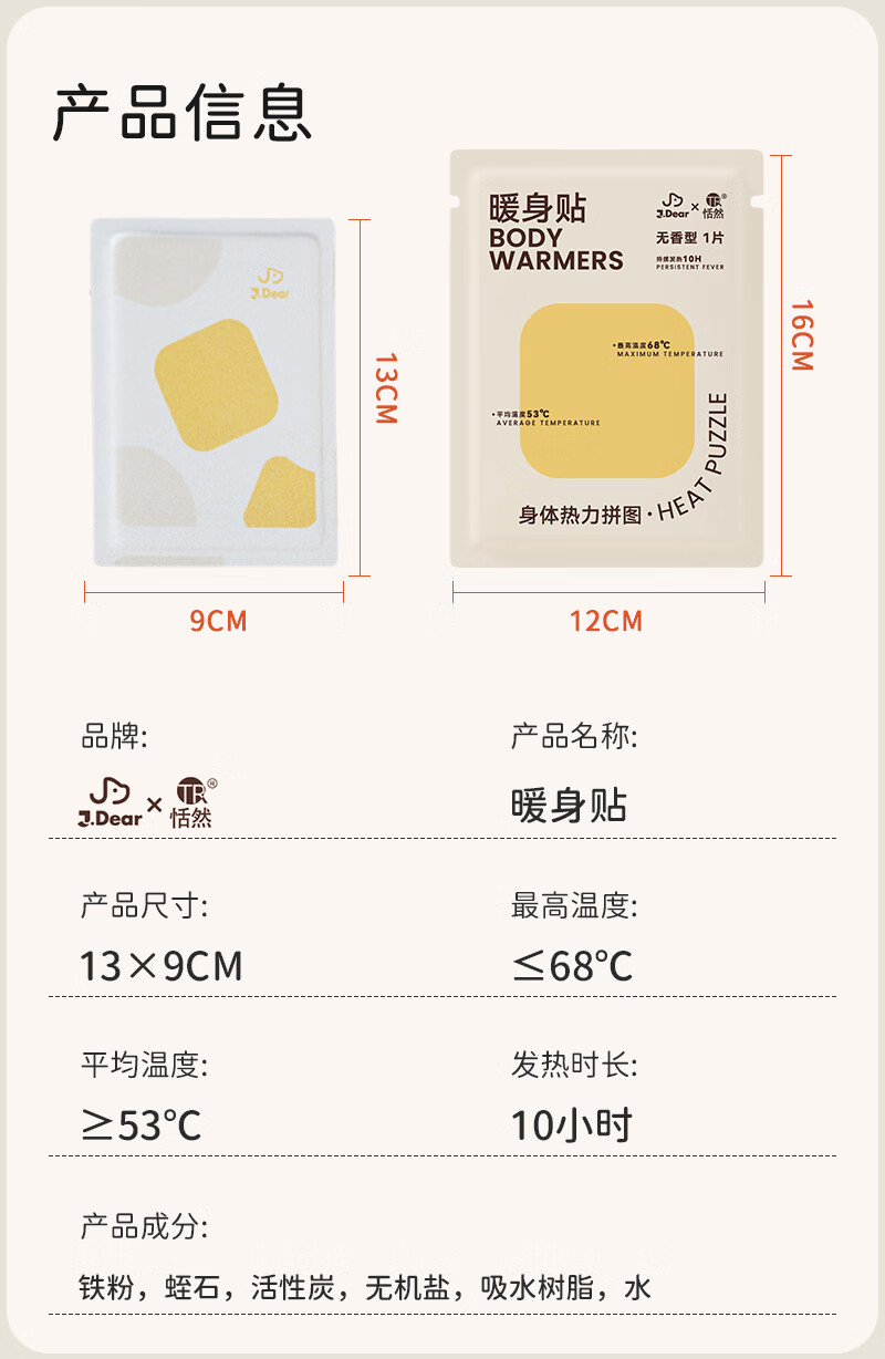恬然xJDear京东联名暖宝宝贴60片腰背发热暖身贴大姨妈保暖宫热敷贴