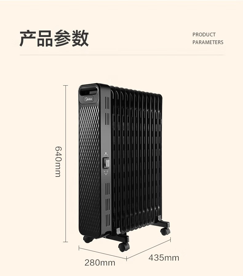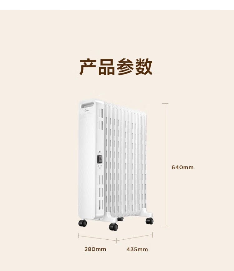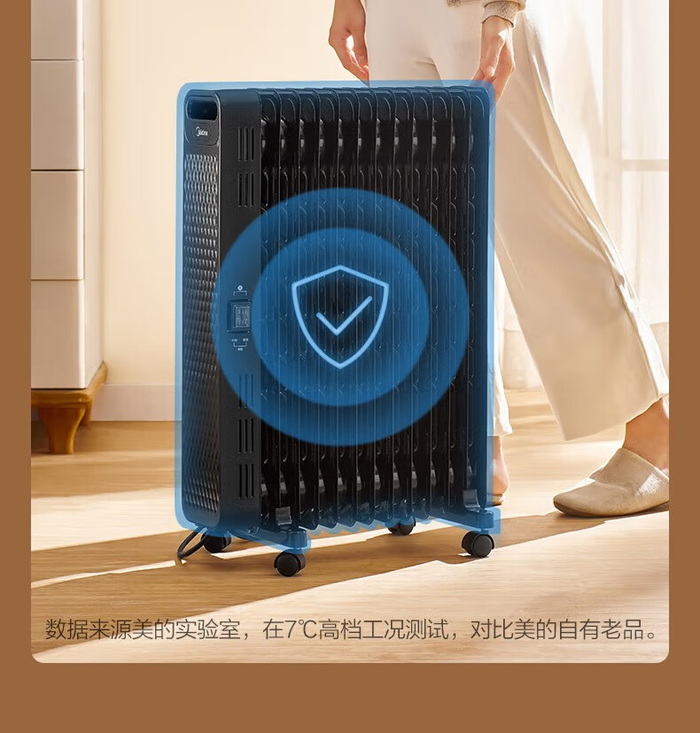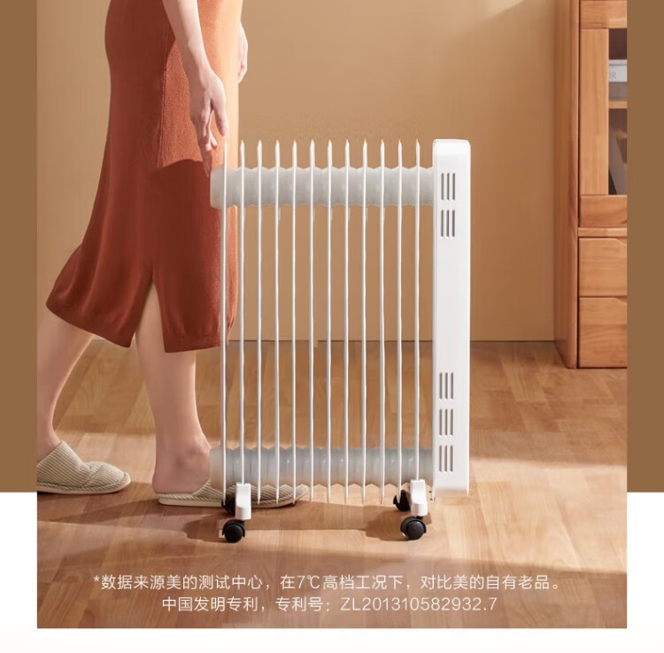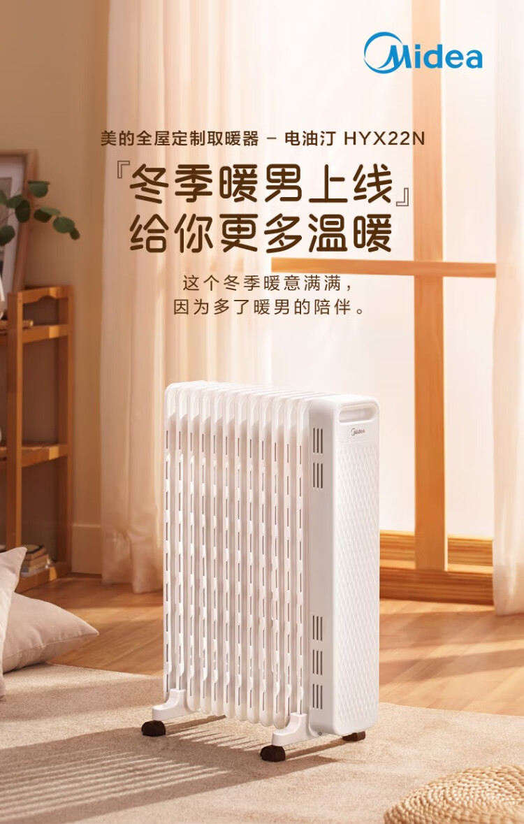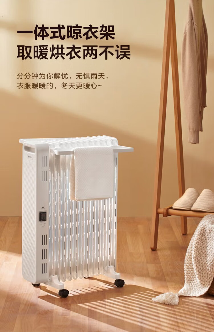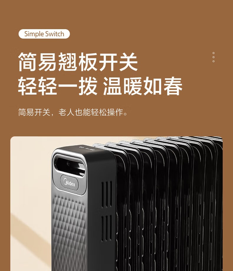 美的(Midea)取暖器电热油汀 家用电暖器电暖气片 暖风机家用大面积30平方全屋速热加湿烘衣节能省电取暖神器 13片 【简易翘板开关】升级散热更广