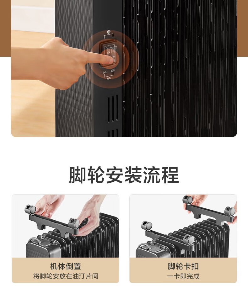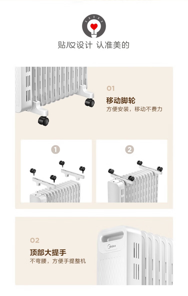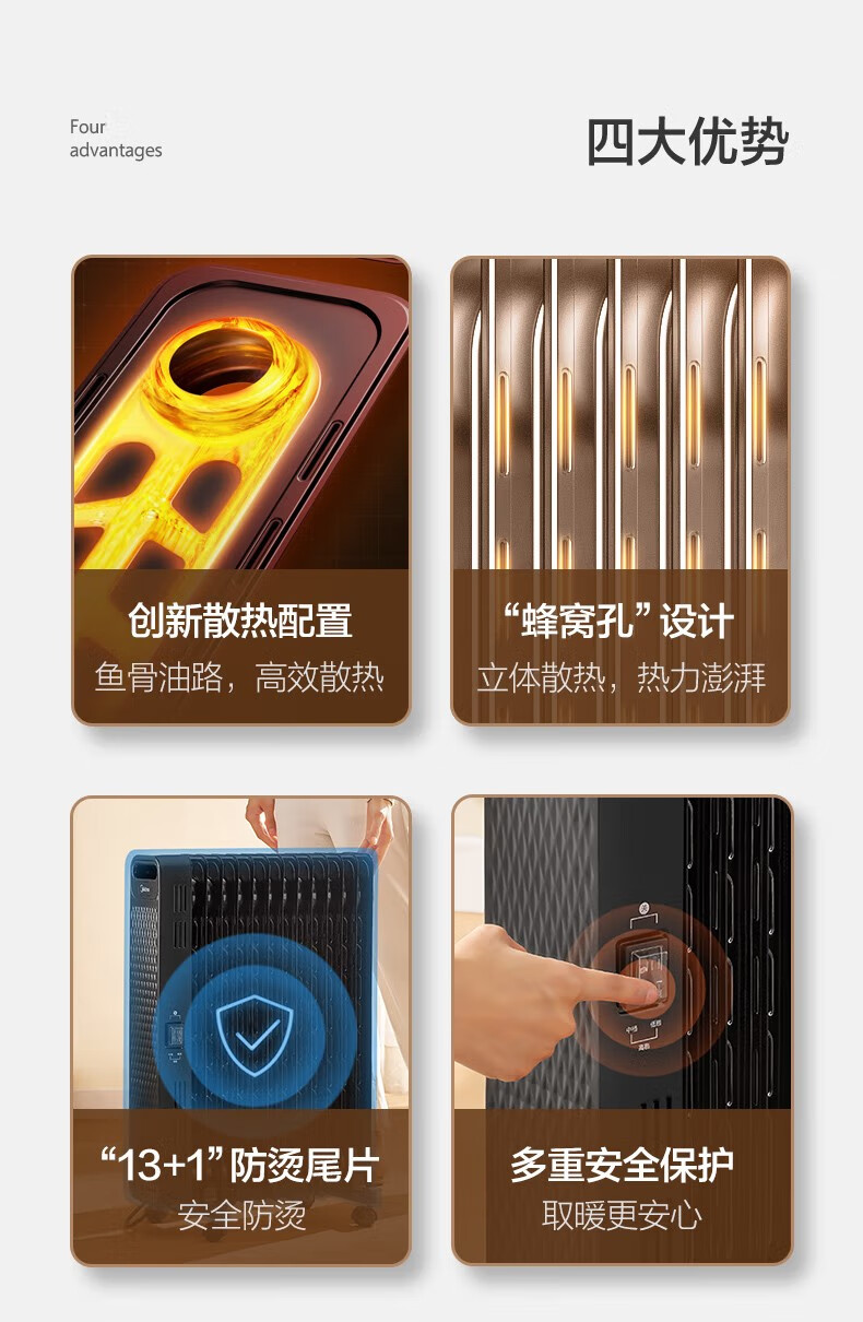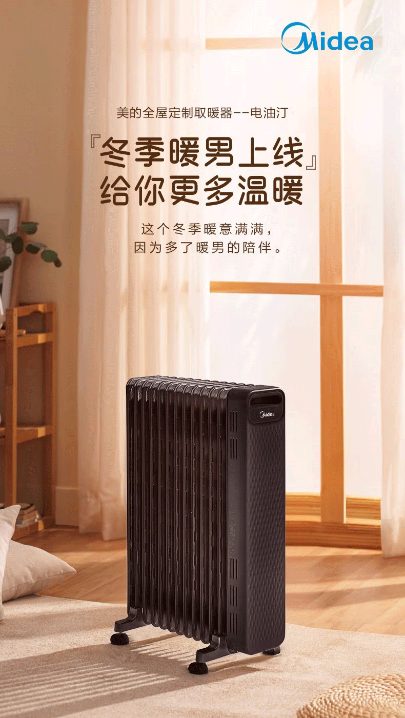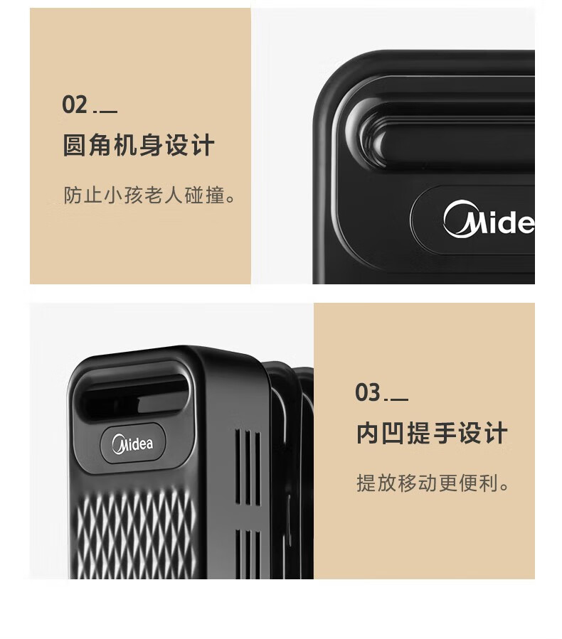 美的(Midea)取暖器电热油汀 家用电暖器电暖气片 暖风机家用大面积30平方全屋速热加湿烘衣节能省电取暖神器 13片 【简易翘板开关】升级散热更广