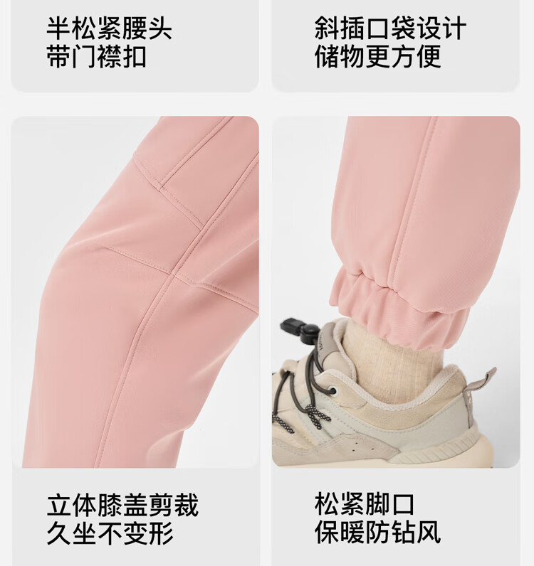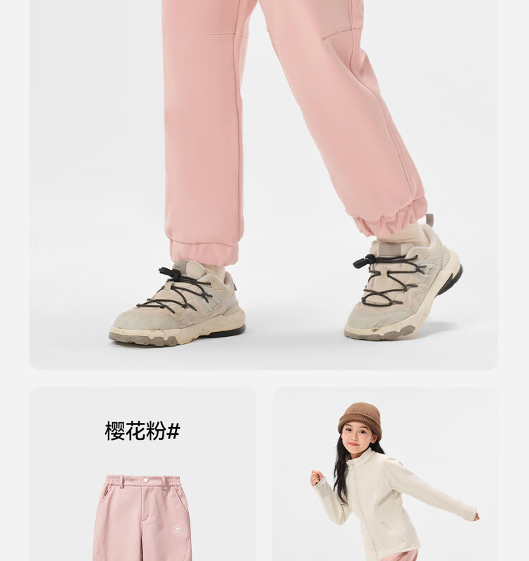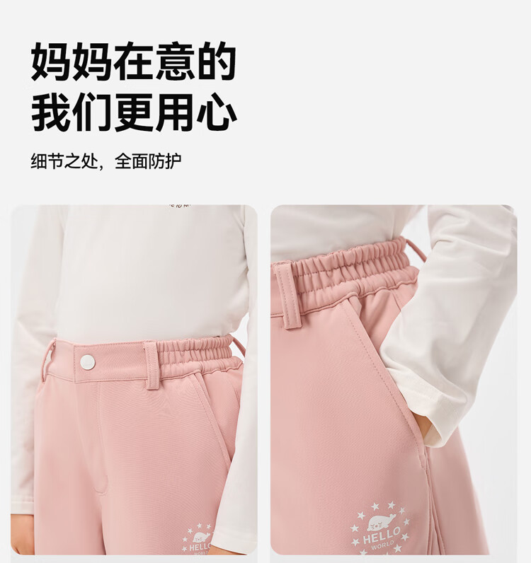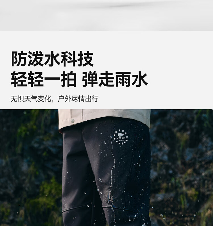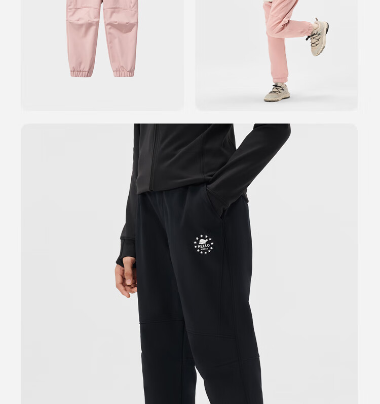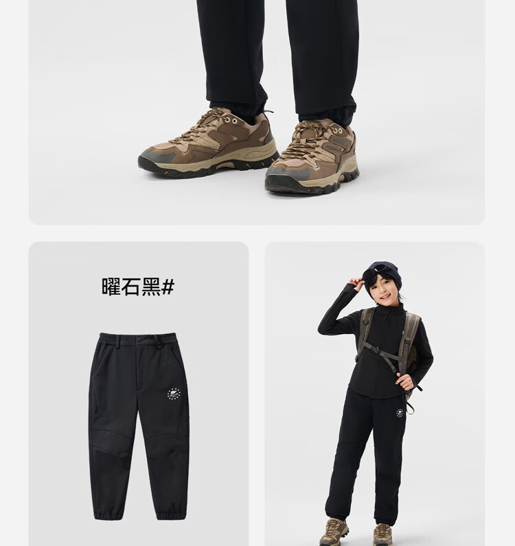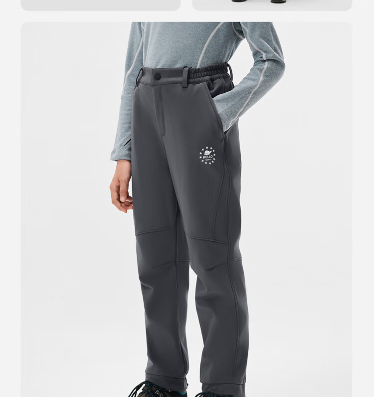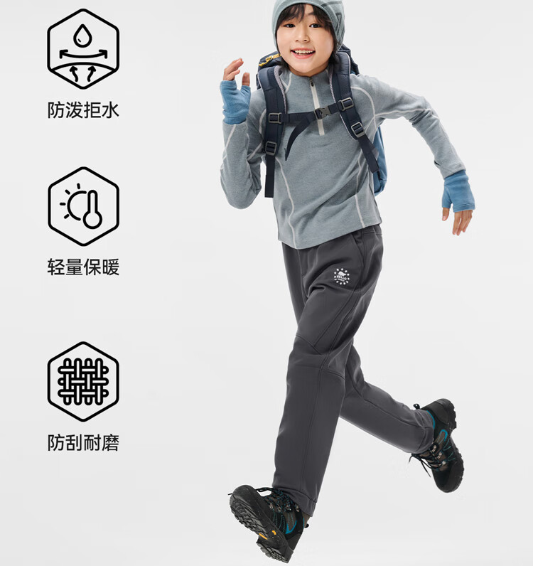 伯希和(Pelliot)户外儿童软壳裤冲锋春季男女保暖登山裤防风裤长裤23930709黑150