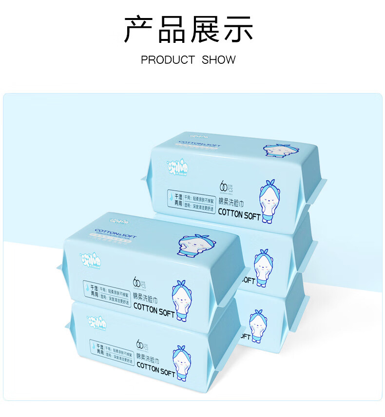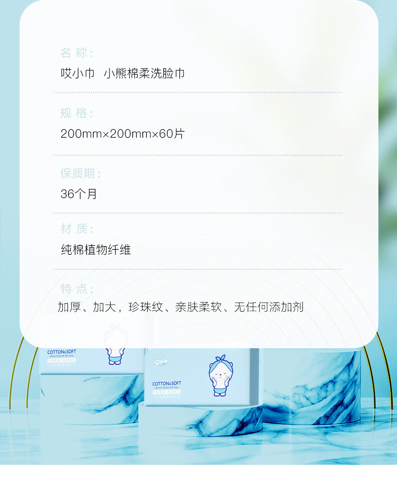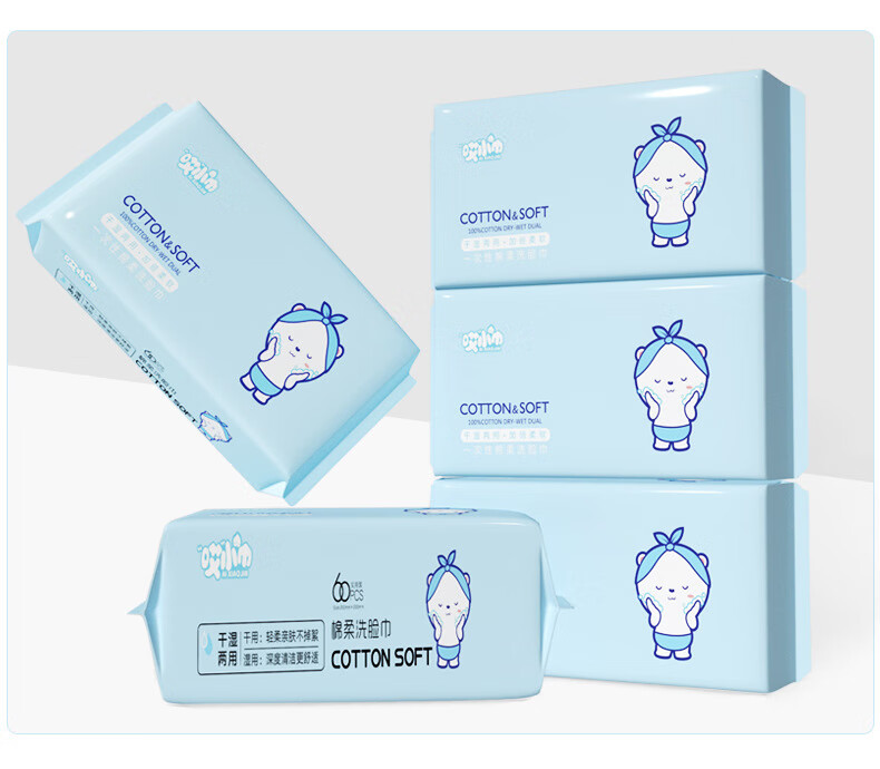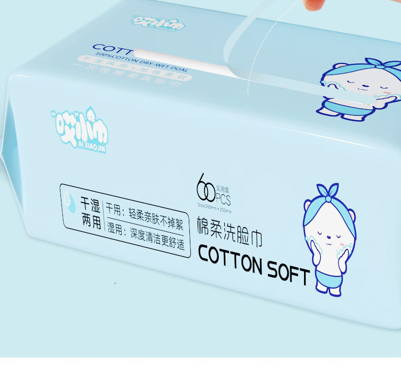 哎小巾大包棉柔巾一次性60抽干湿两用洗脸巾加厚加大洗脸巾洁面巾 加大加厚【小熊款】 60抽 1包 20X20