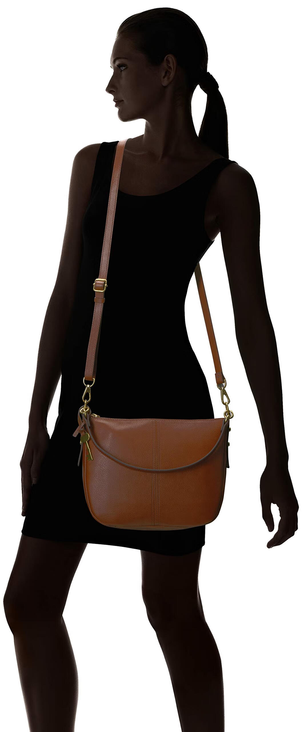 化石(Fossil) 女士休闲皮革斜挎包Jolie 经典简约时尚通勤百搭 棕色
