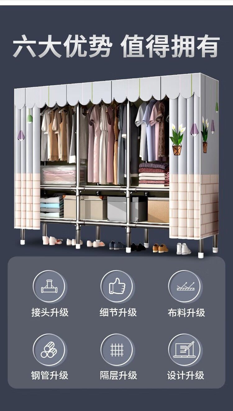倘然之家出租屋衣柜简易组装家用橱柜衣柜出租房分层收纳神器柜子收纳柜 【折鹤兰-长0.85米】
