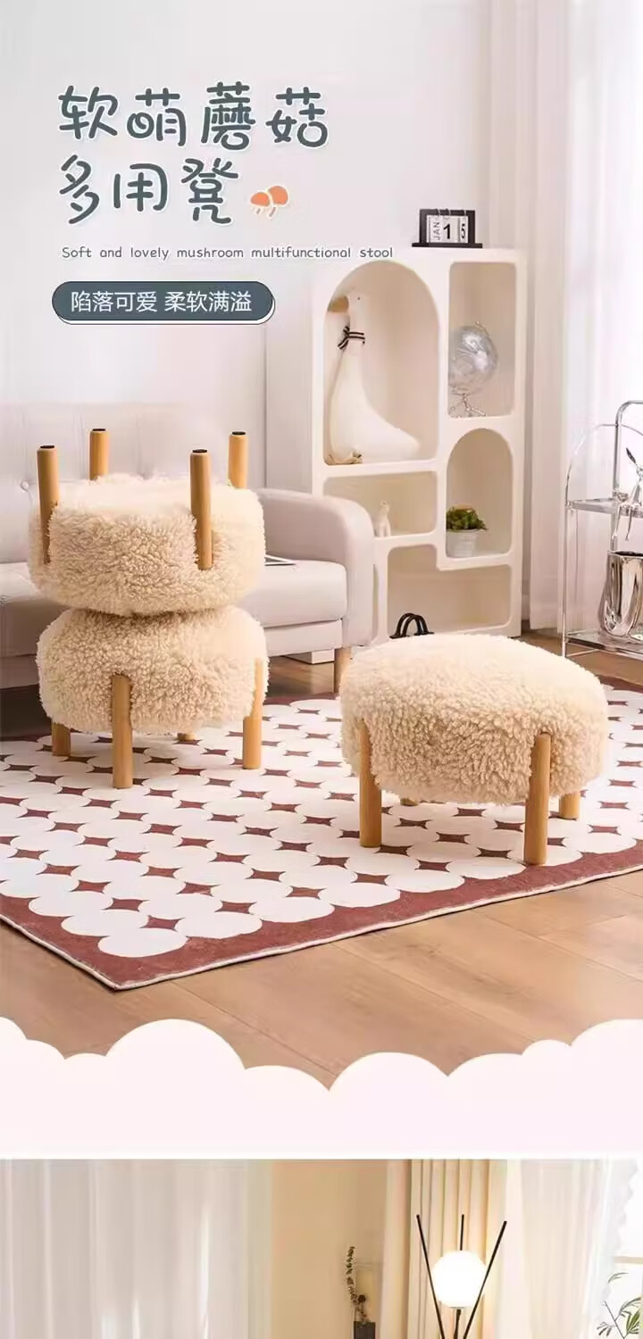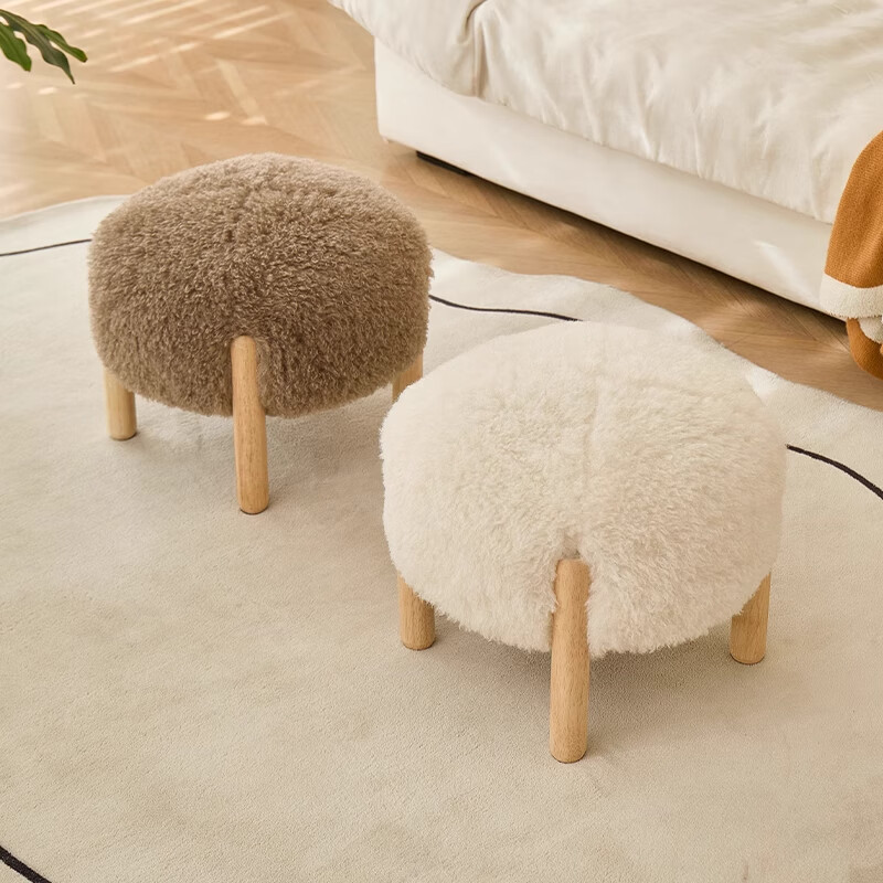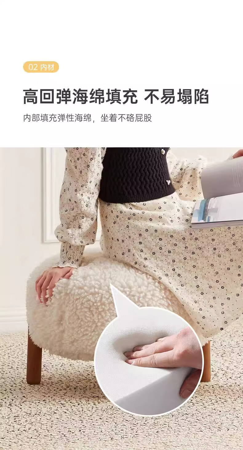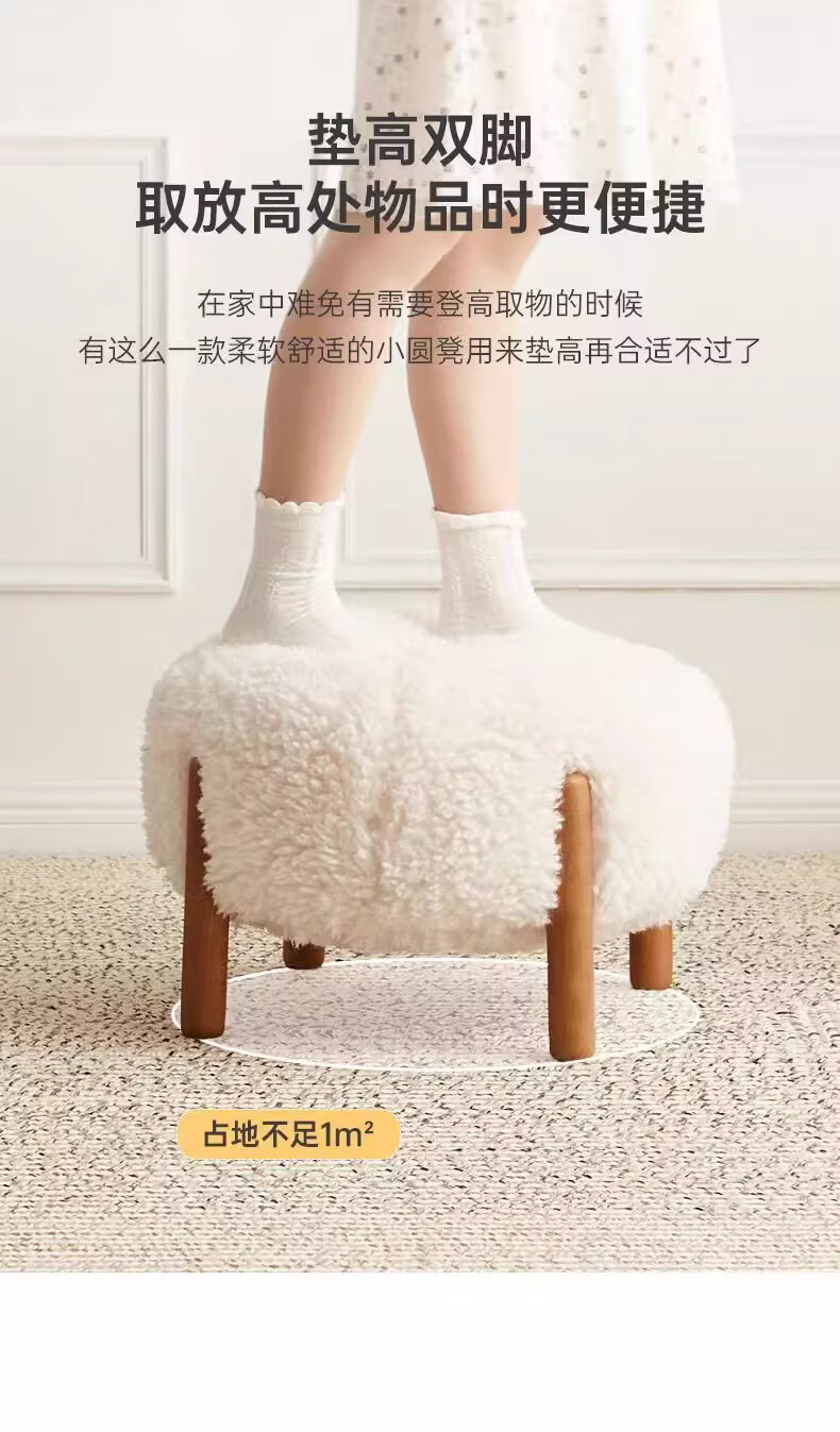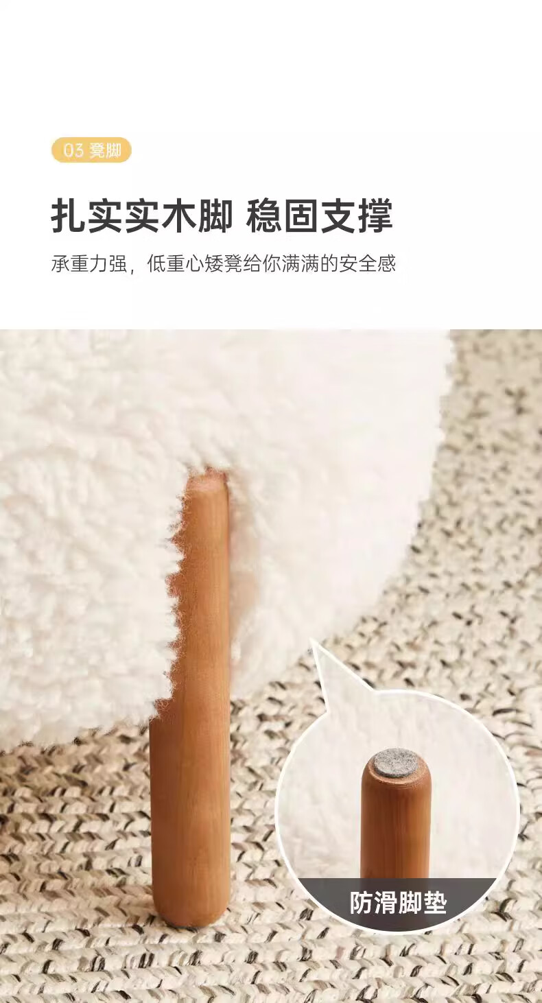 木格格客厅小凳子家用沙发凳脚凳茶几矮凳高级感奶油风坐凳板凳坐墩脚踏 米白色羊羔绒圆凳【可拆洗】