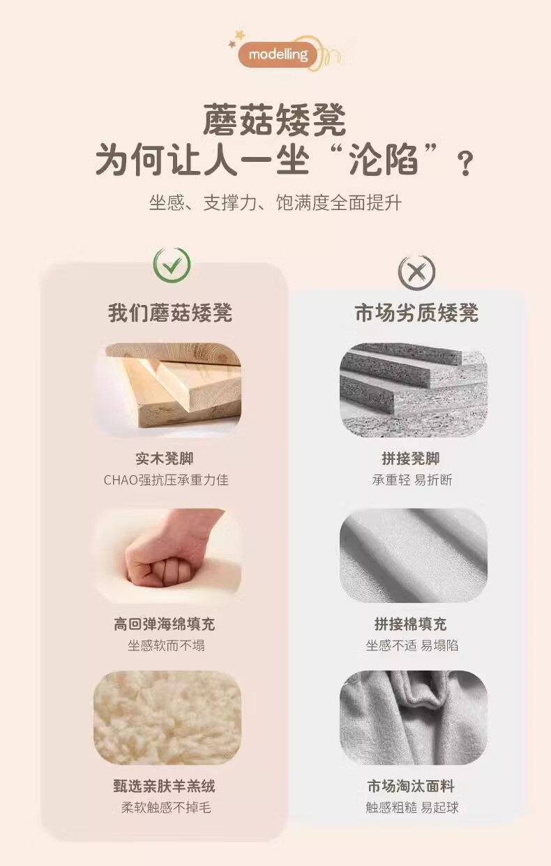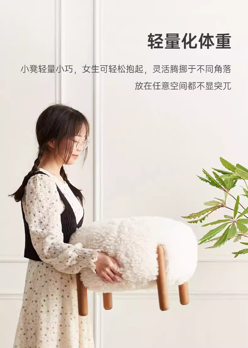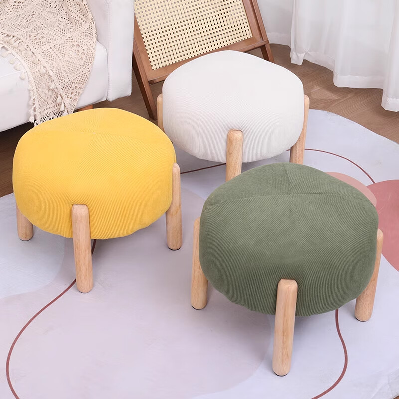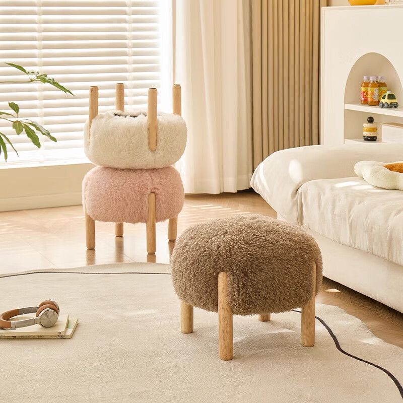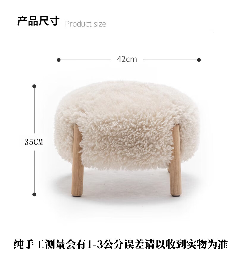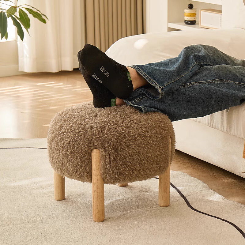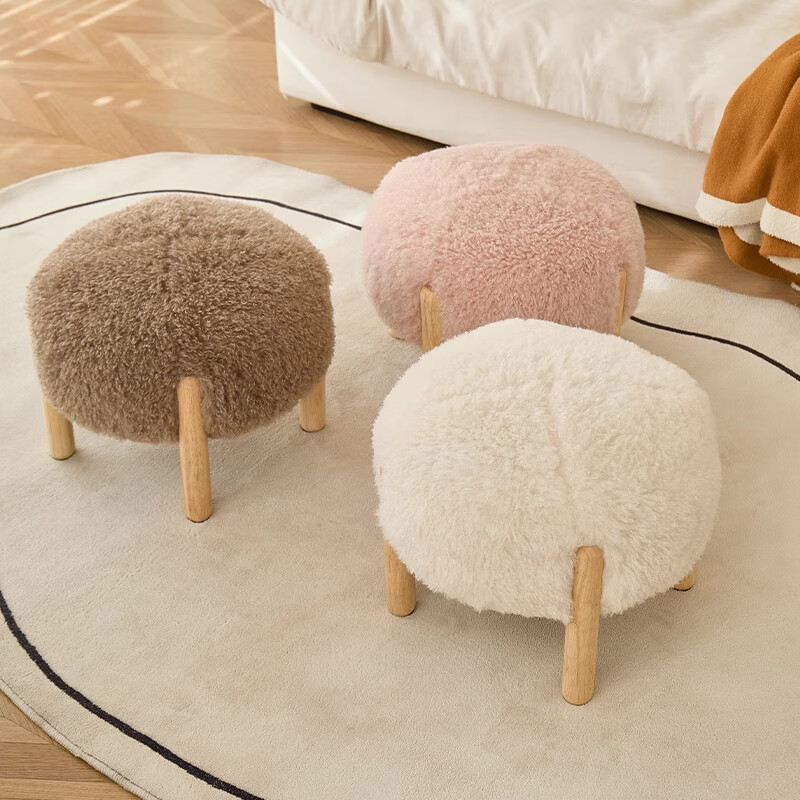 木格格客厅小凳子家用沙发凳脚凳茶几矮凳高级感奶油风坐凳板凳坐墩脚踏 米白色羊羔绒圆凳【可拆洗】