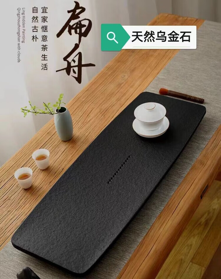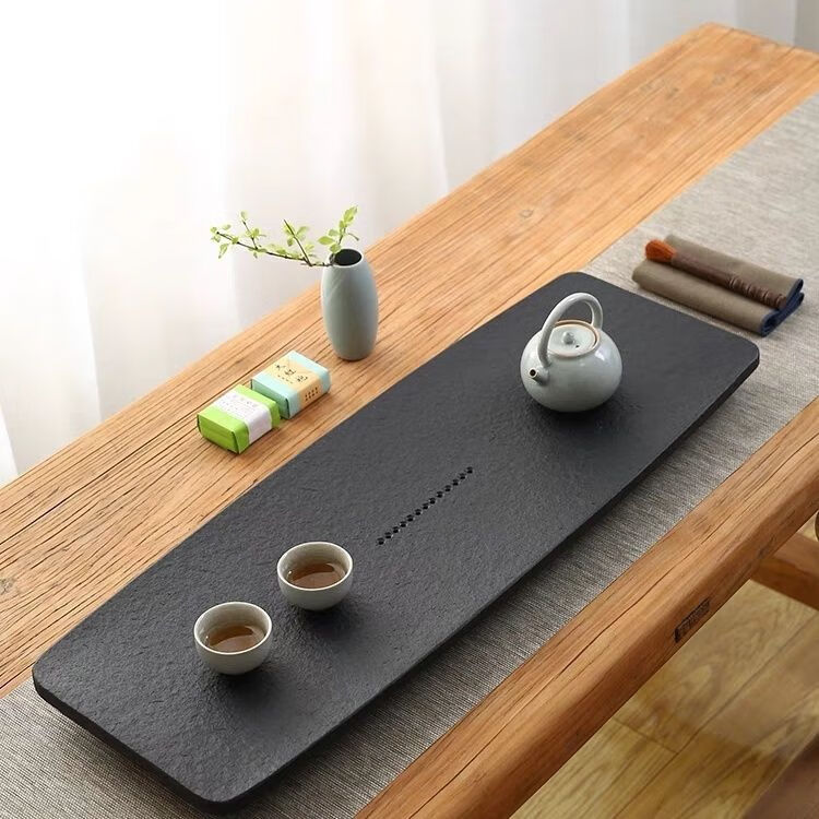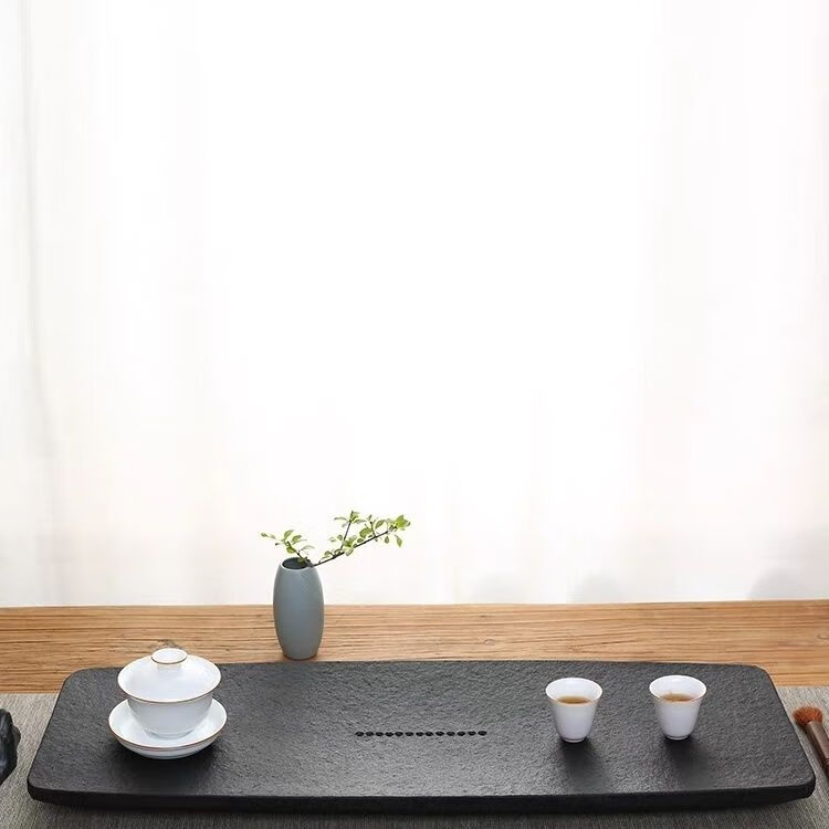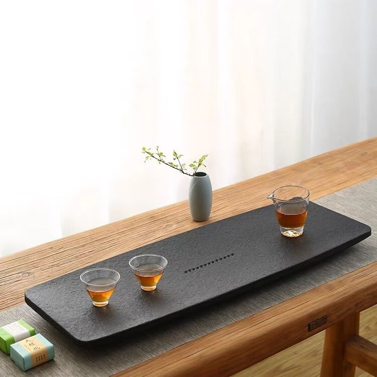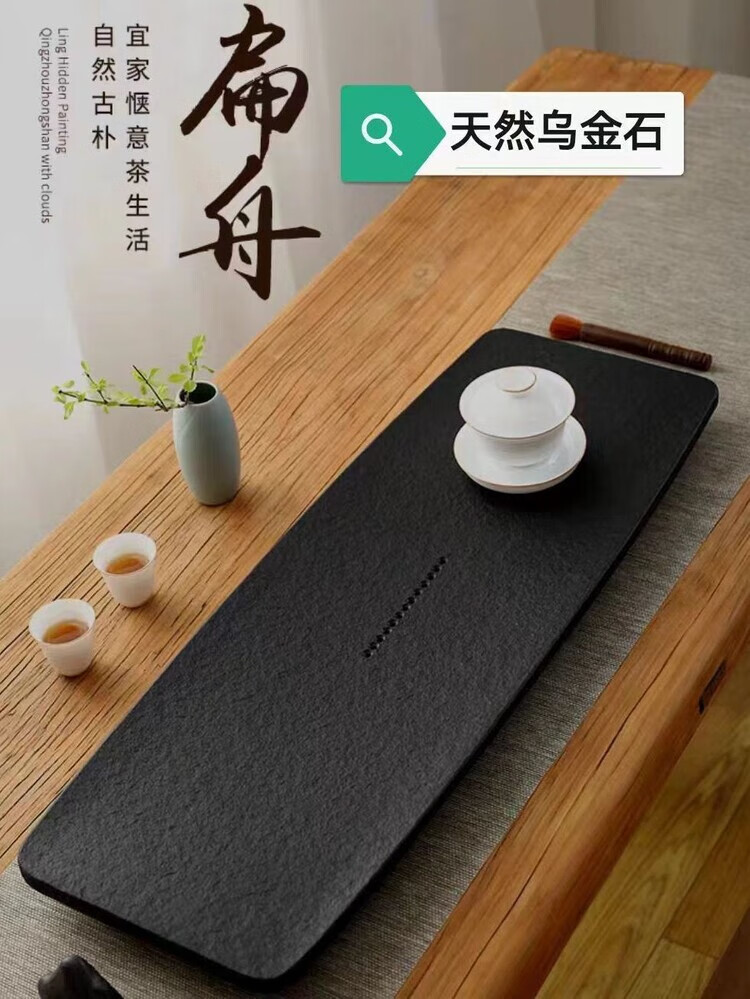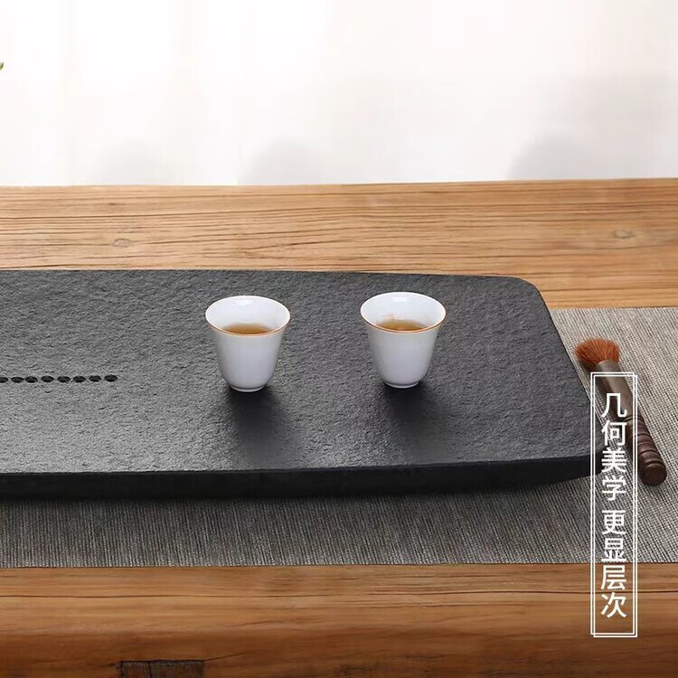 简漾天然金石茶盘家用简约现代石头茶海整块大小茶具套装茶台石材托盘 扁舟火烧打蜡 50CM*25CM*3CM