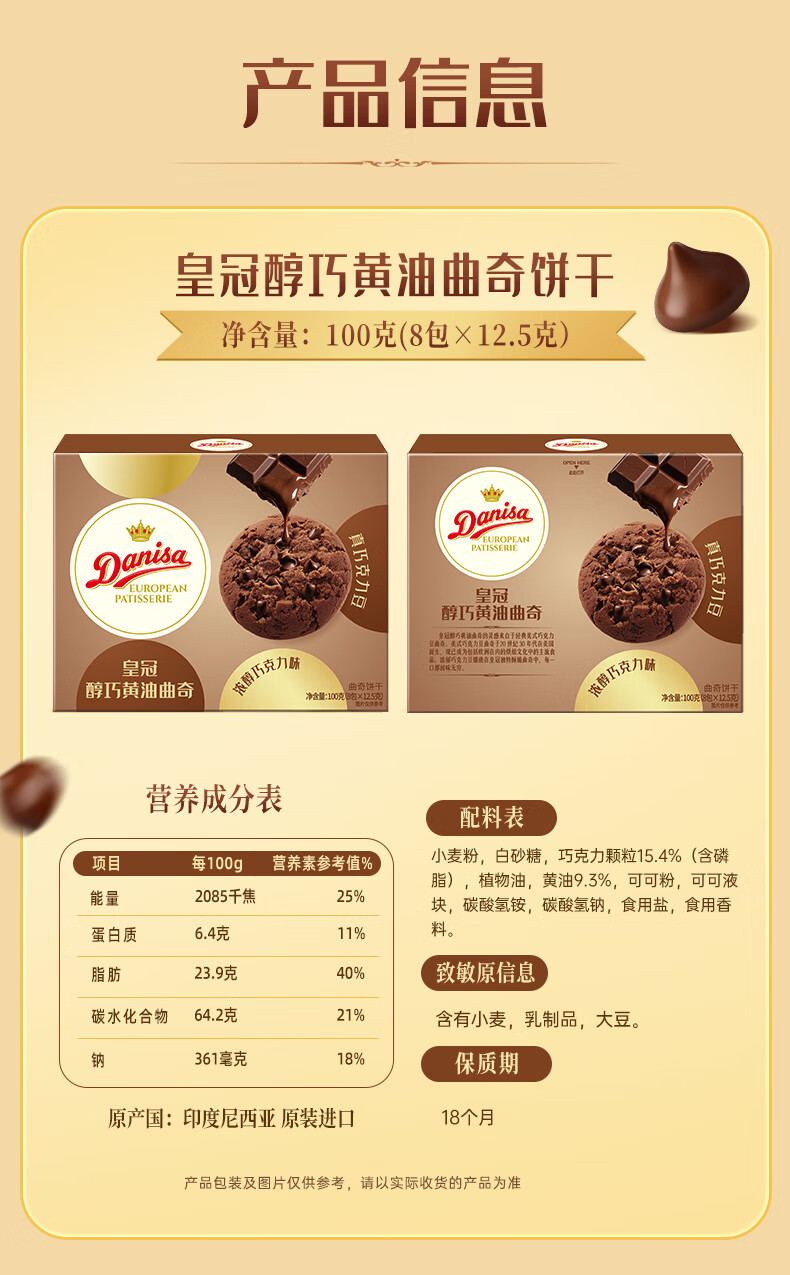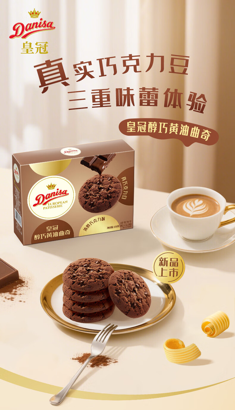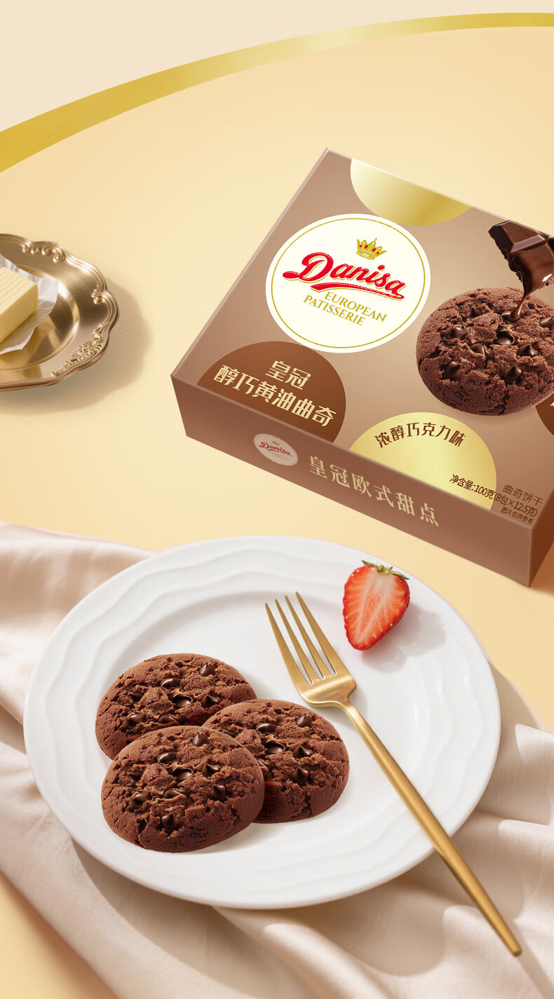 皇冠醇巧黄油曲奇饼干100g含真可可零食送礼团购喜饼诞生礼 新旧交替