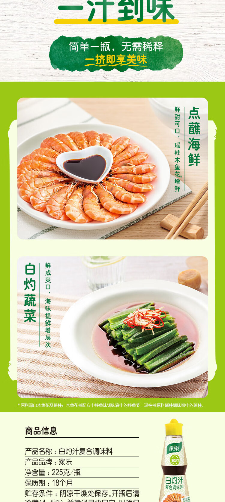 家乐调味汁系列 白灼汁 225g 一汁成菜白灼菜心0脂肪减脂健身调味品