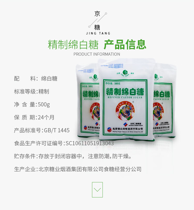 JING TANG京糖白糖 精制绵白糖500g【精制】中华老字号 烘焙冲饮烹饪冲调