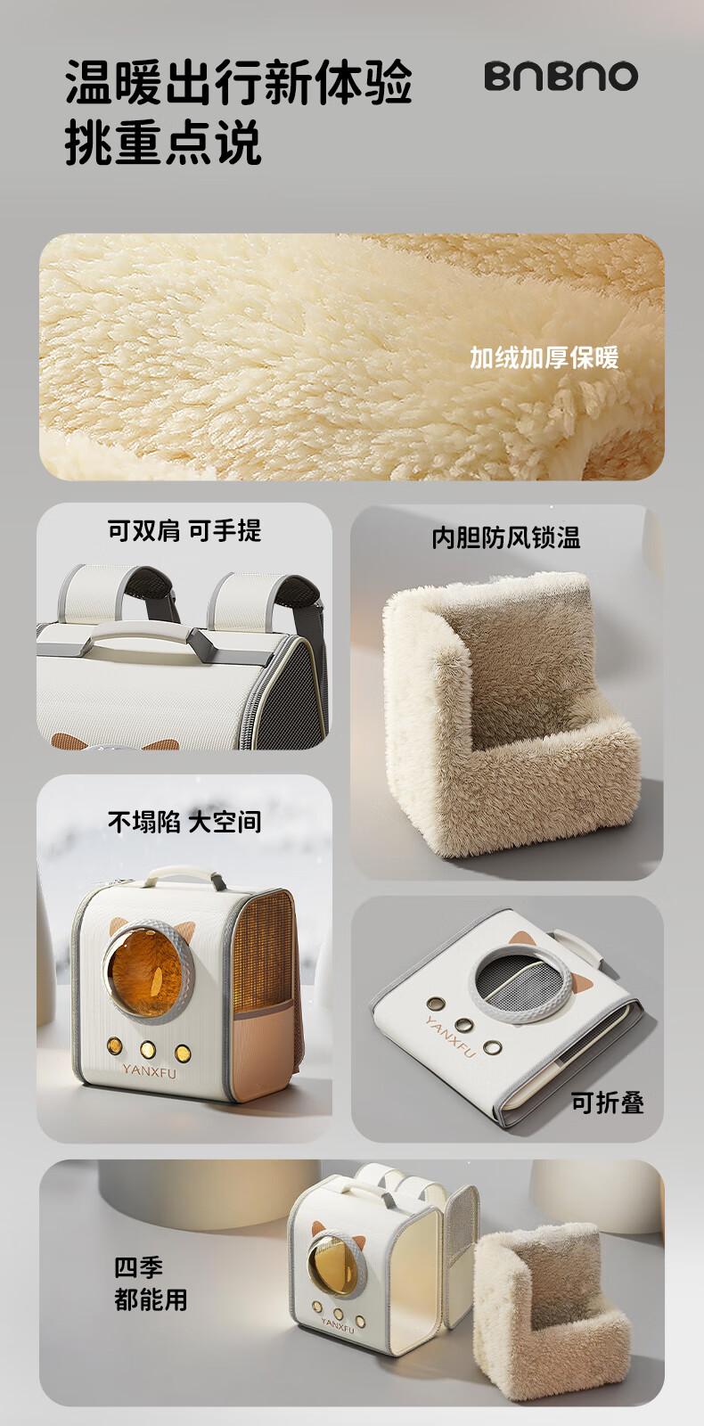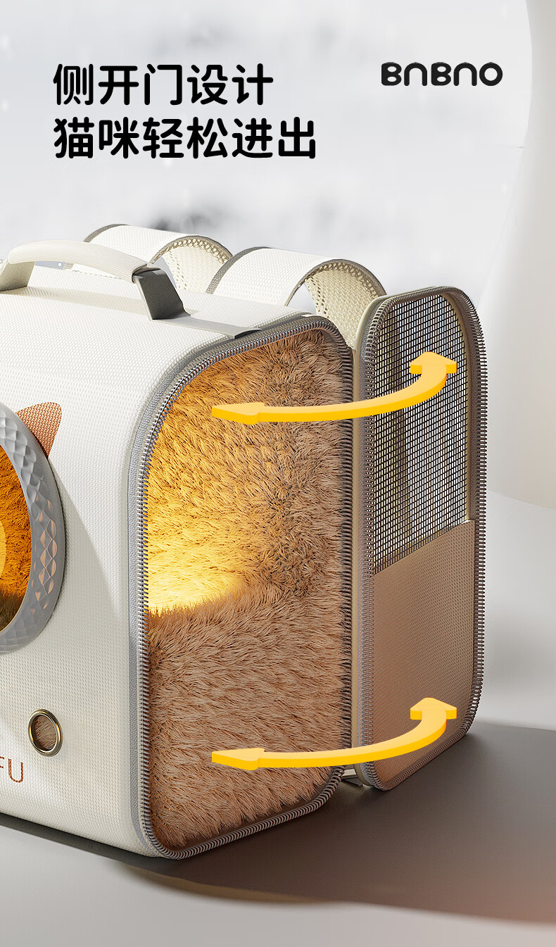 BNBNO冬季保暖猫包双肩外出便携猫咪狗冬天书包大容量高颜值轻便款宠物