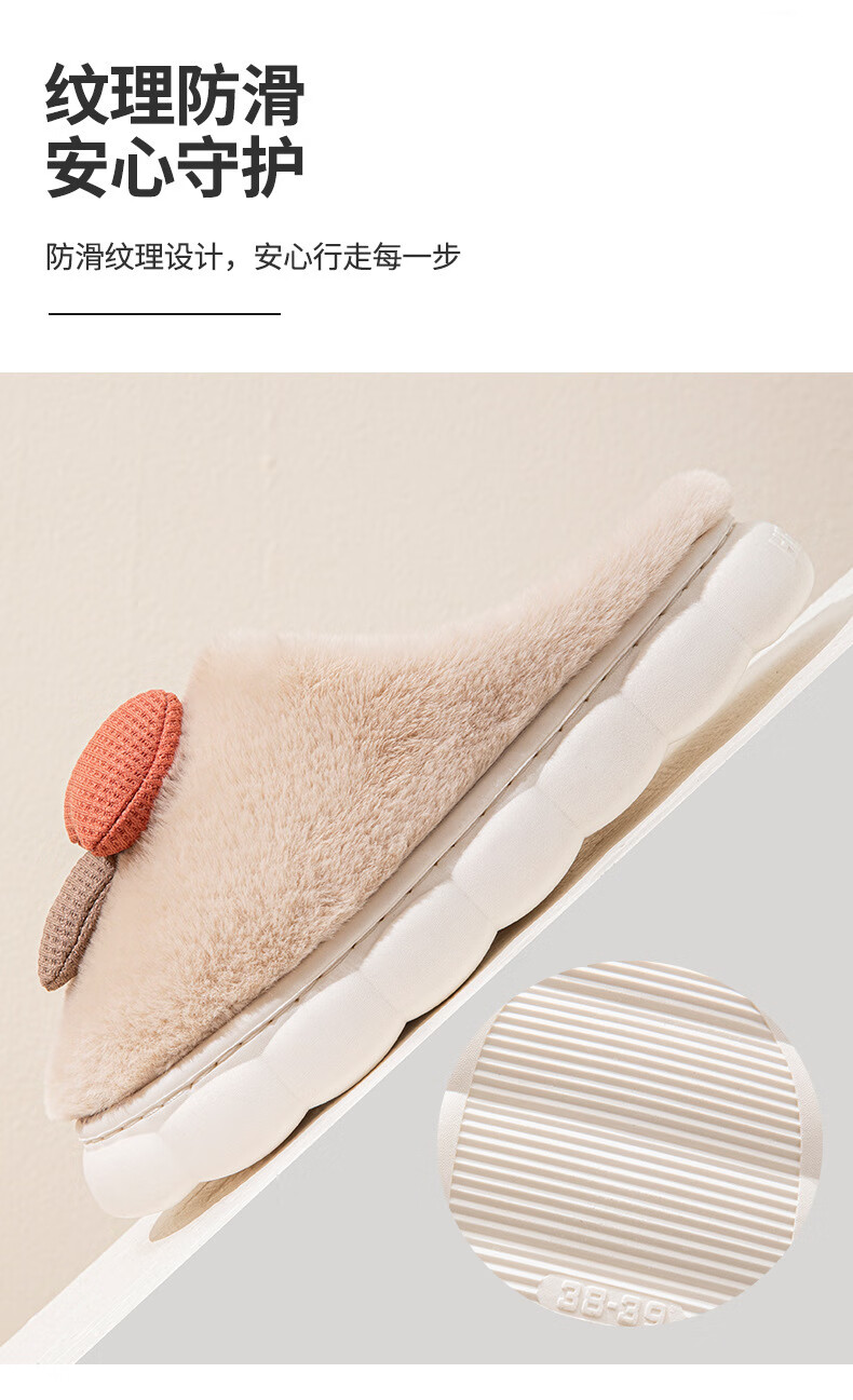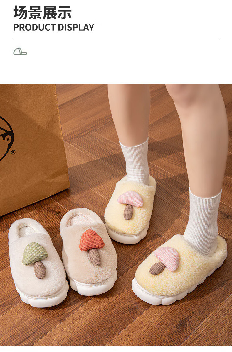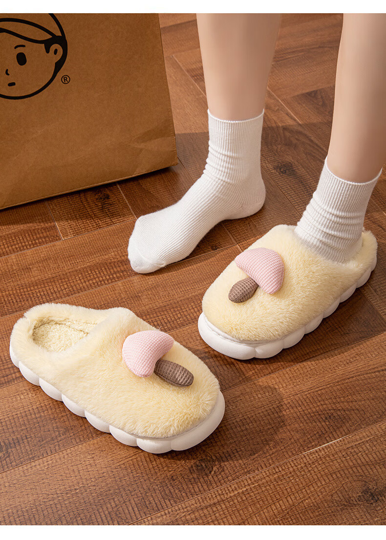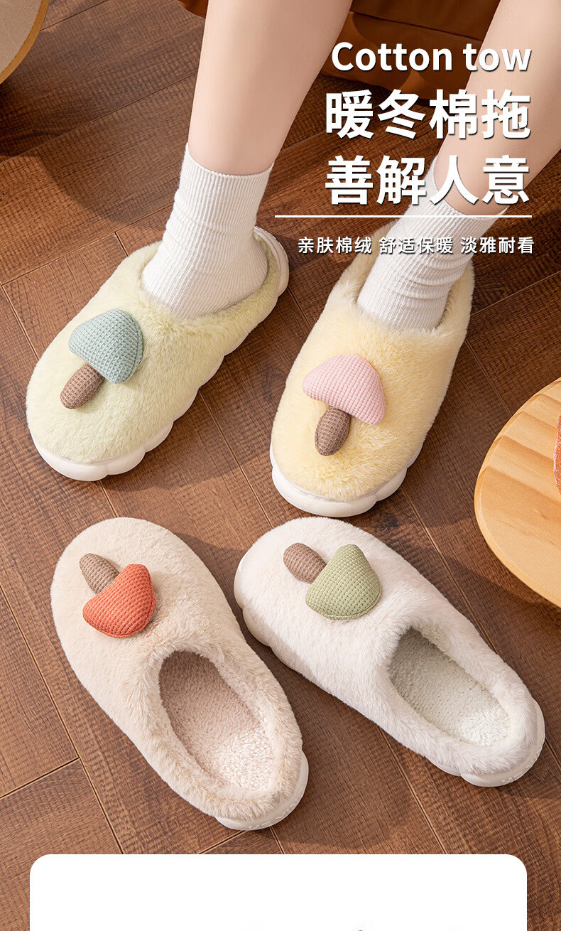 2025棉拖鞋女冬款蘑菇室内家居家用保暖毛绒拖鞋厚底棉鞋棉拖鞋女 蘑菇头棉拖-白色 38-39 适合37-38