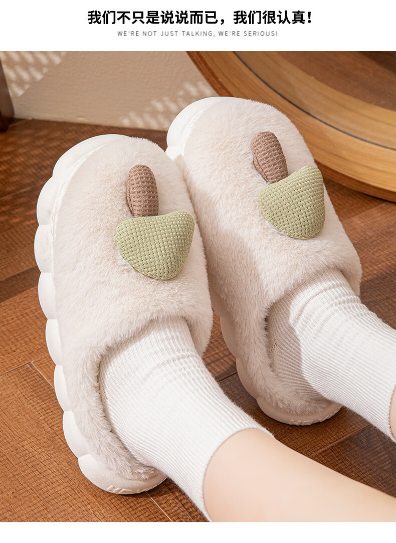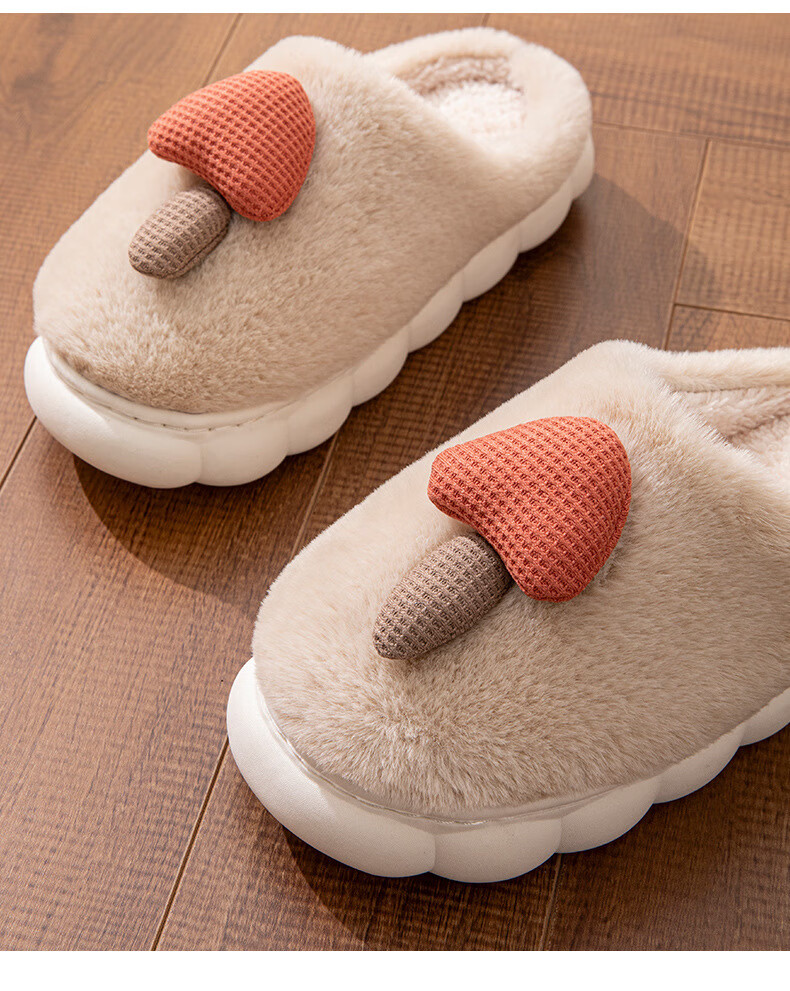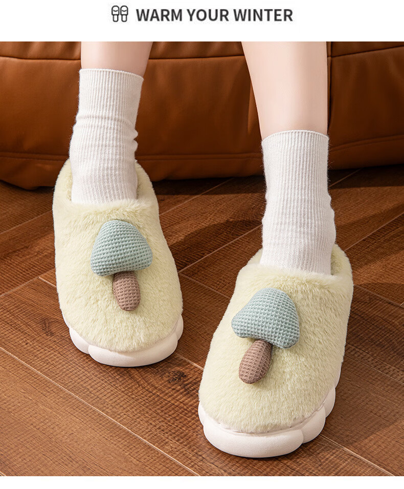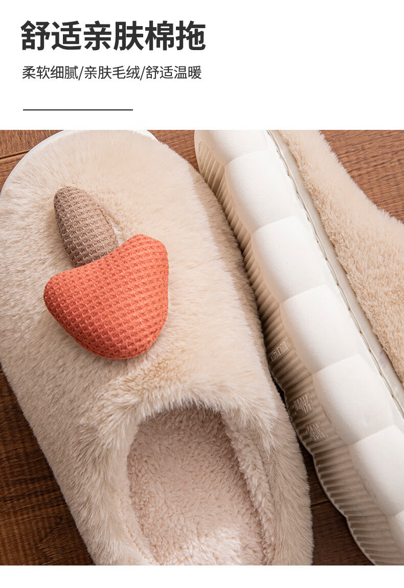 2025棉拖鞋女冬款蘑菇室内家居家用保暖毛绒拖鞋厚底棉鞋棉拖鞋女 蘑菇头棉拖-白色 38-39 适合37-38