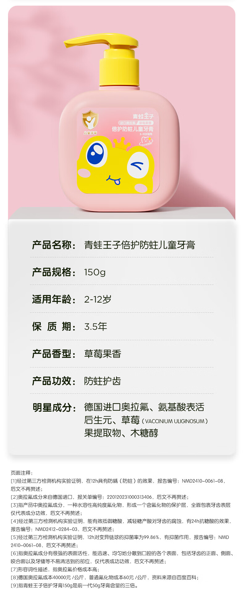 青蛙王子儿童牙膏 奥拉氟牙膏 3-6-12岁儿童宝宝专效防蛀牙膏 150g