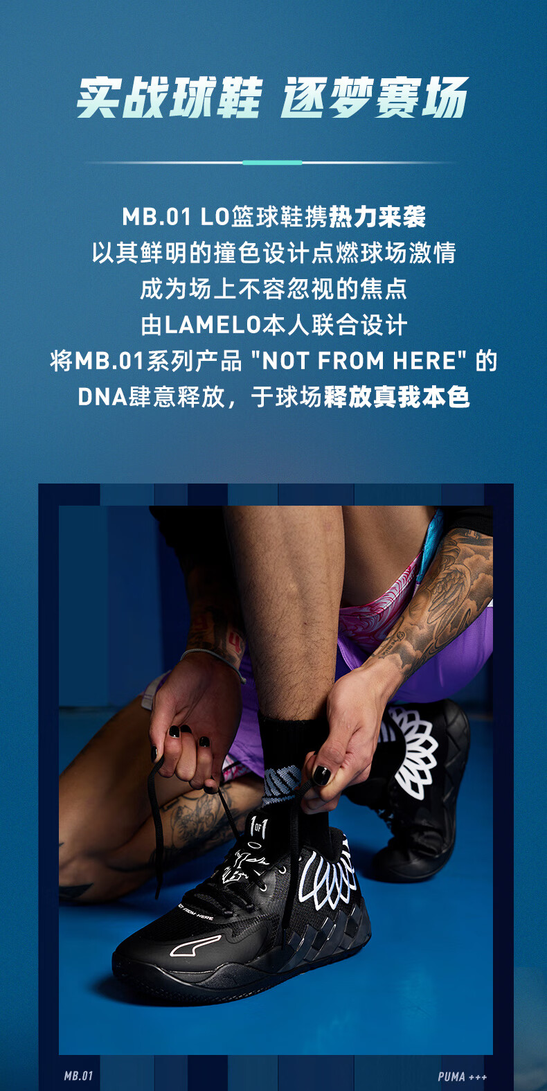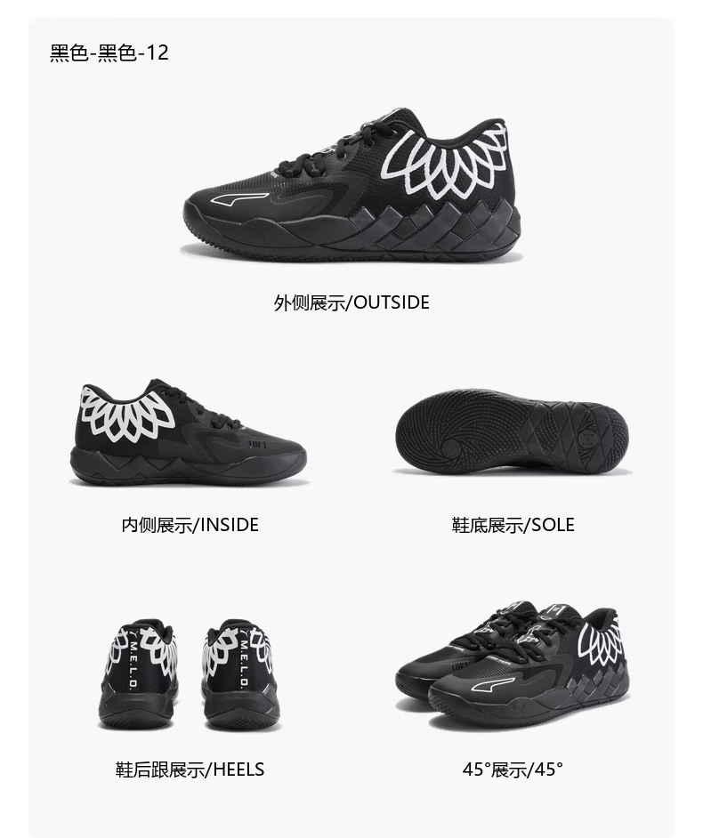彪马(PUMA)拉梅洛·鲍尔联合设计缓震篮球鞋MB.01男子运动鞋 376941 黑色-黑色-12 43