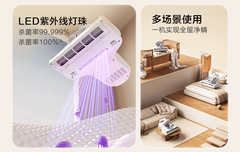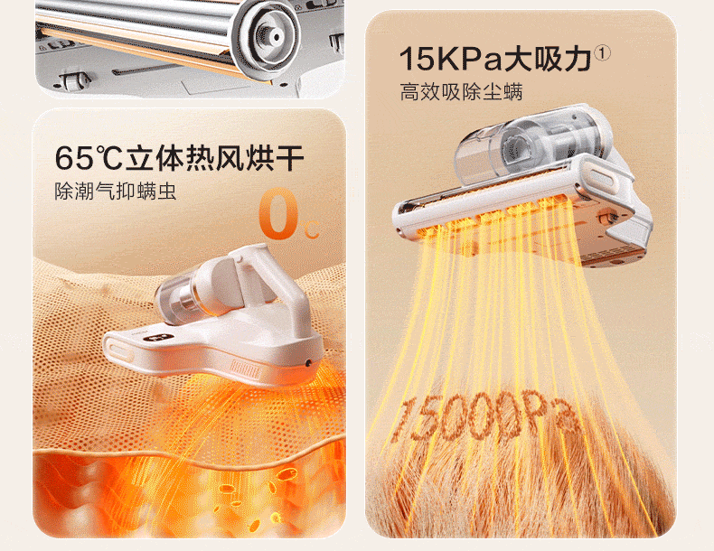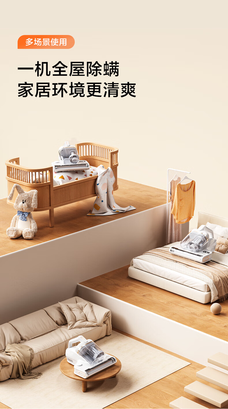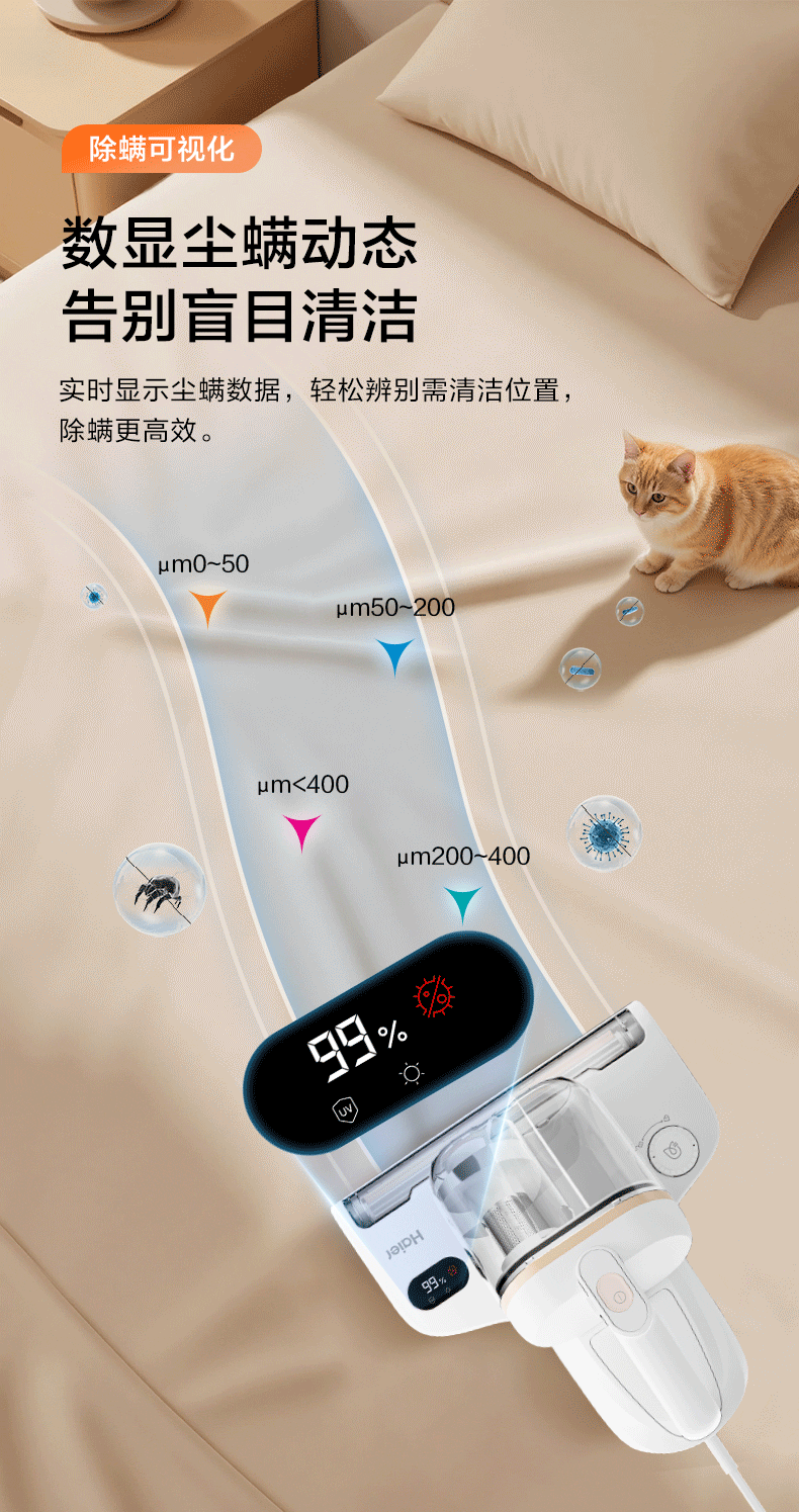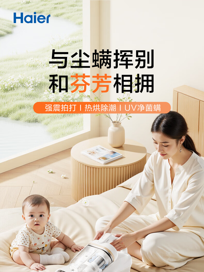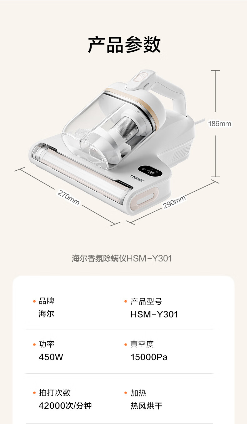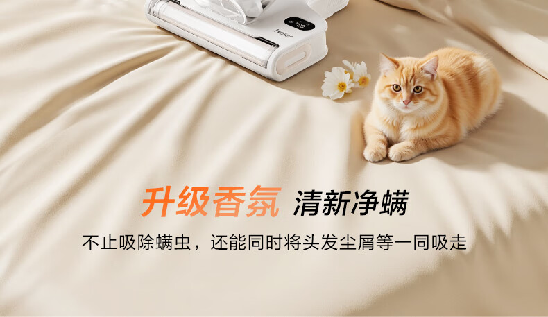 海尔(Haier)白巧pro除螨仪床上高温杀菌床上吸尘器吸尘除螨大吸力双杯香氛去螨虫国家补贴床宝除螨机HSM-Y301