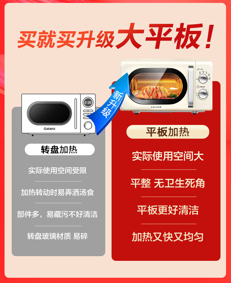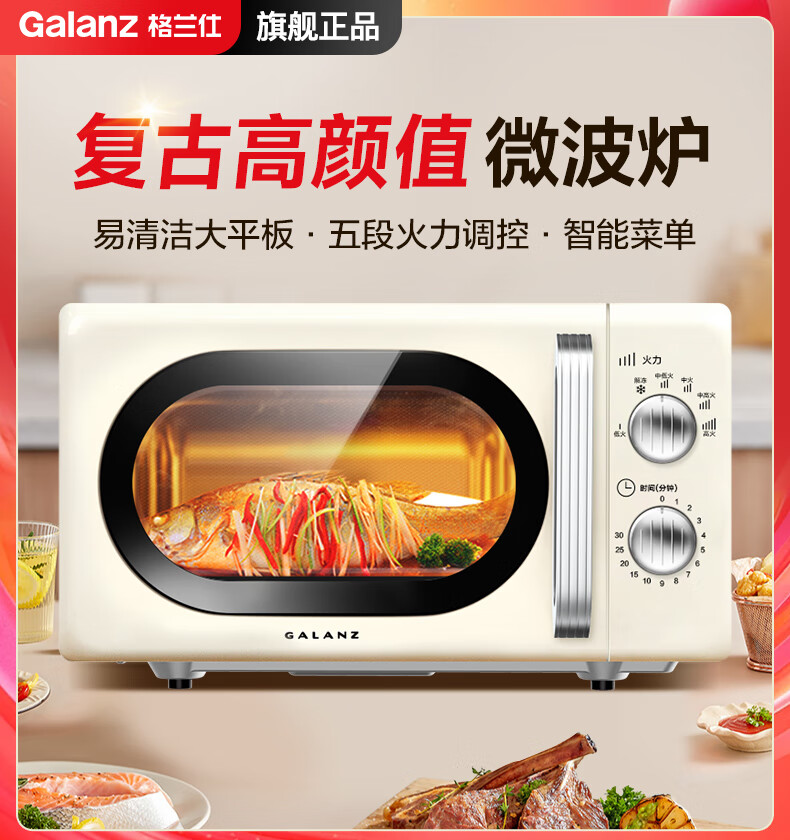格兰仕(Galanz)家用微波炉复古奶油风高颜值20L智能多功能一体机平板易清洁速热杀菌旋钮式小型KJ 【家庭优选】