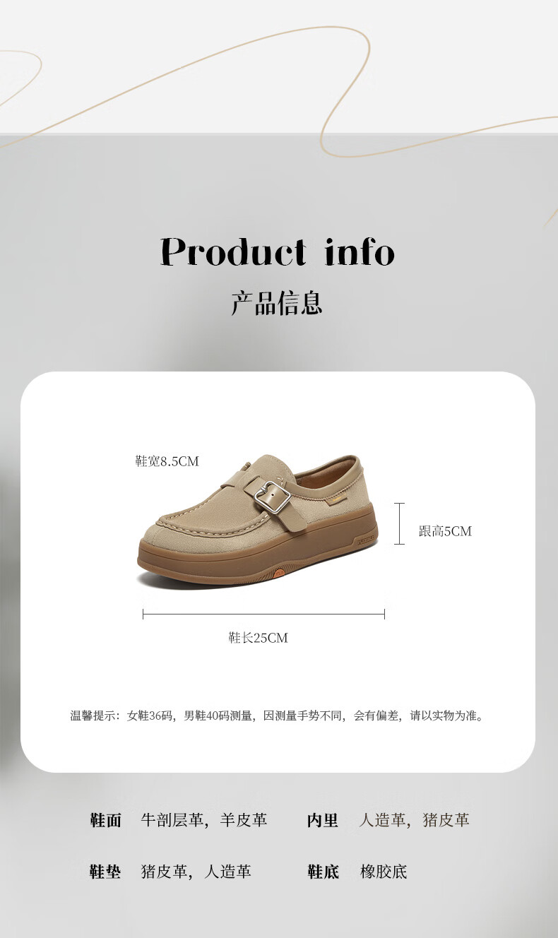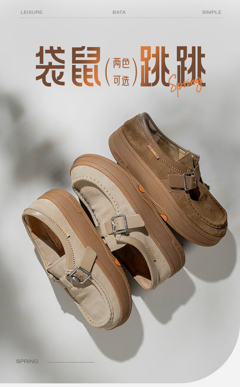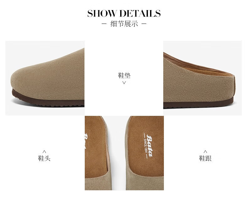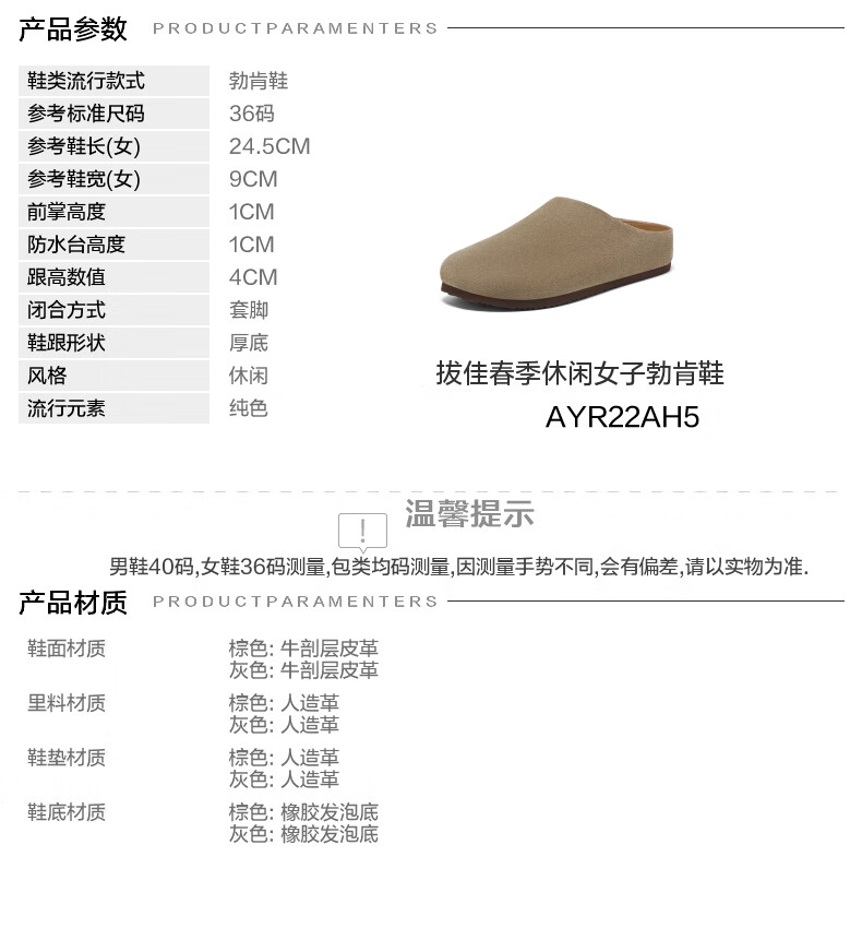 拔佳勃肯鞋女2025春英伦牛剖皮舒适一脚蹬AYR22AH5 灰色 38