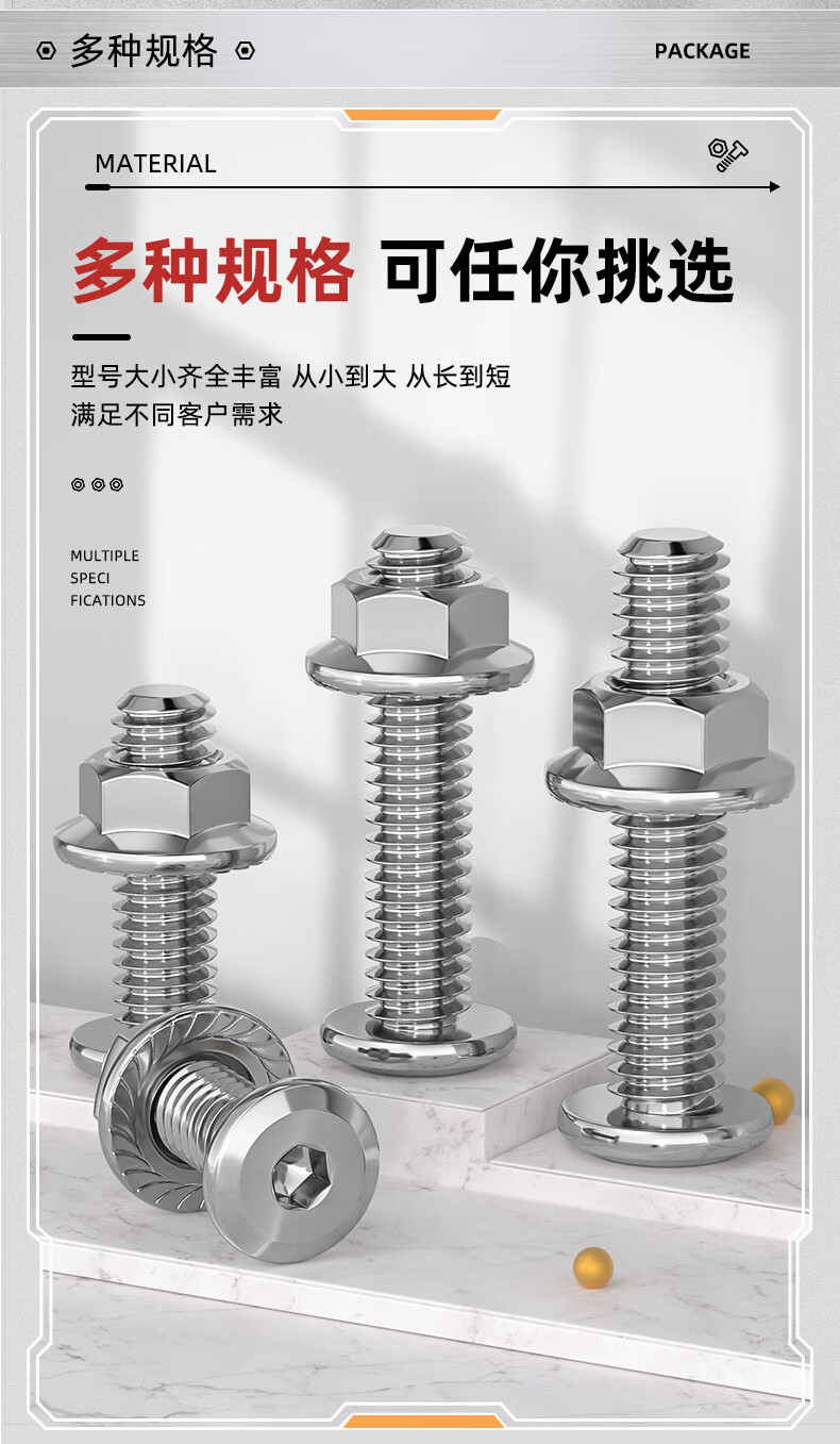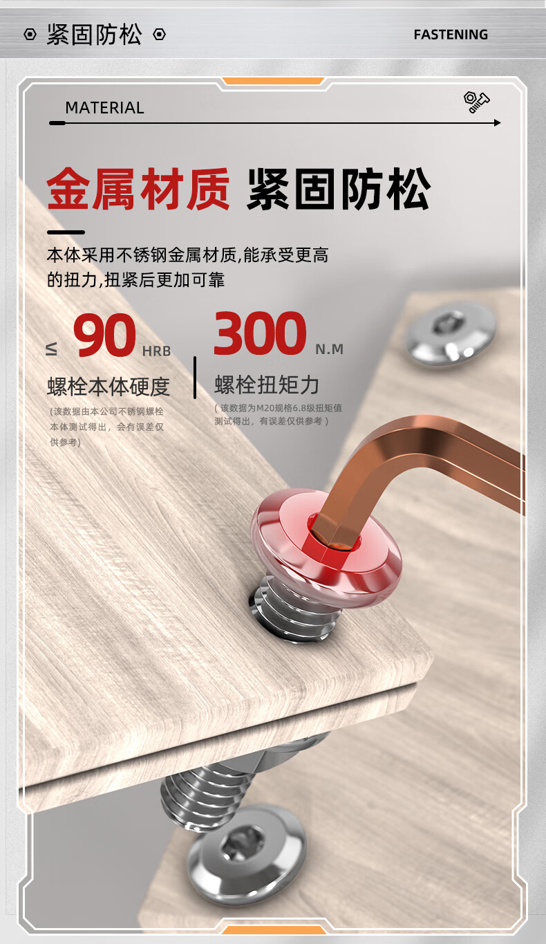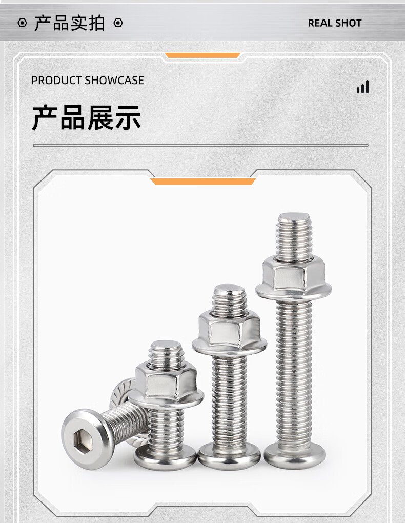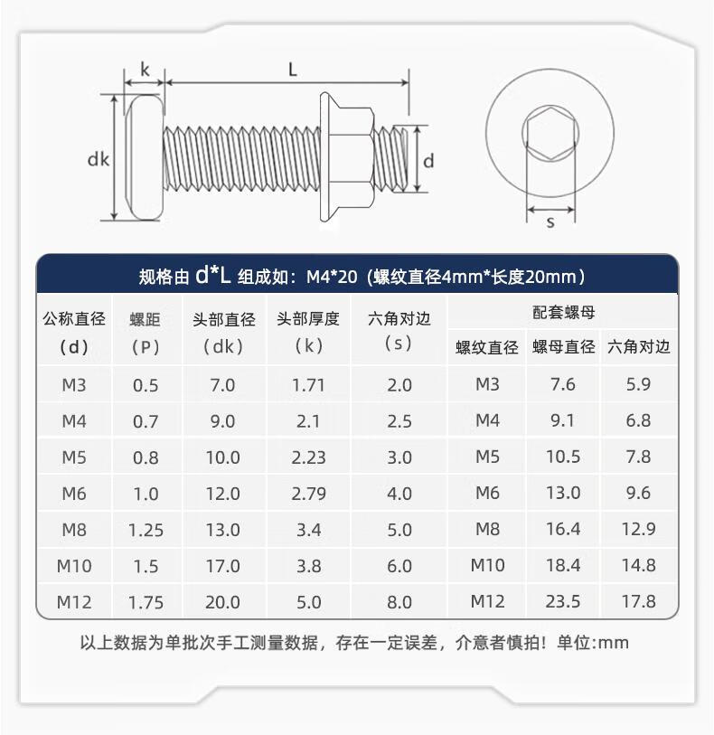 天卓五金304不锈钢平头倒边内六角螺丝螺母大全法兰螺丝帽斜边螺栓家具圆 M8*25【大头径16】(10套)