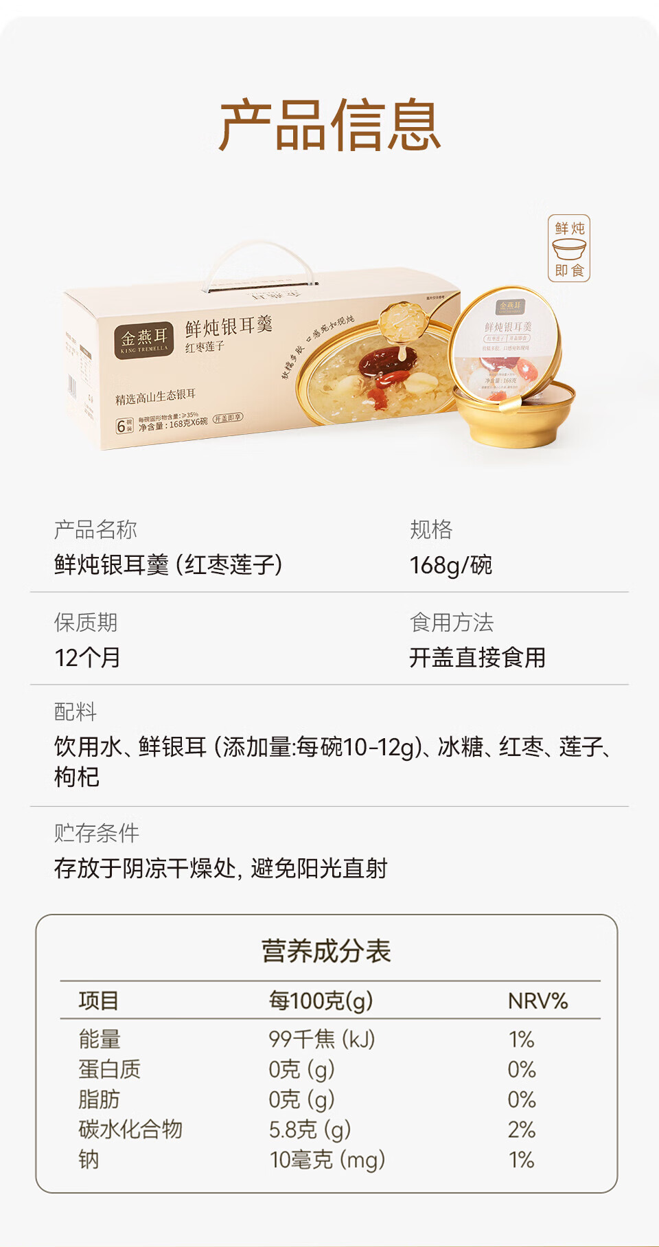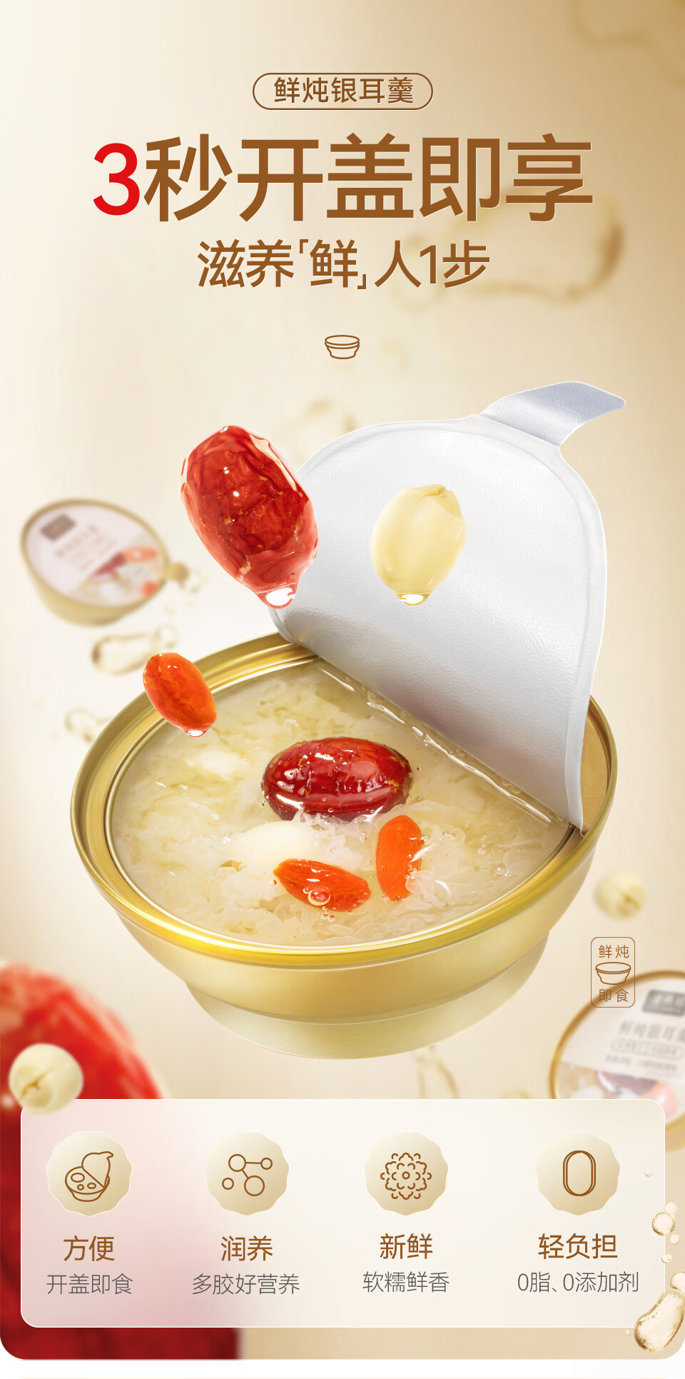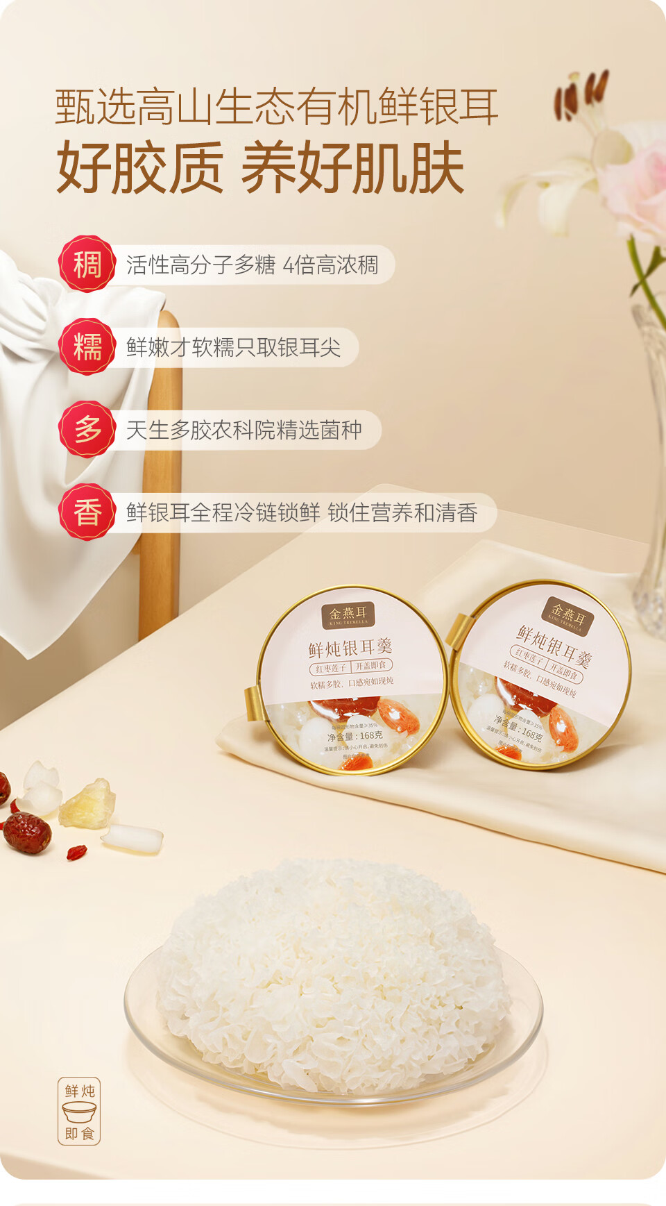 金燕耳有机银耳鲜炖银耳羹干货礼盒即食早餐 红枣莲子鲜炖银耳羹