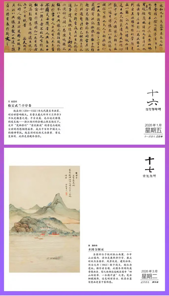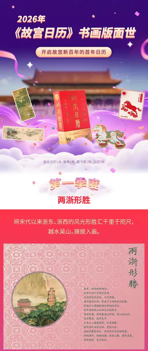 2026年新版 【限量加赠徽章+藏书票+书签】故宫日历 书画版 赠:天马凌云徽章+昭陵六骏图藏书票+孤山图书签+王士禄行乐图书签 佳阅FX 2026年故宫日历 【4重礼】