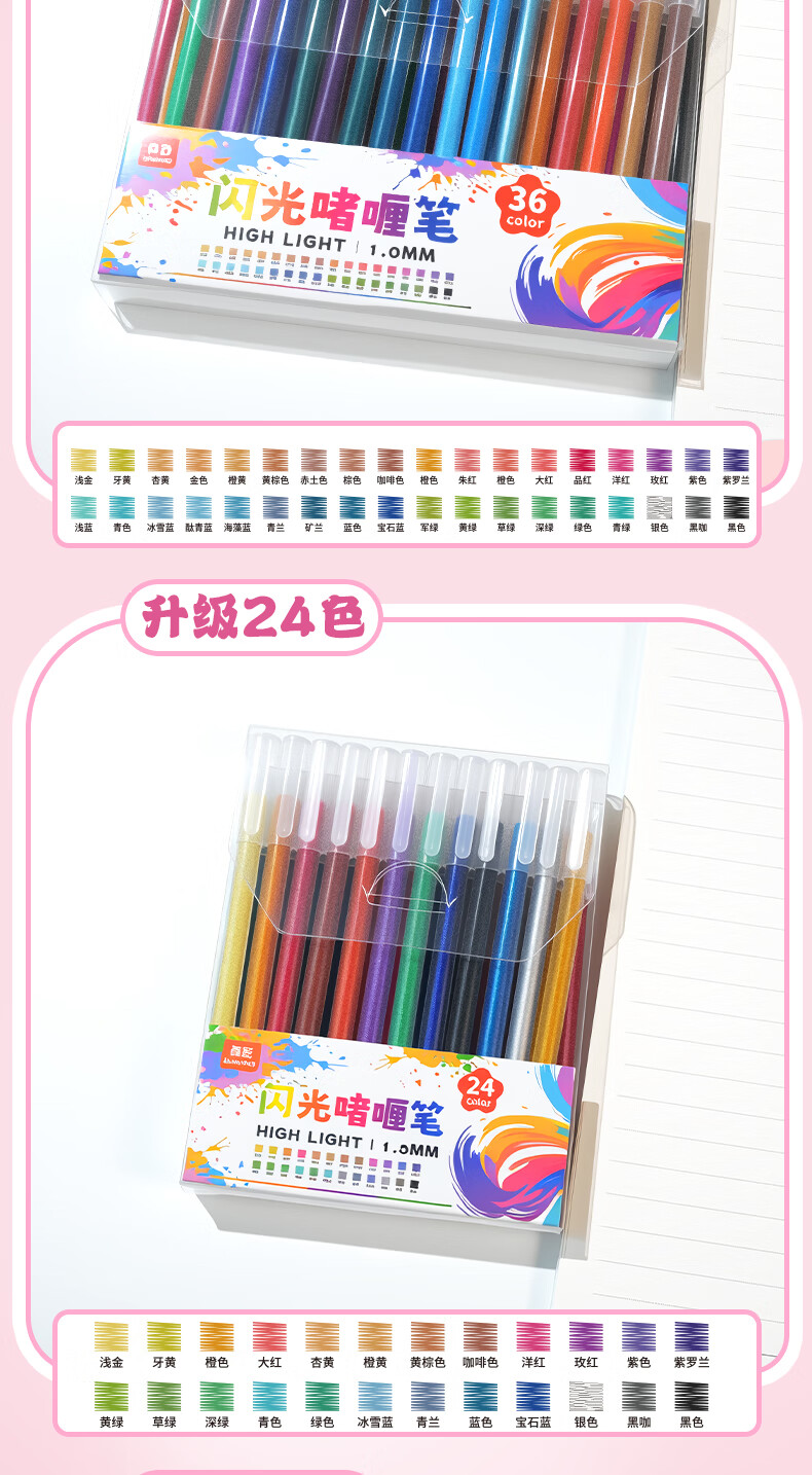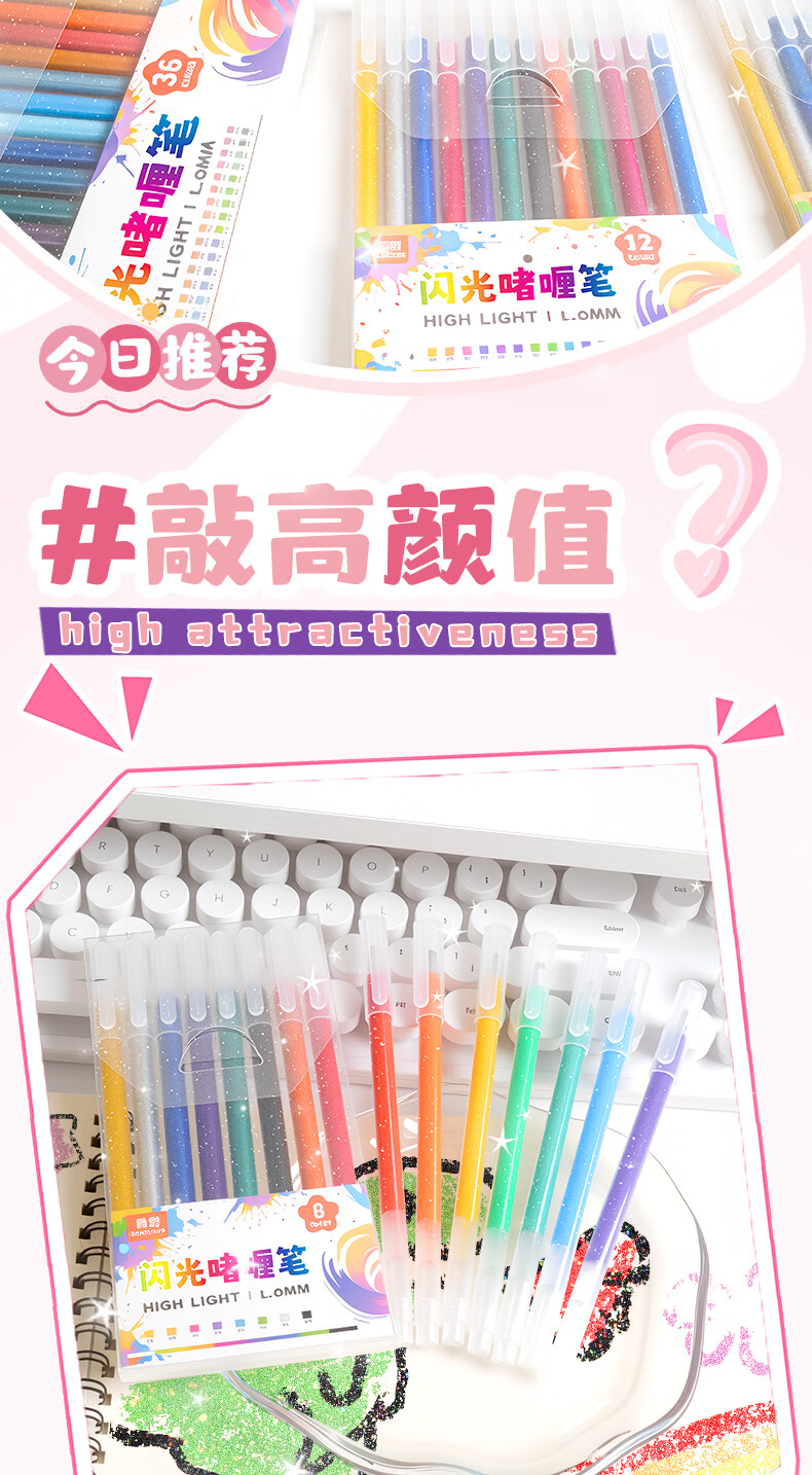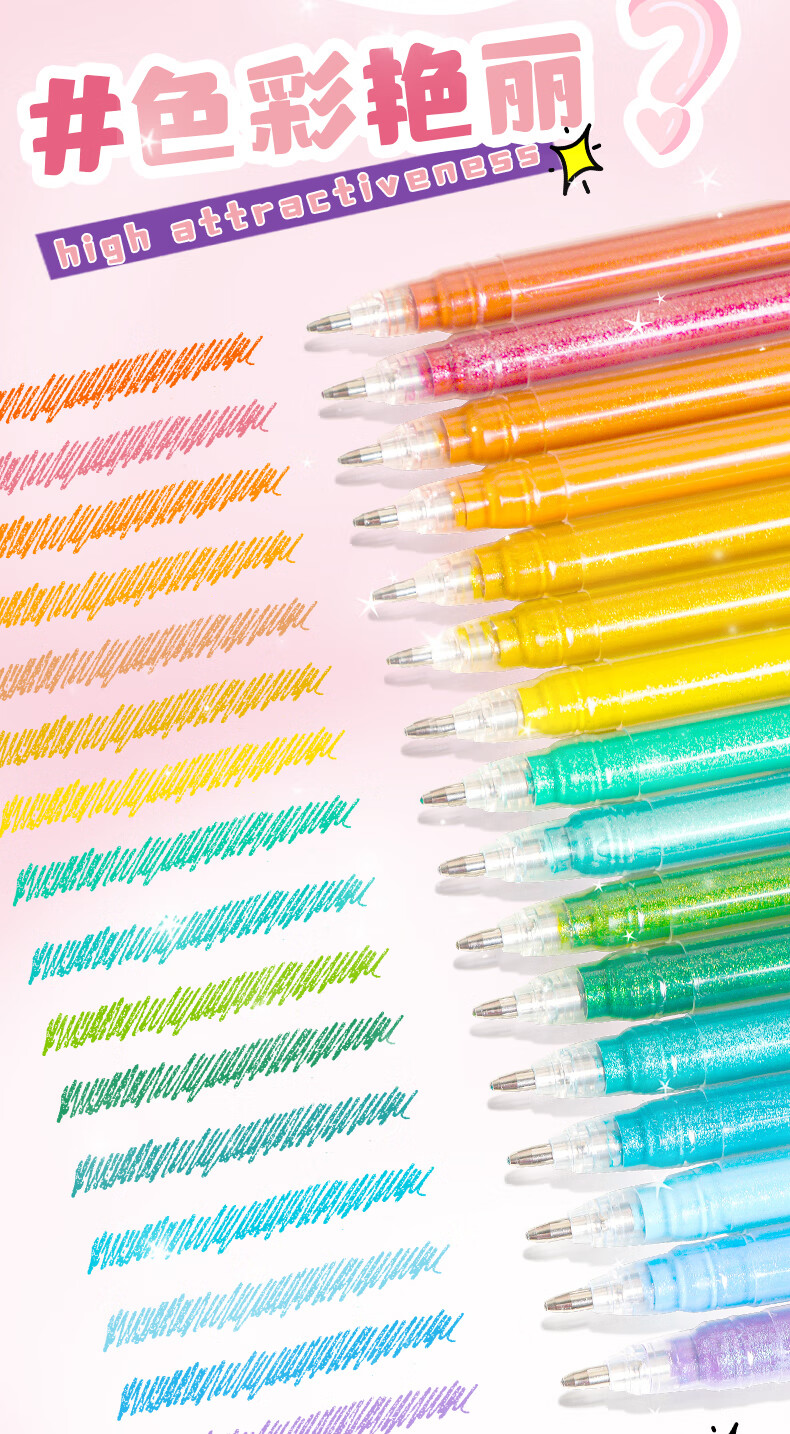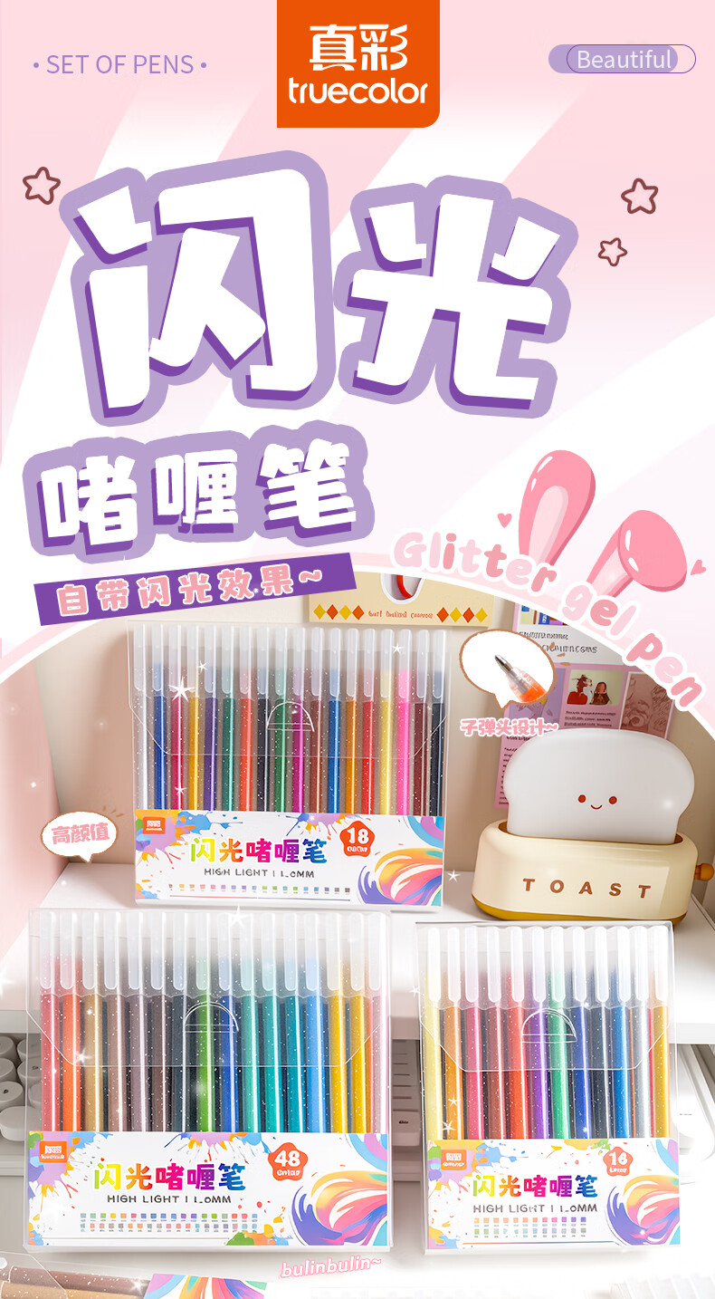 真彩(TRUECOLOR)真彩彩色闪光啫喱笔儿童亮晶晶珠光笔荧光标记笔流沙银光啫喱发光水彩笔手帐专用小学生闪粉高光笔 大容量【24色】闪光啫喱笔