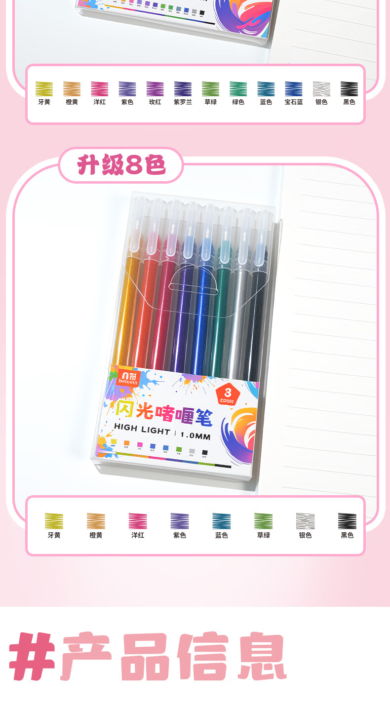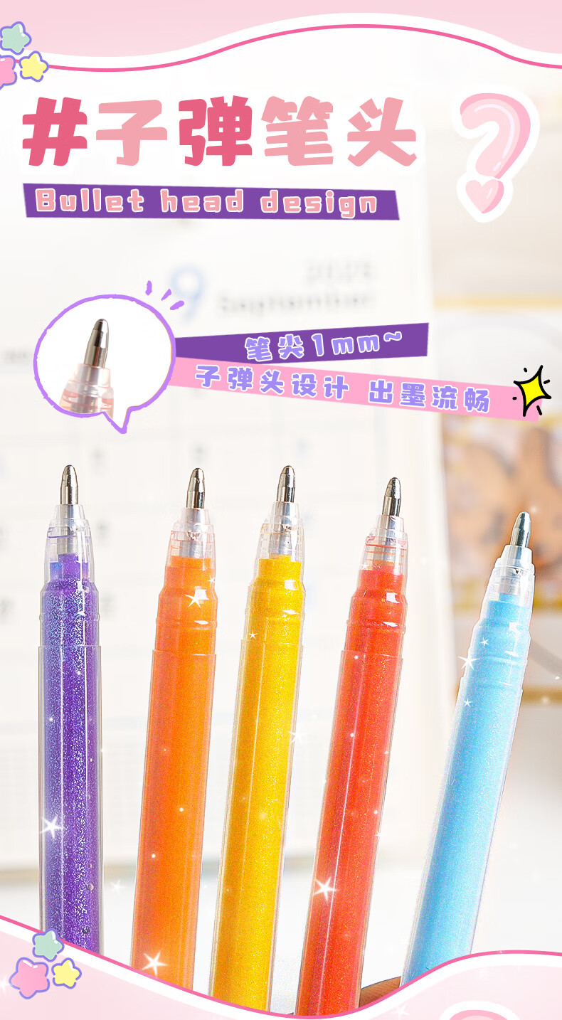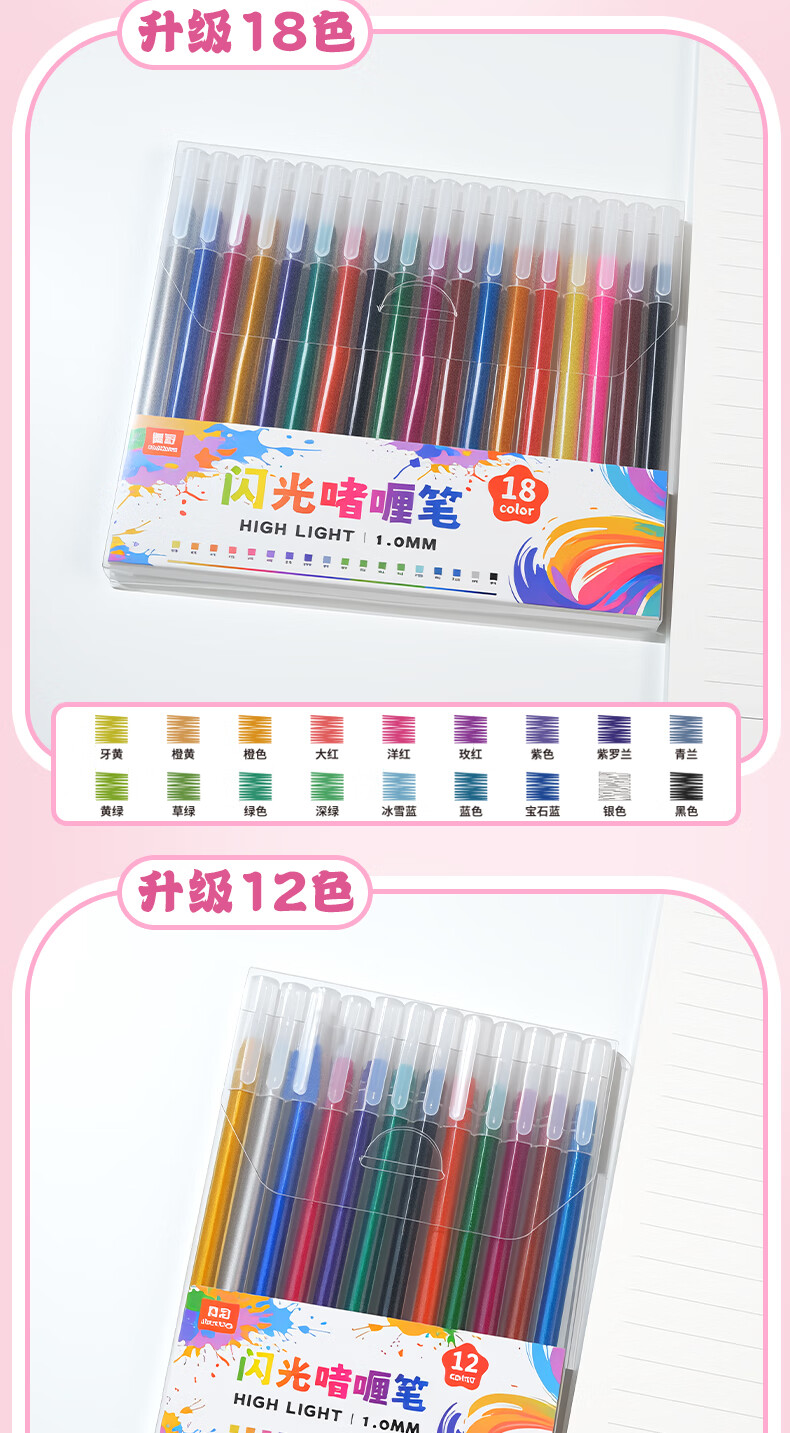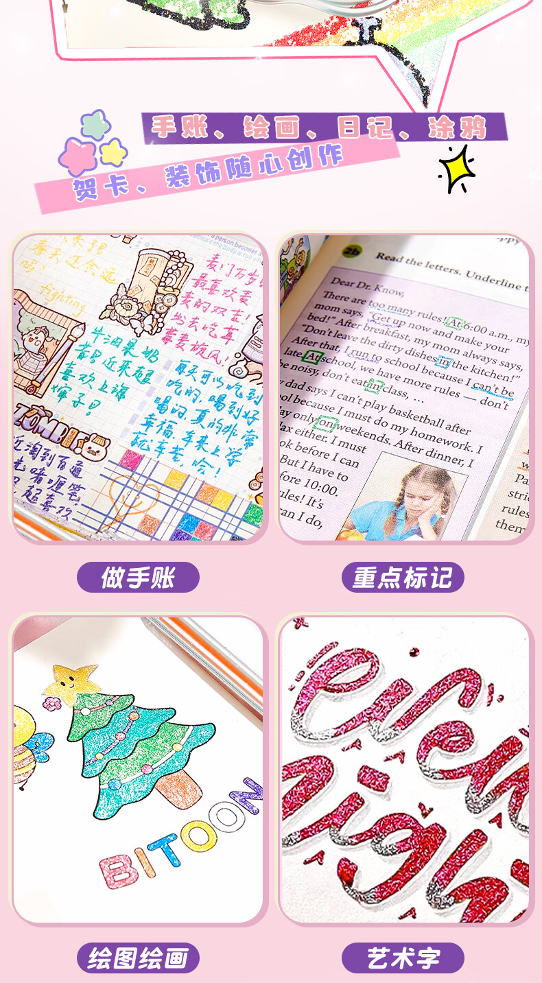 真彩(TRUECOLOR)真彩彩色闪光啫喱笔儿童亮晶晶珠光笔荧光标记笔流沙银光啫喱发光水彩笔手帐专用小学生闪粉高光笔 大容量【24色】闪光啫喱笔