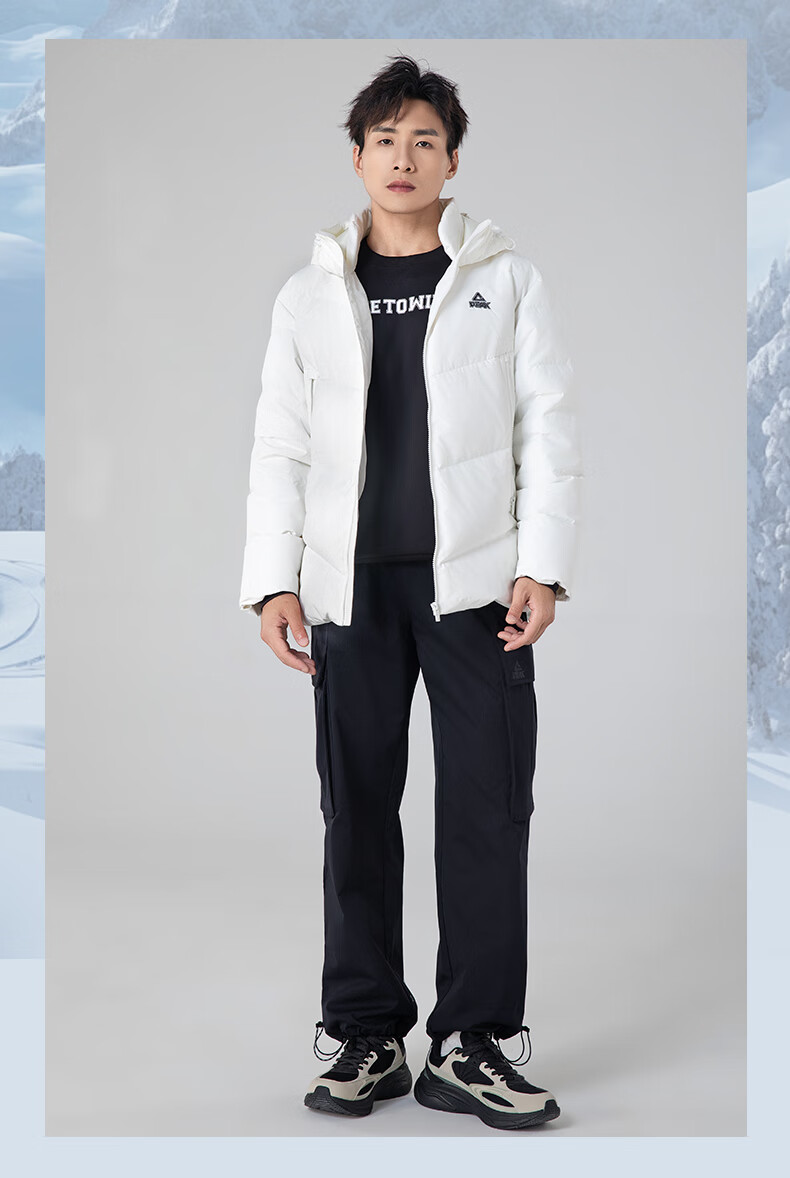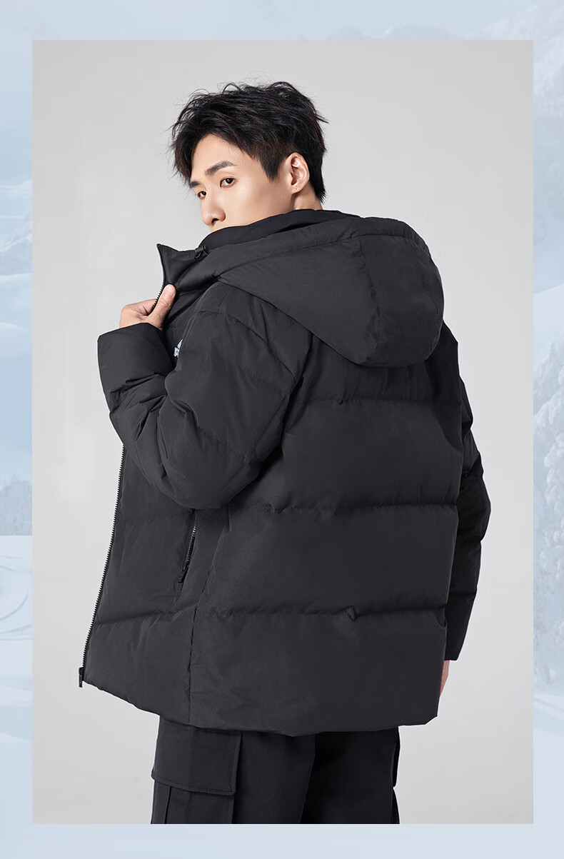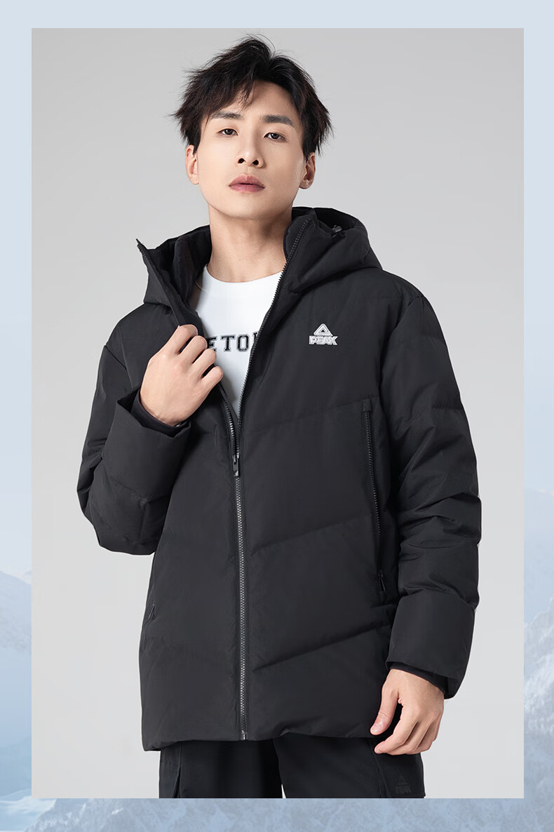 匹克羽绒服男士2025年冬季新款短款保暖简约运动百搭连帽外套男 黑色 2XL