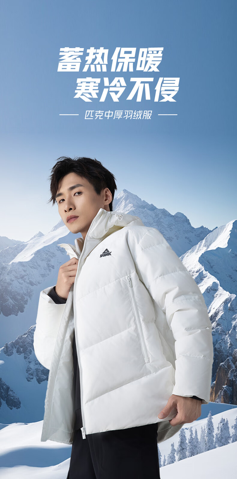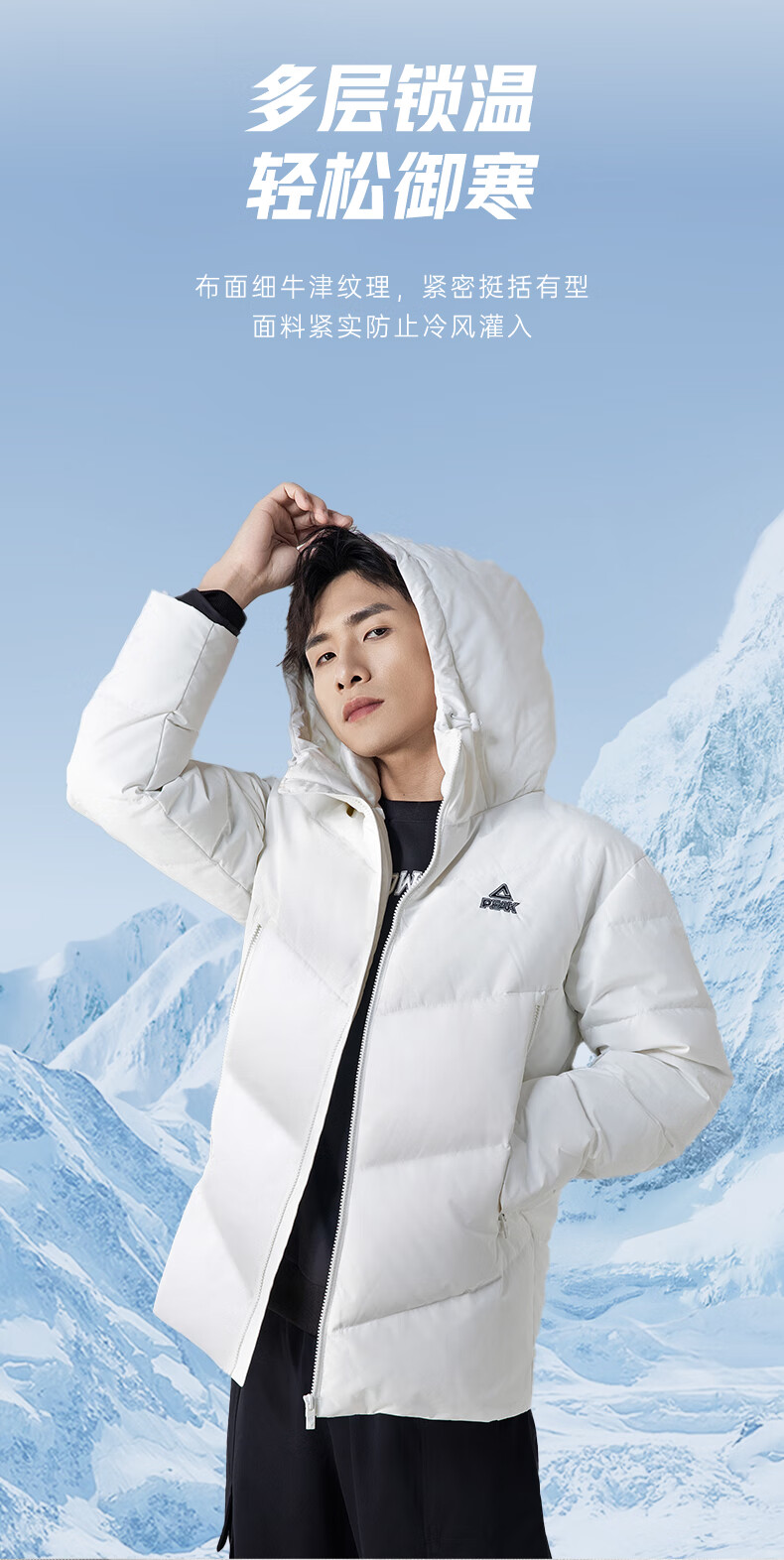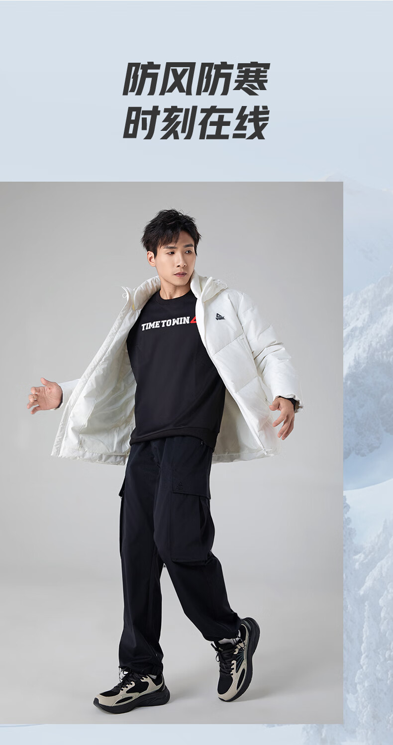 匹克羽绒服男士2025年冬季新款短款保暖简约运动百搭连帽外套男 黑色 2XL