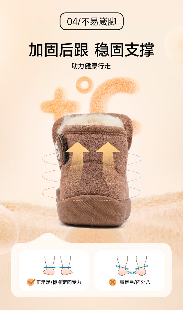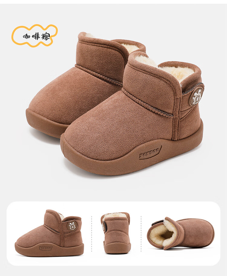 巴布豆巴布豆童鞋女宝宝冬季加绒靴子新款雪地靴男童轻便保暖二棉鞋 咖啡棕 27 适合脚长15.5cm