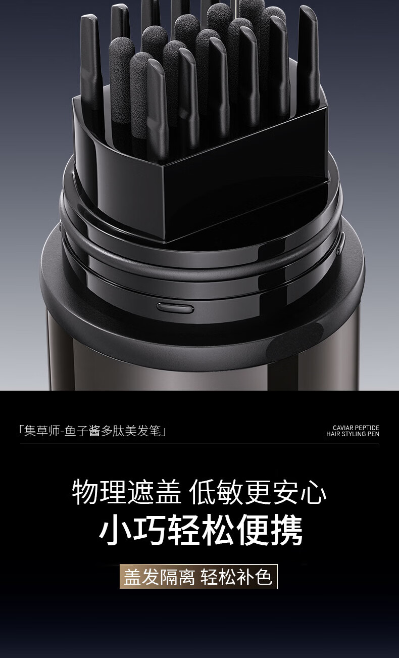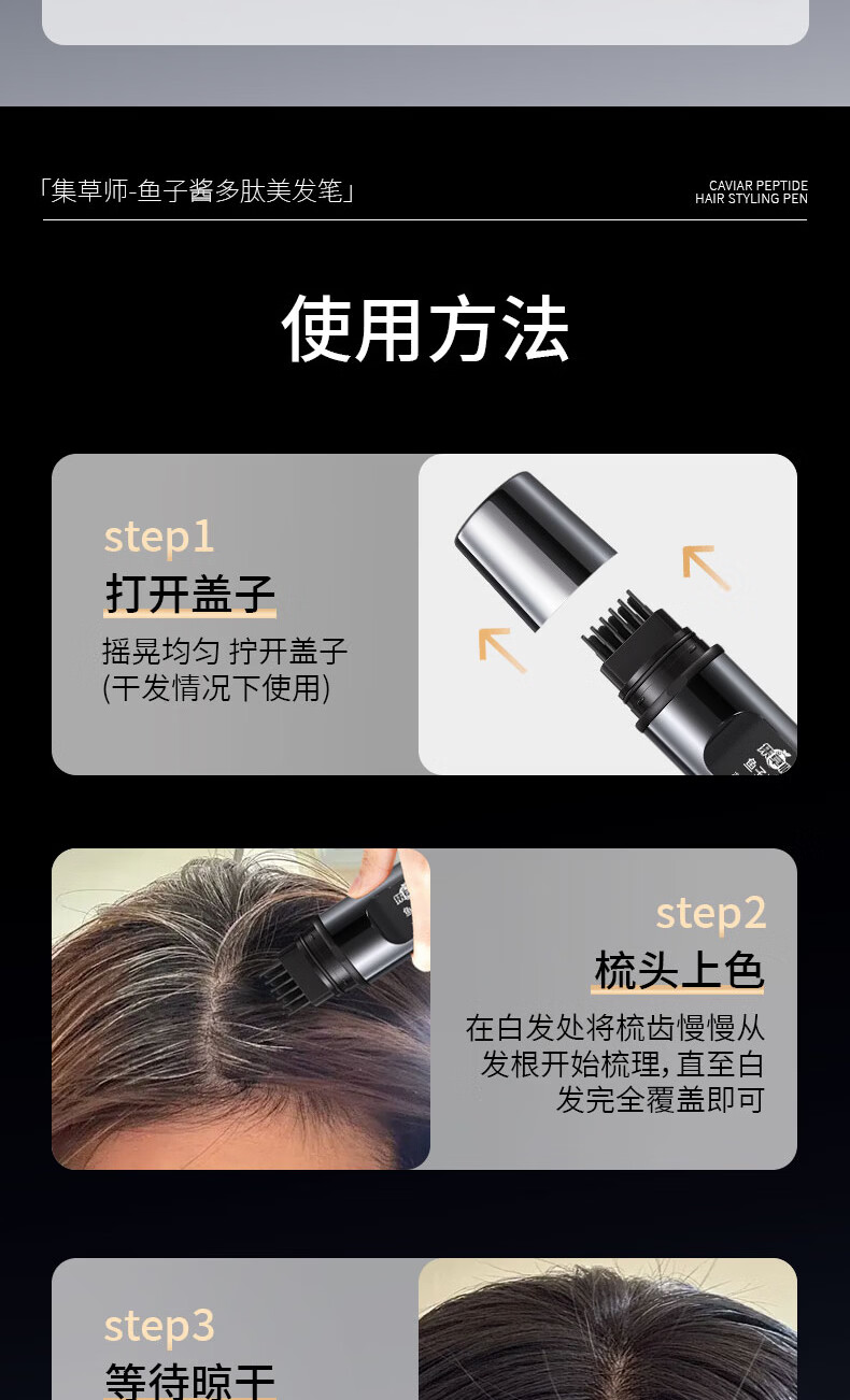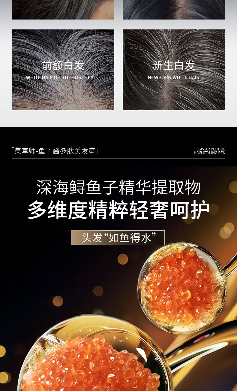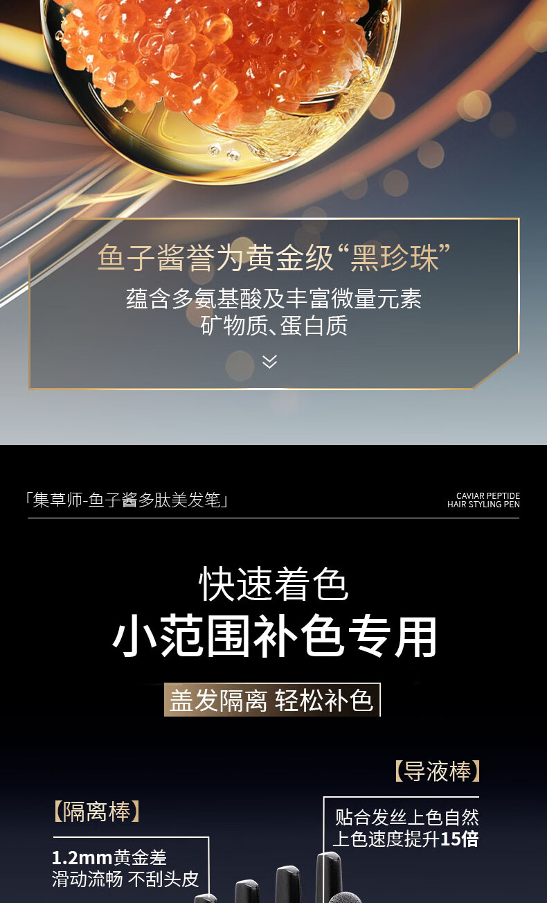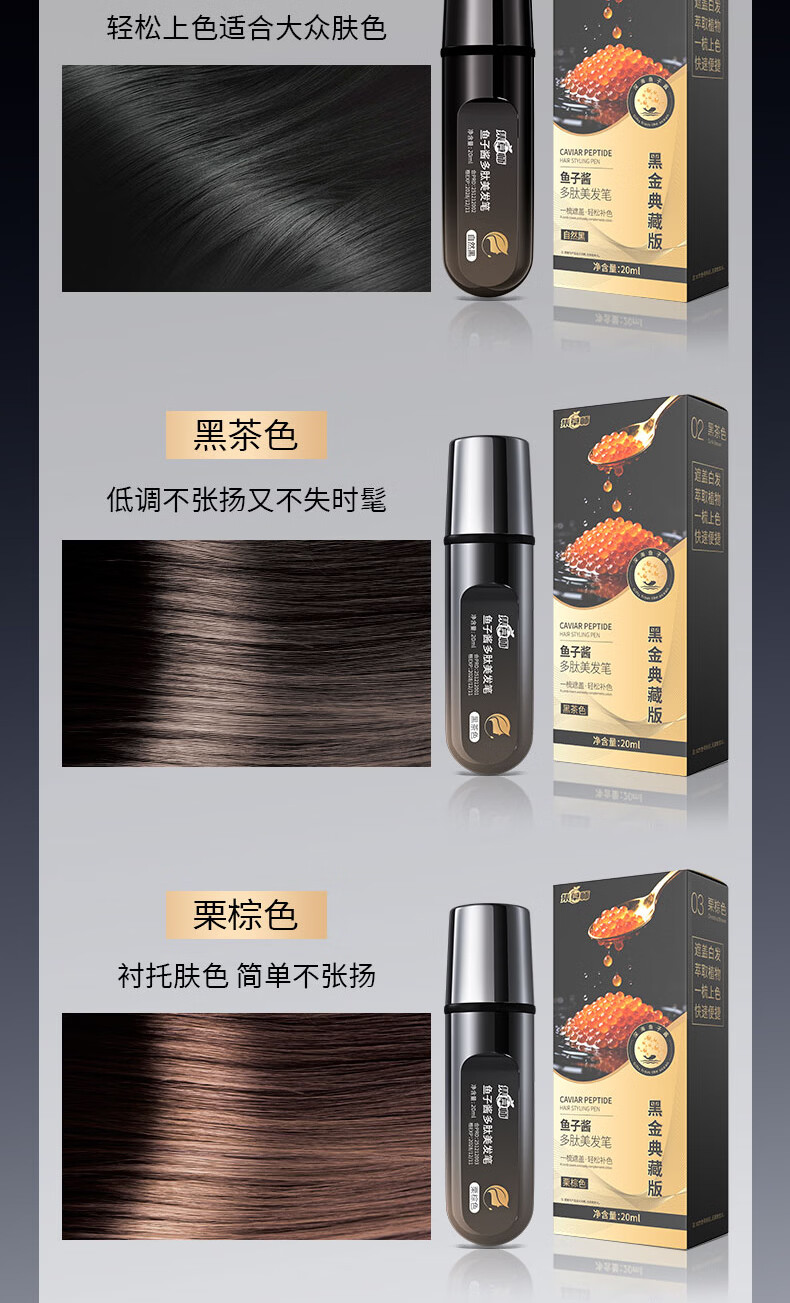 集草师新款鱼子酱美发棒植物遮盖白发神器一次性染发棒不掉色染发笔补染 自然黑*1+黑茶色*1【一梳盖白】黑金版