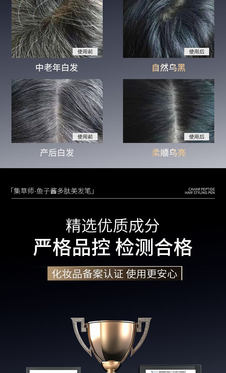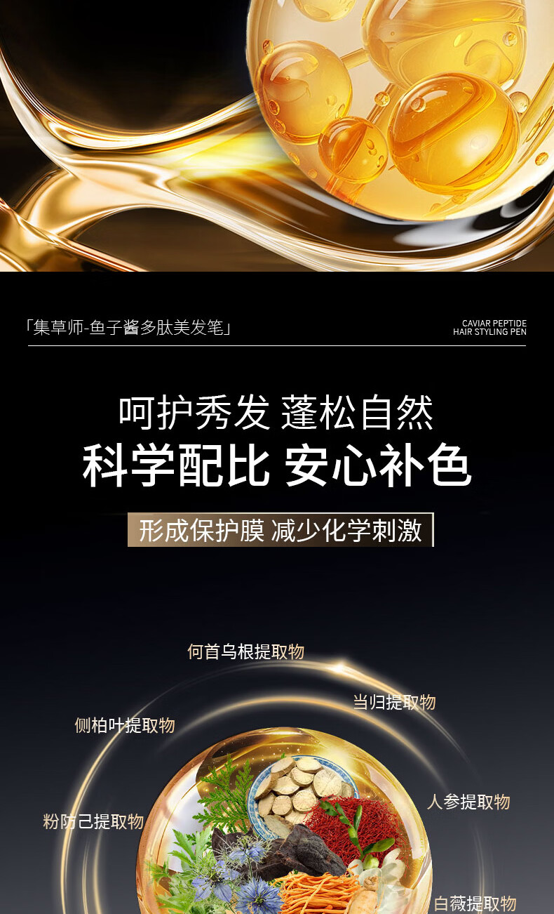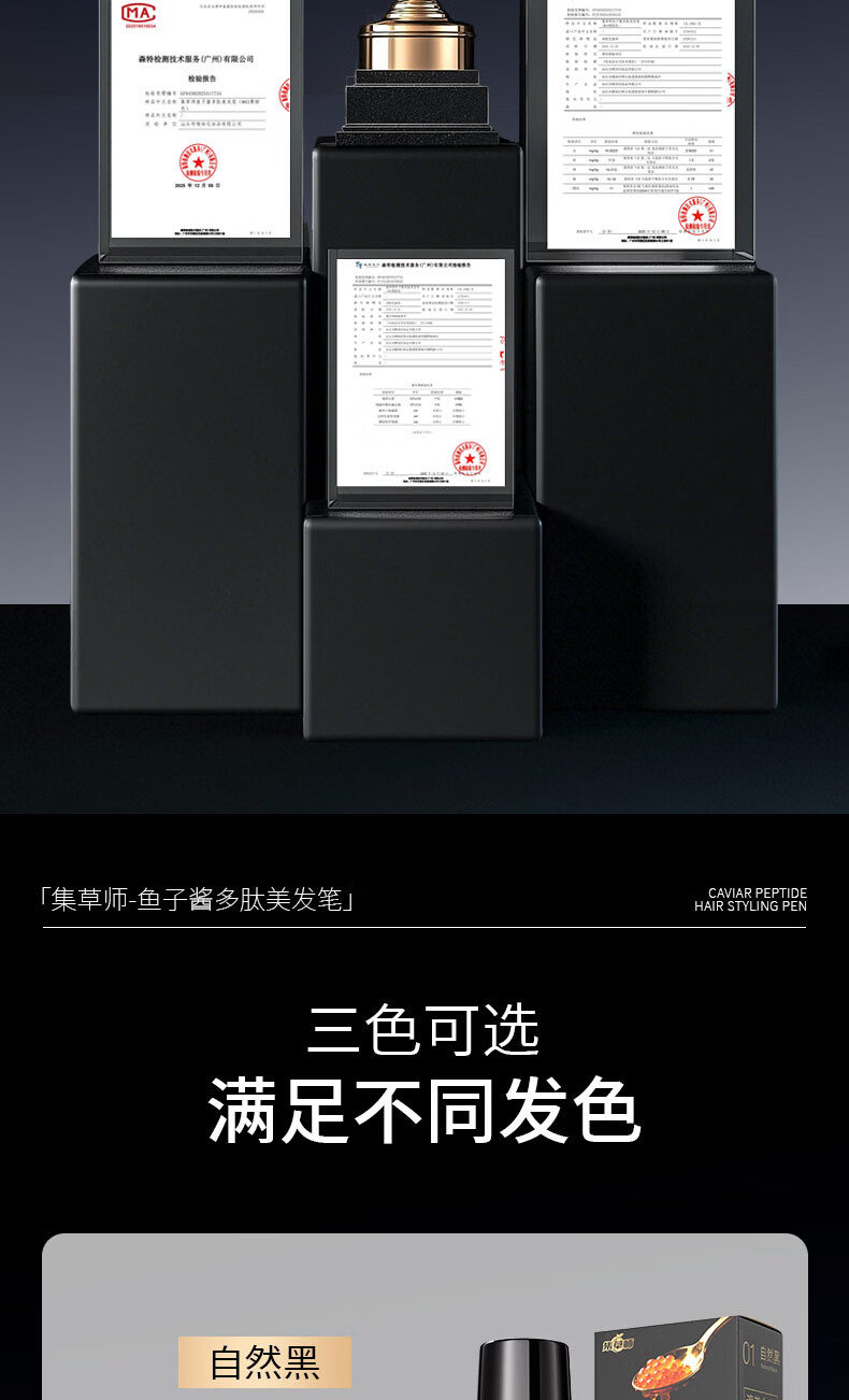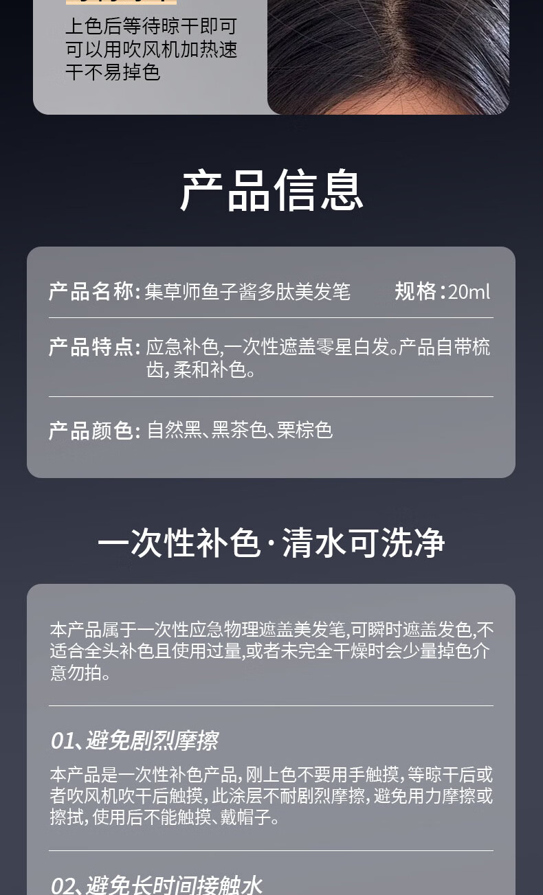 集草师新款鱼子酱美发棒植物遮盖白发神器一次性染发棒不掉色染发笔补染 自然黑*1+黑茶色*1【一梳盖白】黑金版