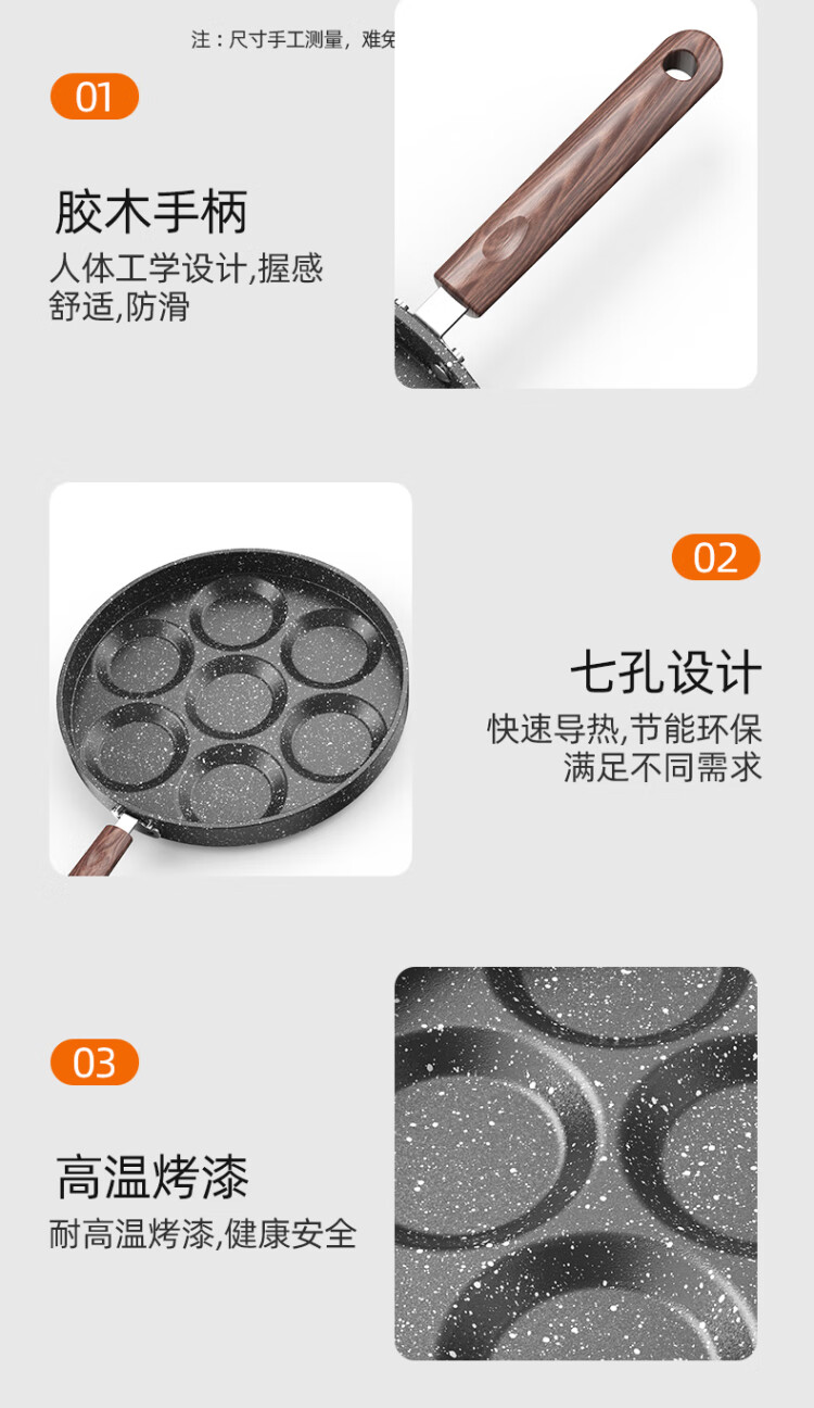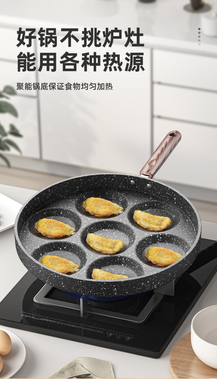 RSRDDY煎鸡蛋汉堡机不粘锅小平底锅煎饼迷你七孔家用蛋饺神器模具蛋堡锅 烫手柄木铲