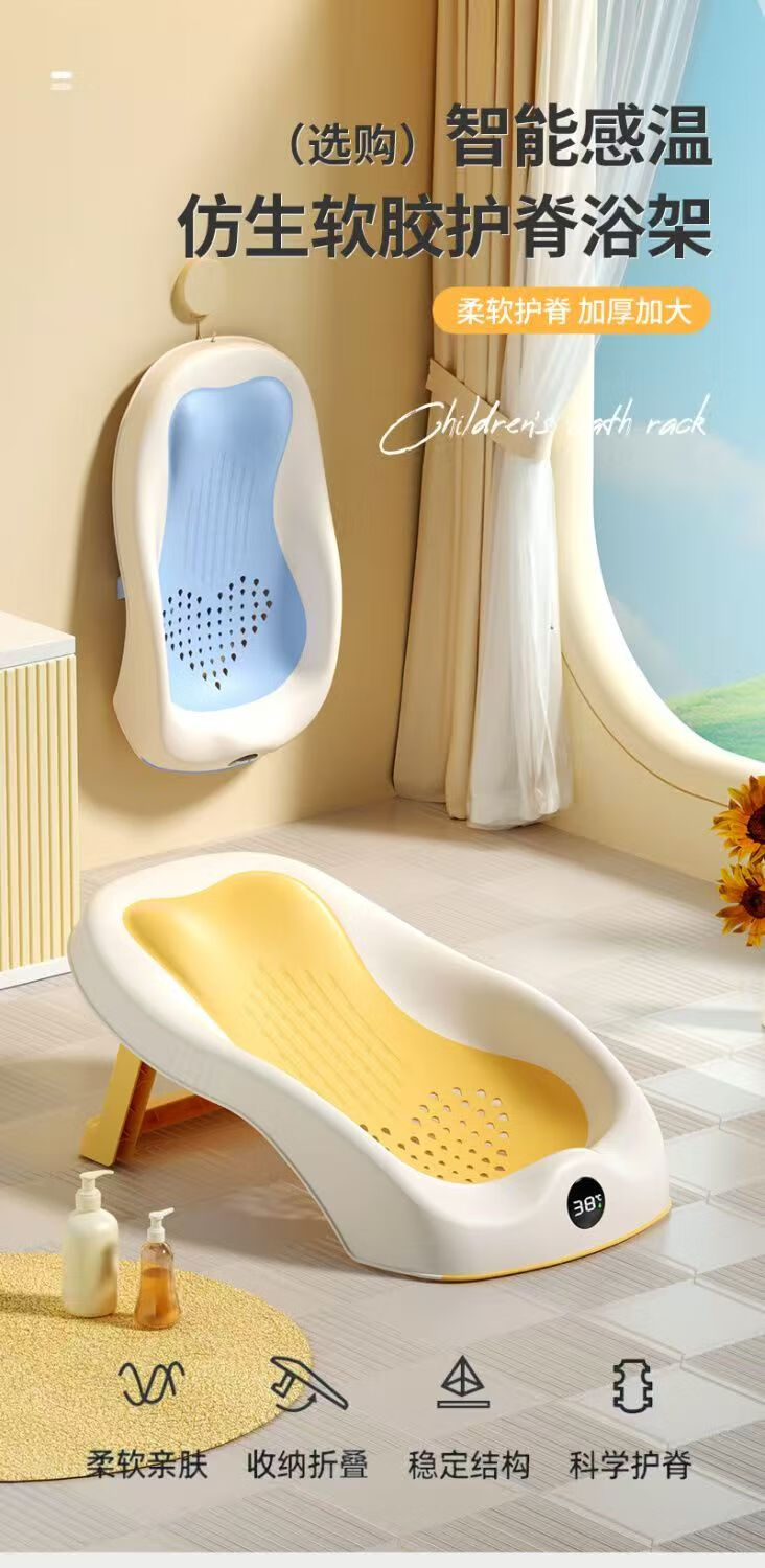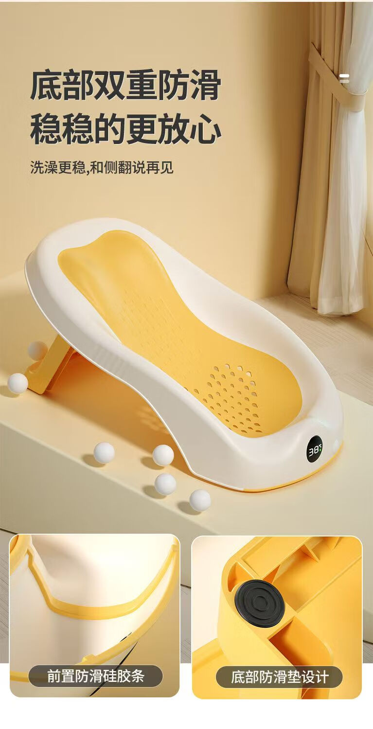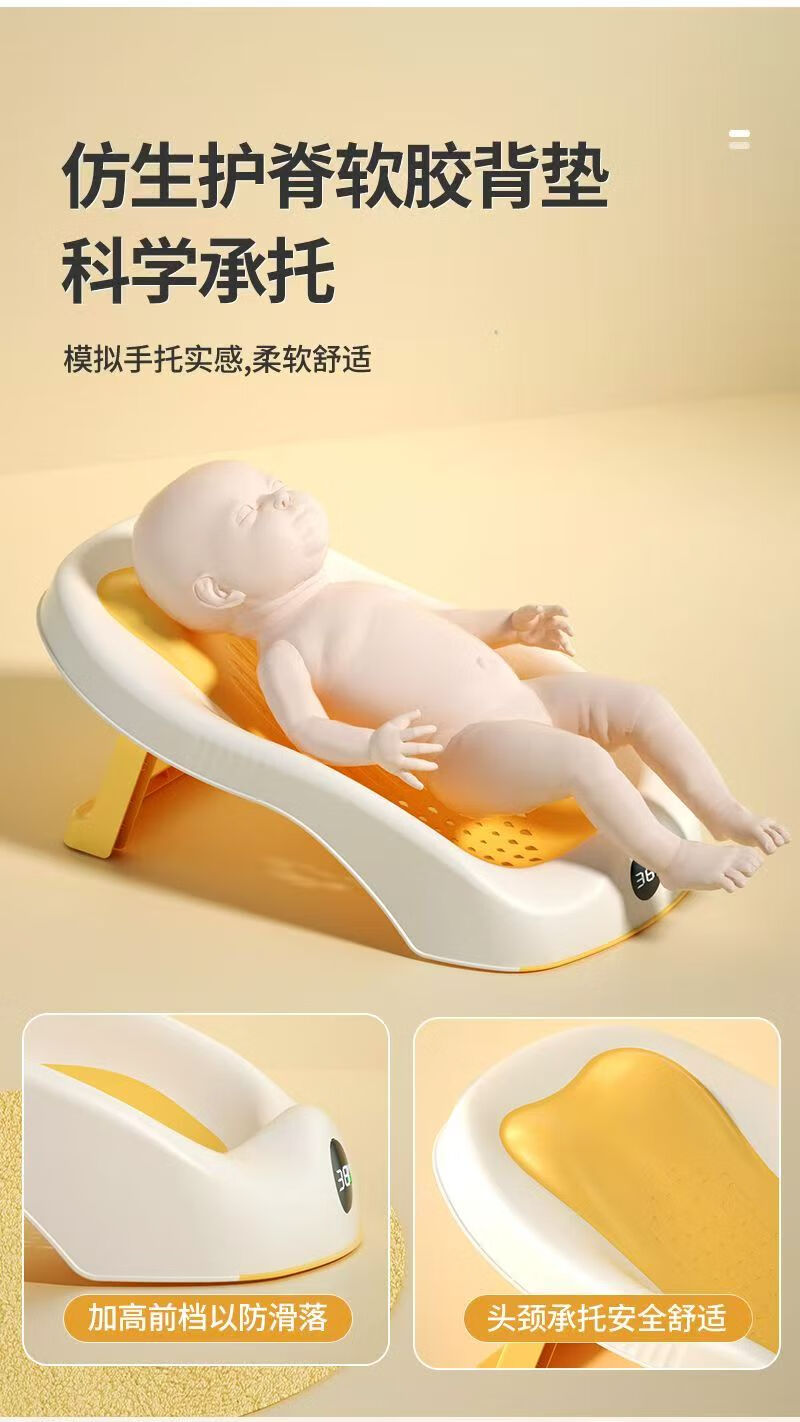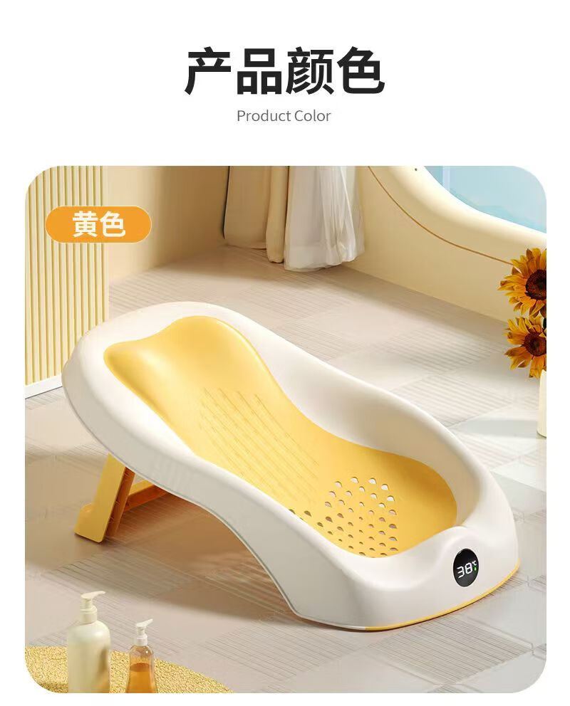 菲尔洁可折叠婴儿洗澡感温浴架坐躺托神器宝宝浴盆通用浴床托新生儿浴网 灰色感温款折叠软胶浴架 【53*30.5*19厘米】PP+TPE