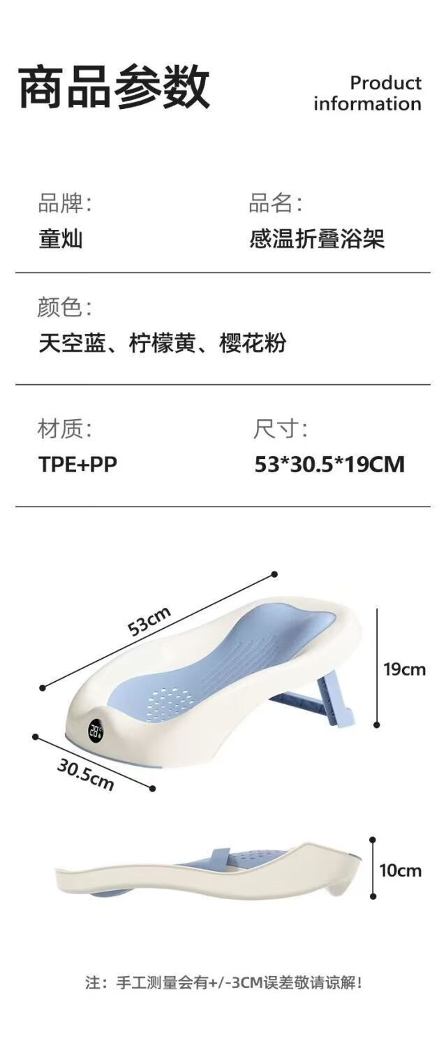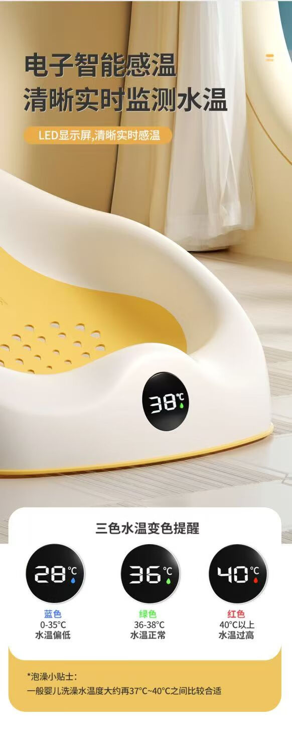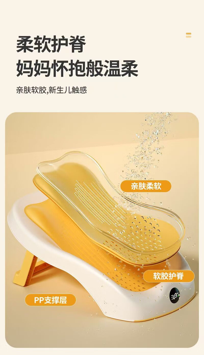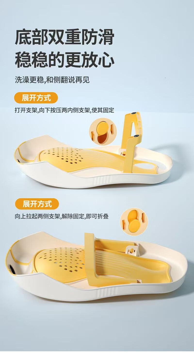 菲尔洁可折叠婴儿洗澡感温浴架坐躺托神器宝宝浴盆通用浴床托新生儿浴网 灰色感温款折叠软胶浴架 【53*30.5*19厘米】PP+TPE