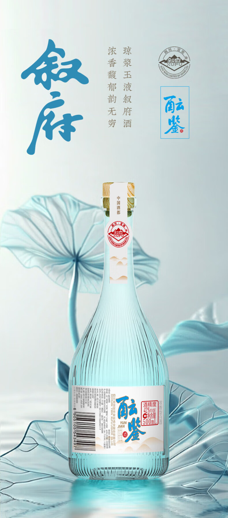叙府酝鉴白酒42度浓香型白酒纯粮食固态发酵送礼白酒 42度 500mL 6瓶 整箱